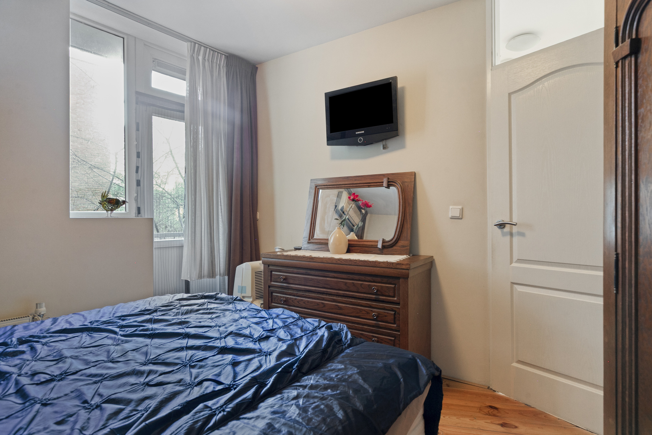Het appartement is voorzien van een houten vloer, de keuken is voorzien van een tegelvloer.
