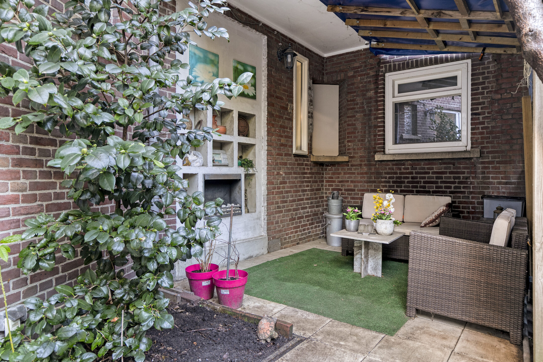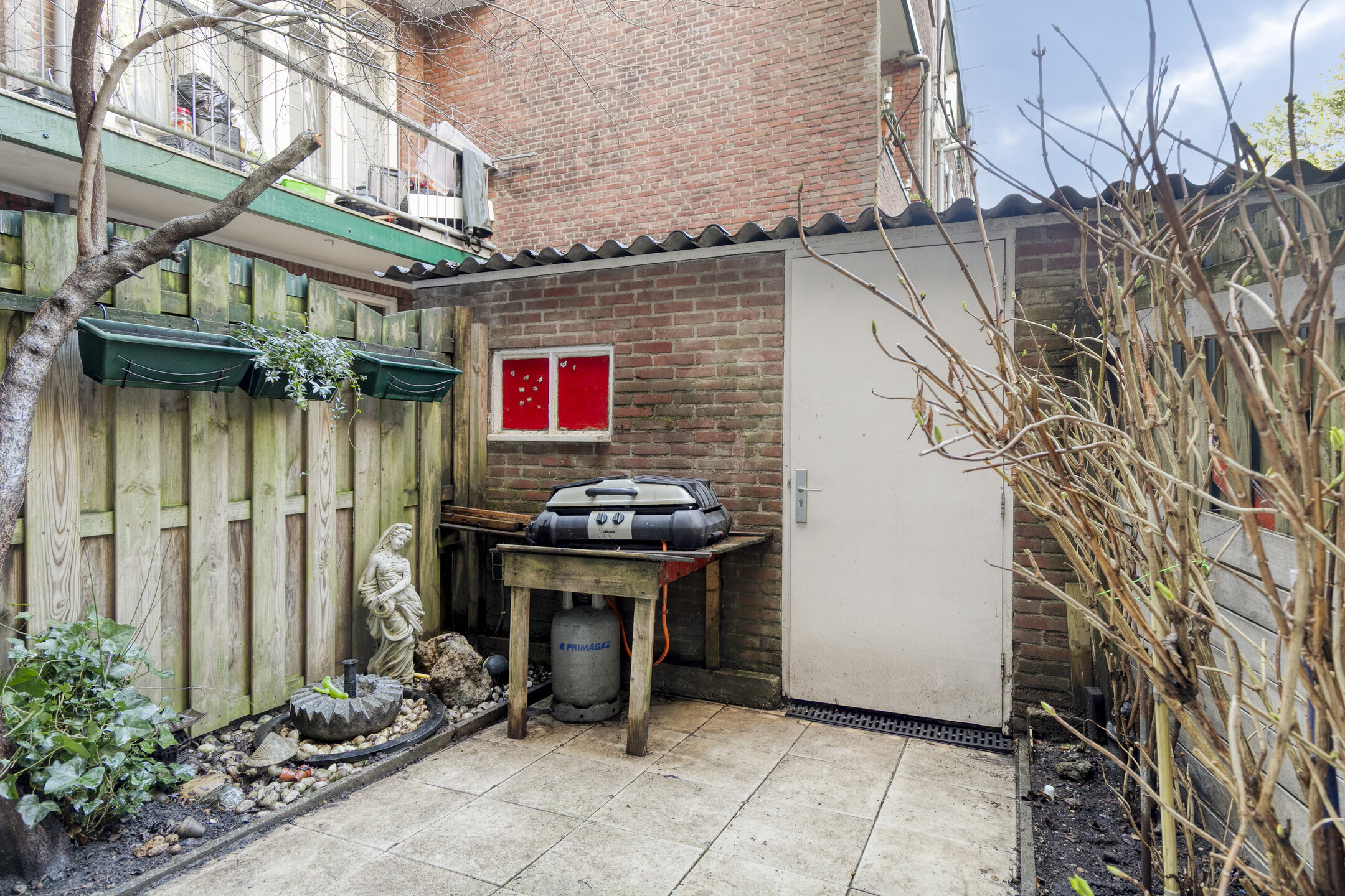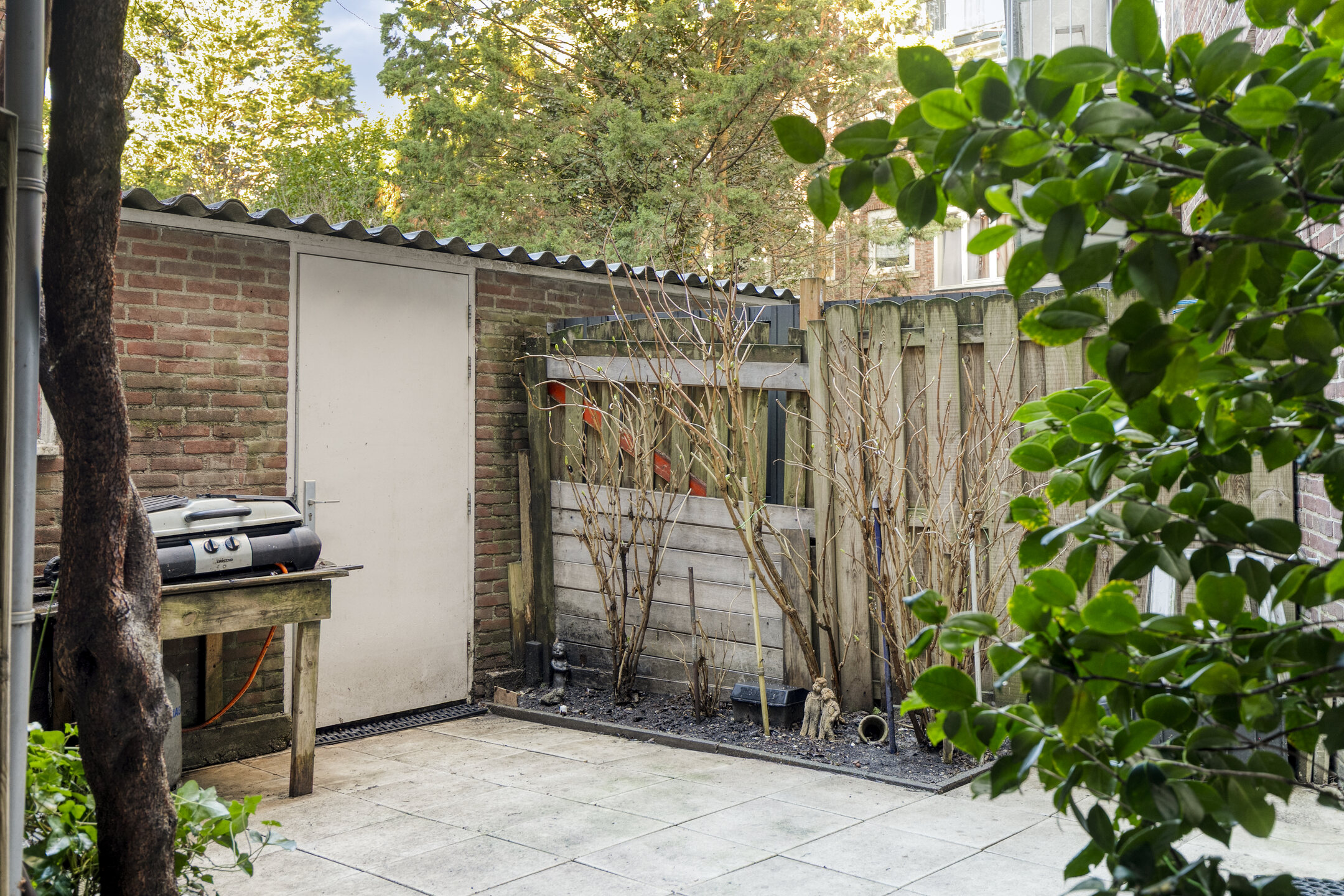 De tuin is voorzien van een eenvoudige overkapping / gezellig zithoekje. Toegang tot de eigen (fietsen)berging met achterom.
