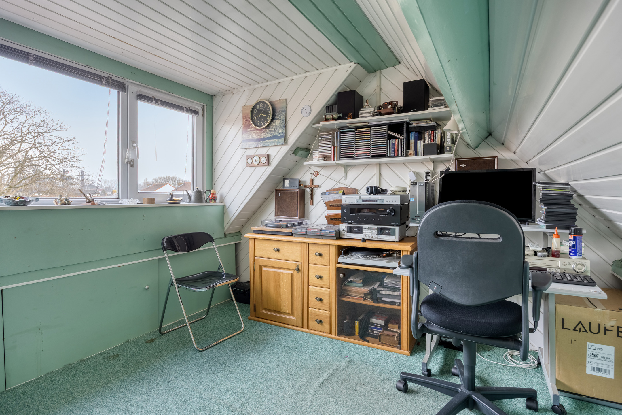 Deze kamer (circa 3.74 m x 2.93 m) bevindt zich aan de achterzijde van de woning en is voorzien van een dakkapel.