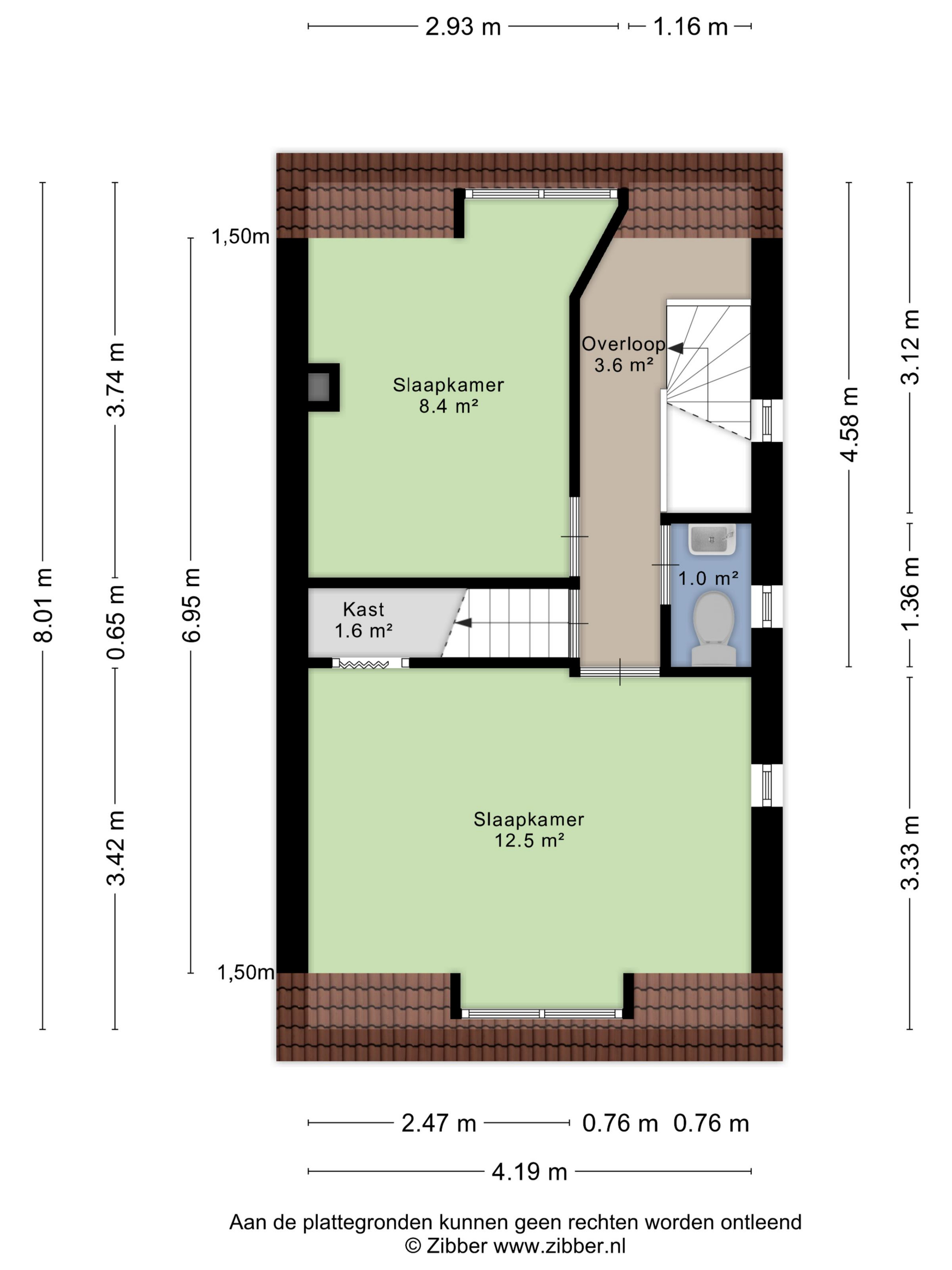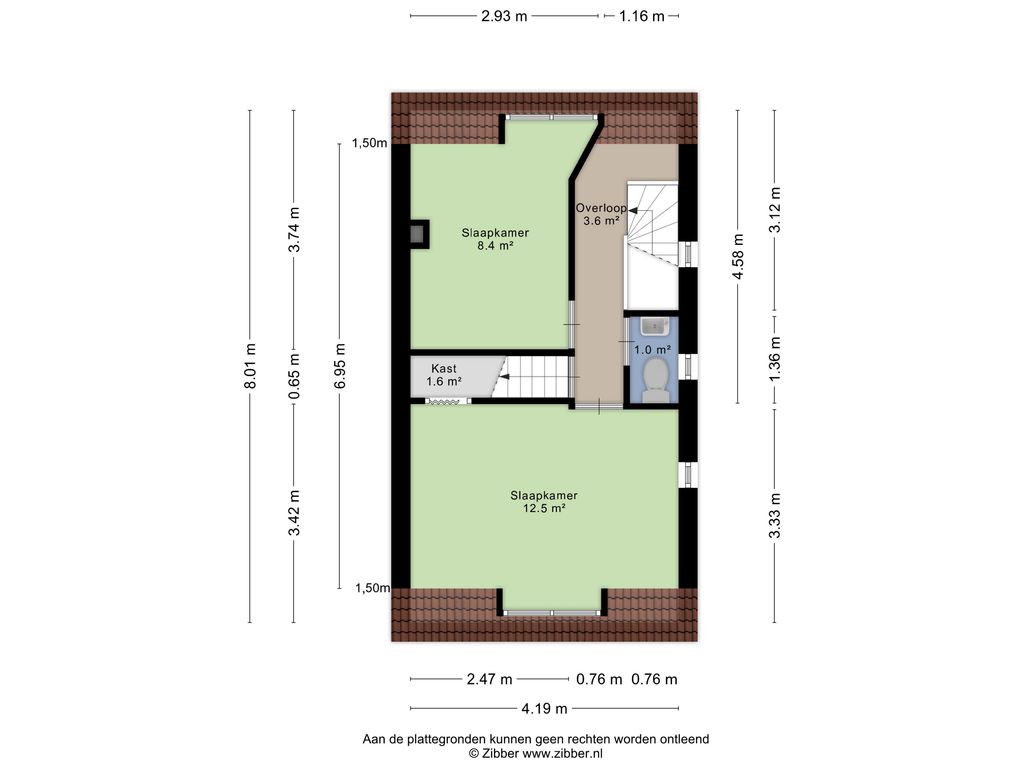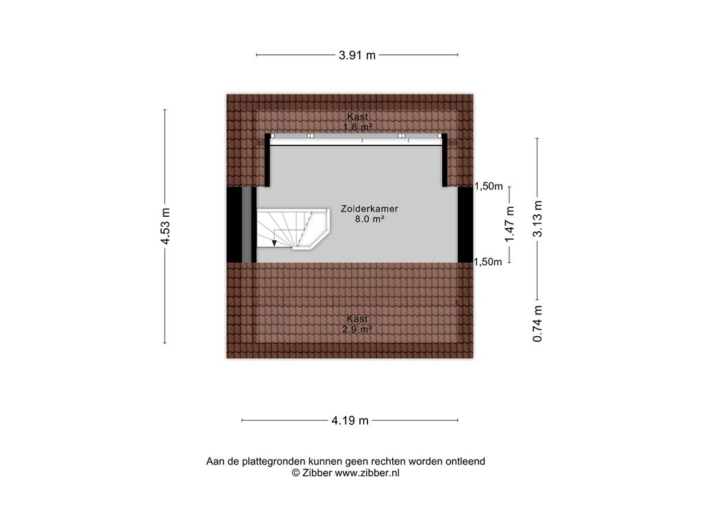 De ouderslaapkamer (circa 4.19 m x 3.42 m) is gesitueerd aan de voorzijde van de woning en voorzien van een dakkapel een sfeervol zijraampje, en een inbouwkast.