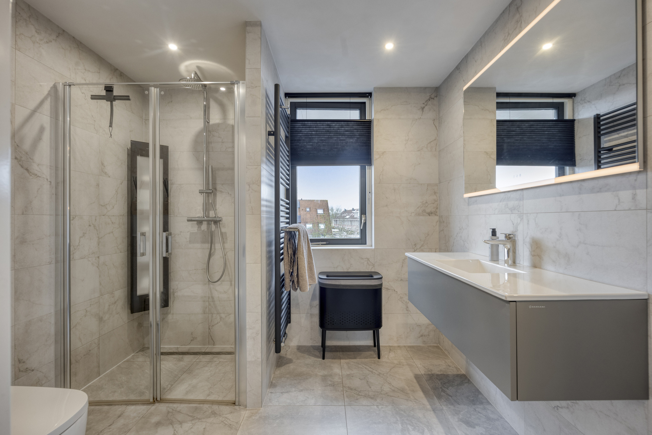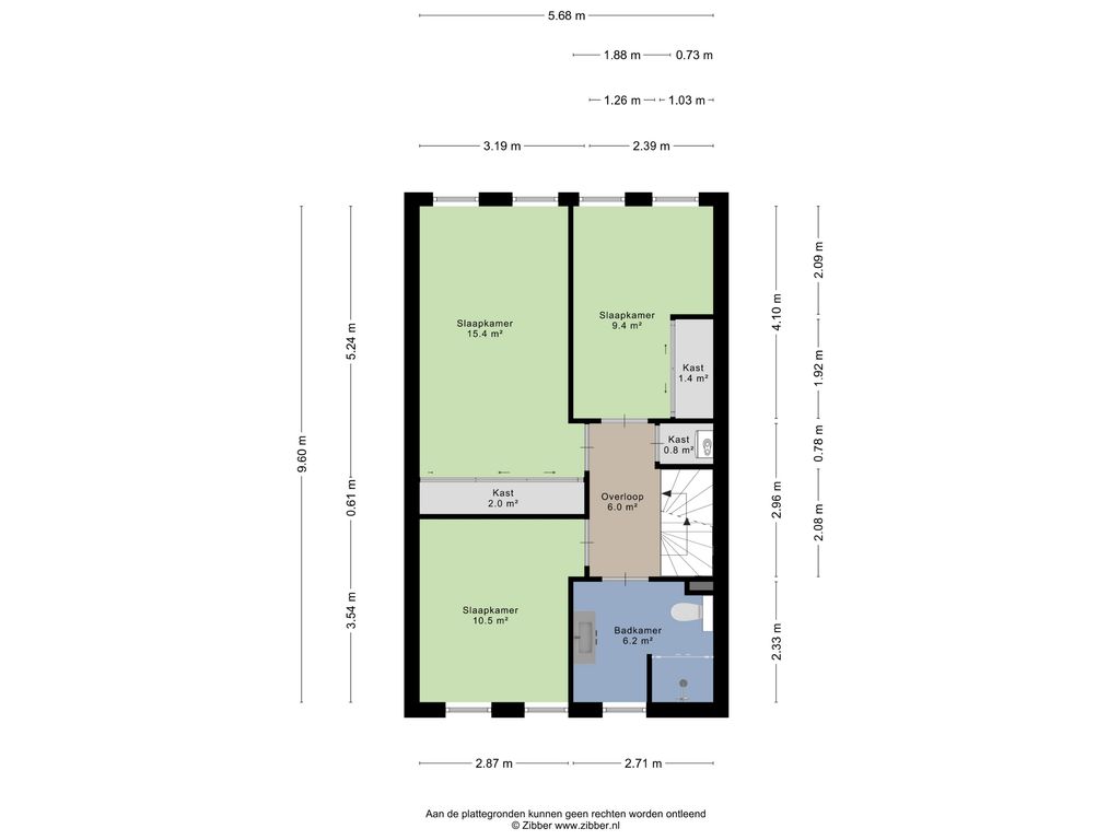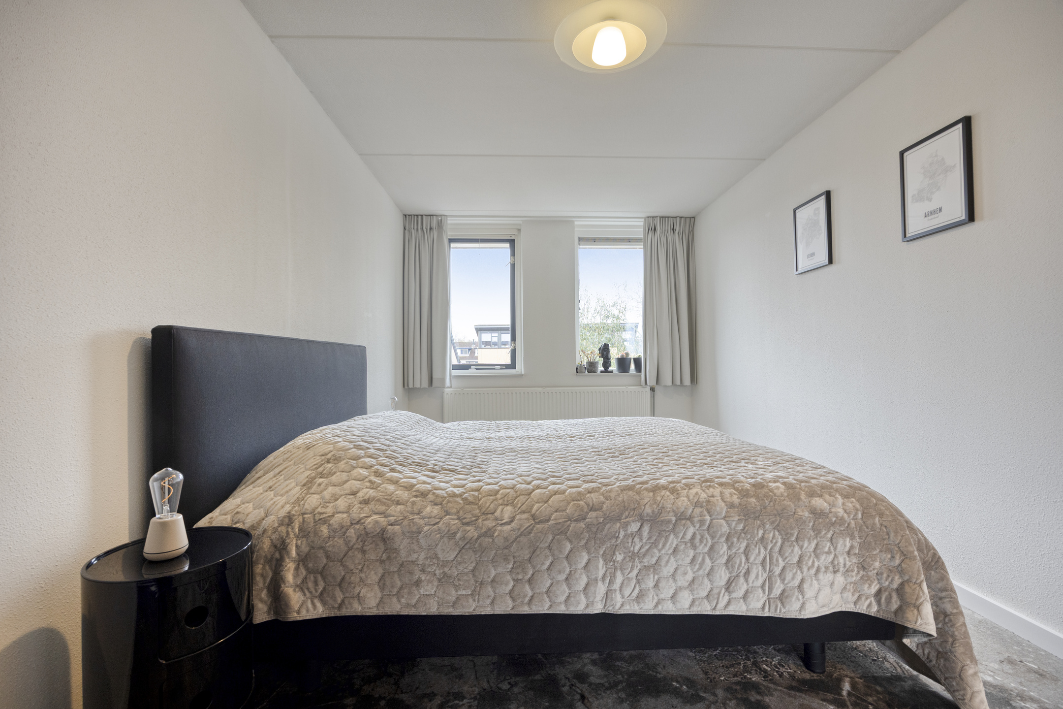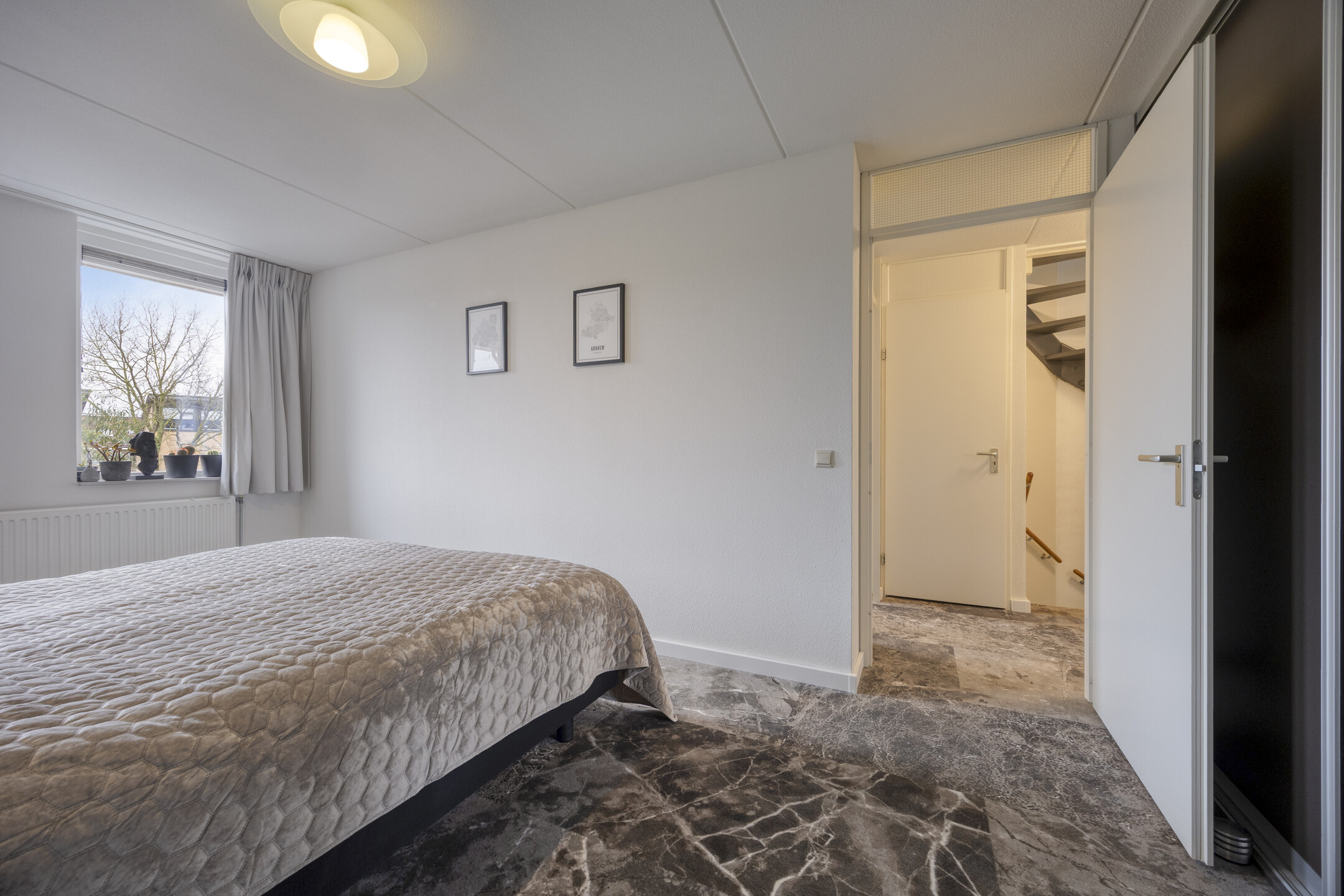 Het trappenhuis is voorzien van spachtelputz wanden en stoffering. Overloop met kast waarin de cv-ketel (type Vaillant CW5, bouwjaar 2013), toegang tot de 3 slaapkamers en de badkamer. Trapopgang naar de 2e verdieping. 1e slaapkamer (masterbedroom) van circa 15,5 m² gelegen aan de achterzijde van de woning en voorzien van een royale schuifkastenwand. 2e slaapkamer van circa 9,5 m² gelegen aan de achterzijde van de woning en eveneens voorzien van een schuifkastenwand. 3e slaapkamer van circa 10,5 m² gelegen aan de voorzijde van de woning. Alle kamers zijn voorzien van stoffering. De luxe, geheel betegelde, in 2022 geplaatste badkamer is voorzien van een toilet, ruime inloopdouche met regendouche en sunshower, wastafel met meubel en luxe spiegel, ingebouwde verlichting, design radiator, een uitzetraam en mechanische ventilatie.