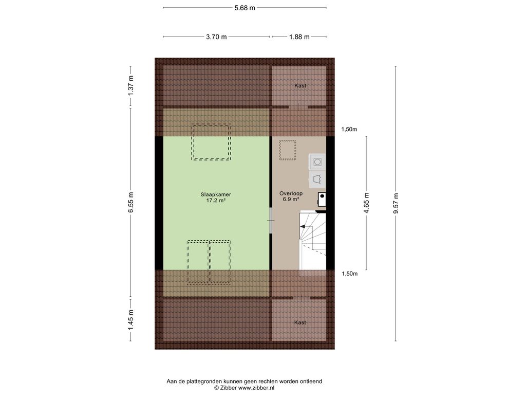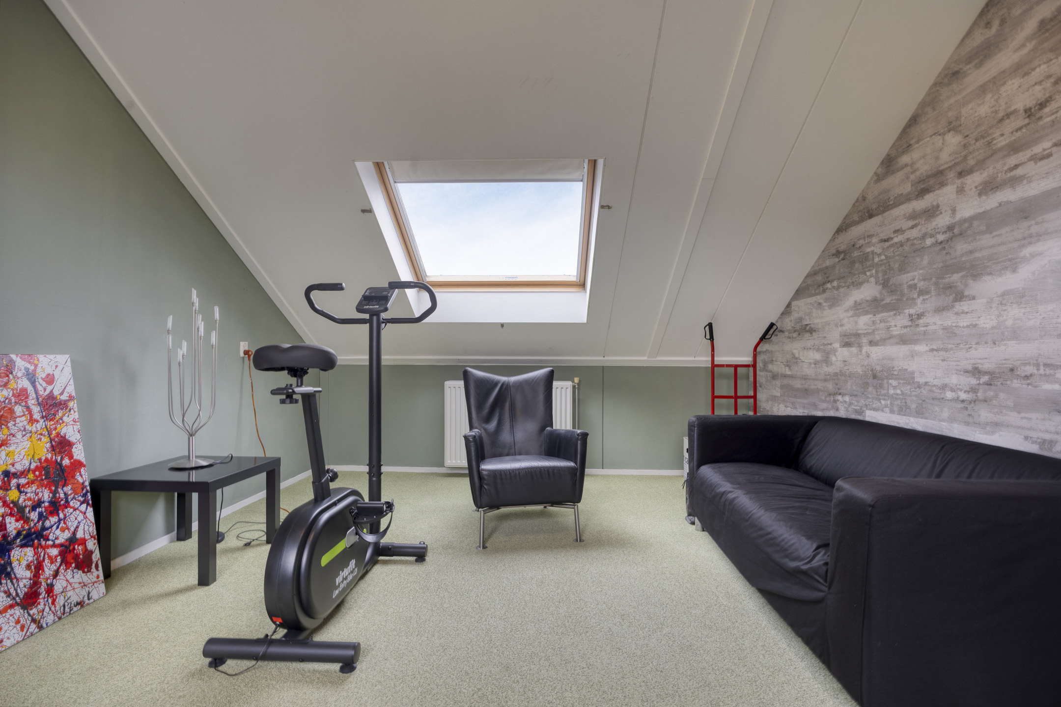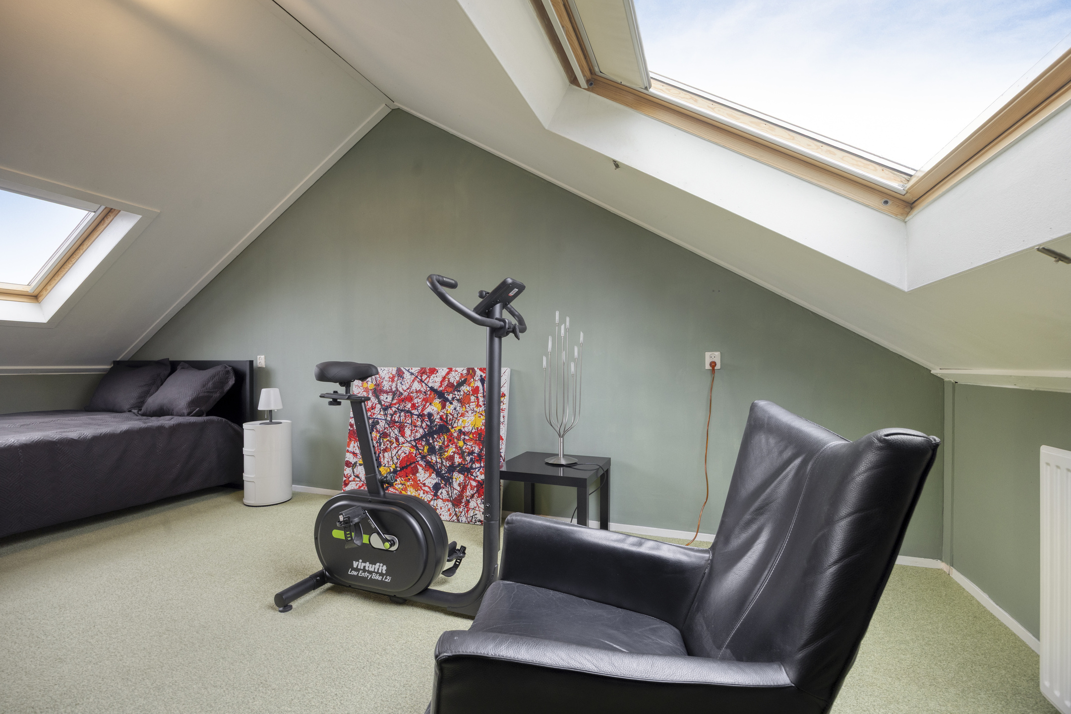 Via een vaste trap bereik je de overloop voorzien van een Velux dakraam en de opstelling van de wasmachine, droger, de omvormer van de zonnepanelen en de mechanische afzuiging. Aansluitend de sfeervolle 4e slaapkamer van circa 17,2 m² welke is voorzien van 3 grote dakramen en bergruimte achter de knieschotten.