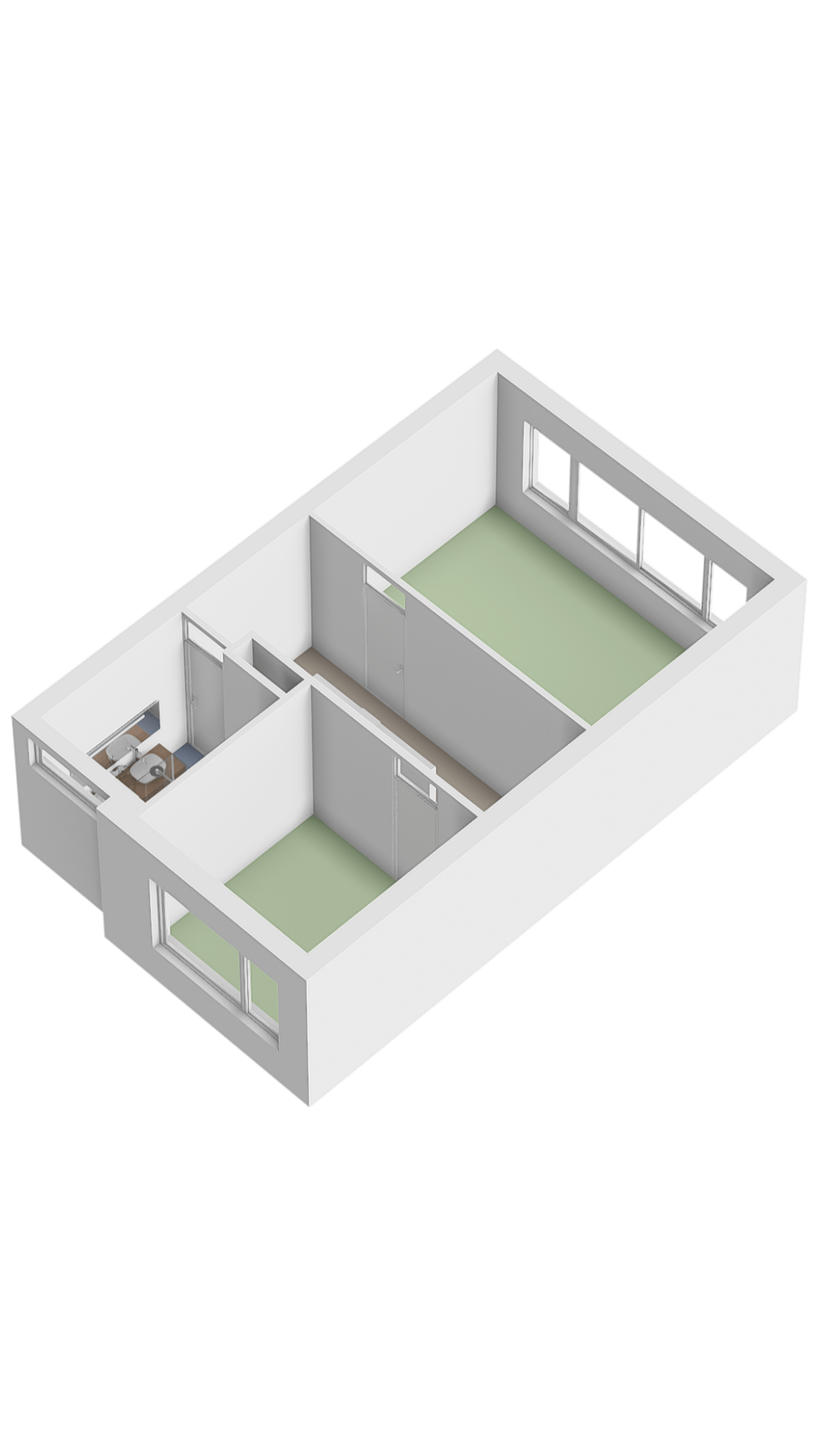 Ruime overloop met toegang tot de badkamer, de slaapkamer voor en de slaapkamer achter. Vaste trap naar de tweede verdieping. Moderne badkamer (bouwjaar 2018) met douche, dubbel wastafelmeubel en design radiator. Slaapkamer 1 is gelegen aan de achterzijde, over de volledige breedte van de woning en voorzien van een elektrisch rolluik. Deze slaapkamer is circa 18 m² groot. Slaapkamer 2 is gelegen aan de voorzijde van de woning, circa 9,5 m² groot.