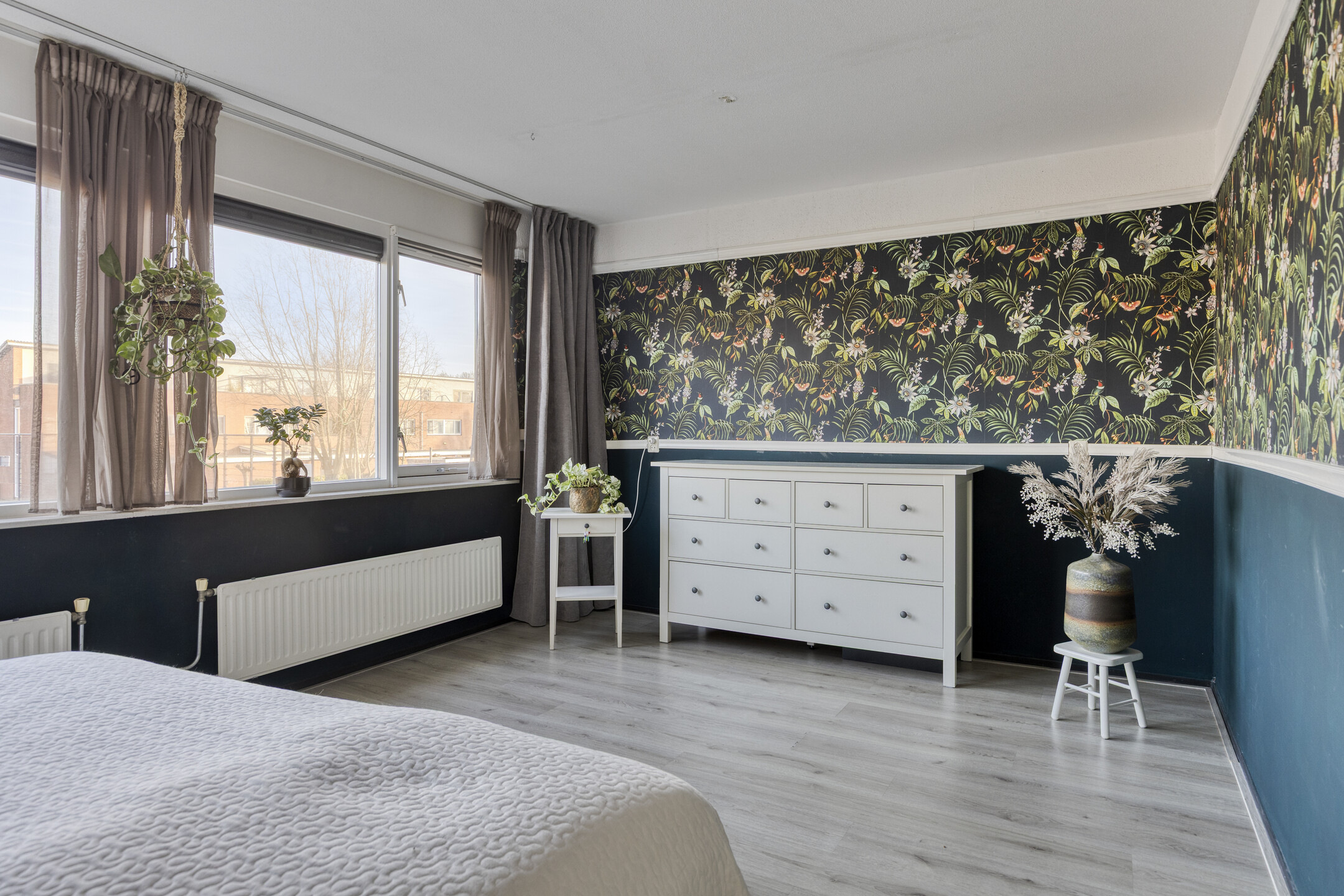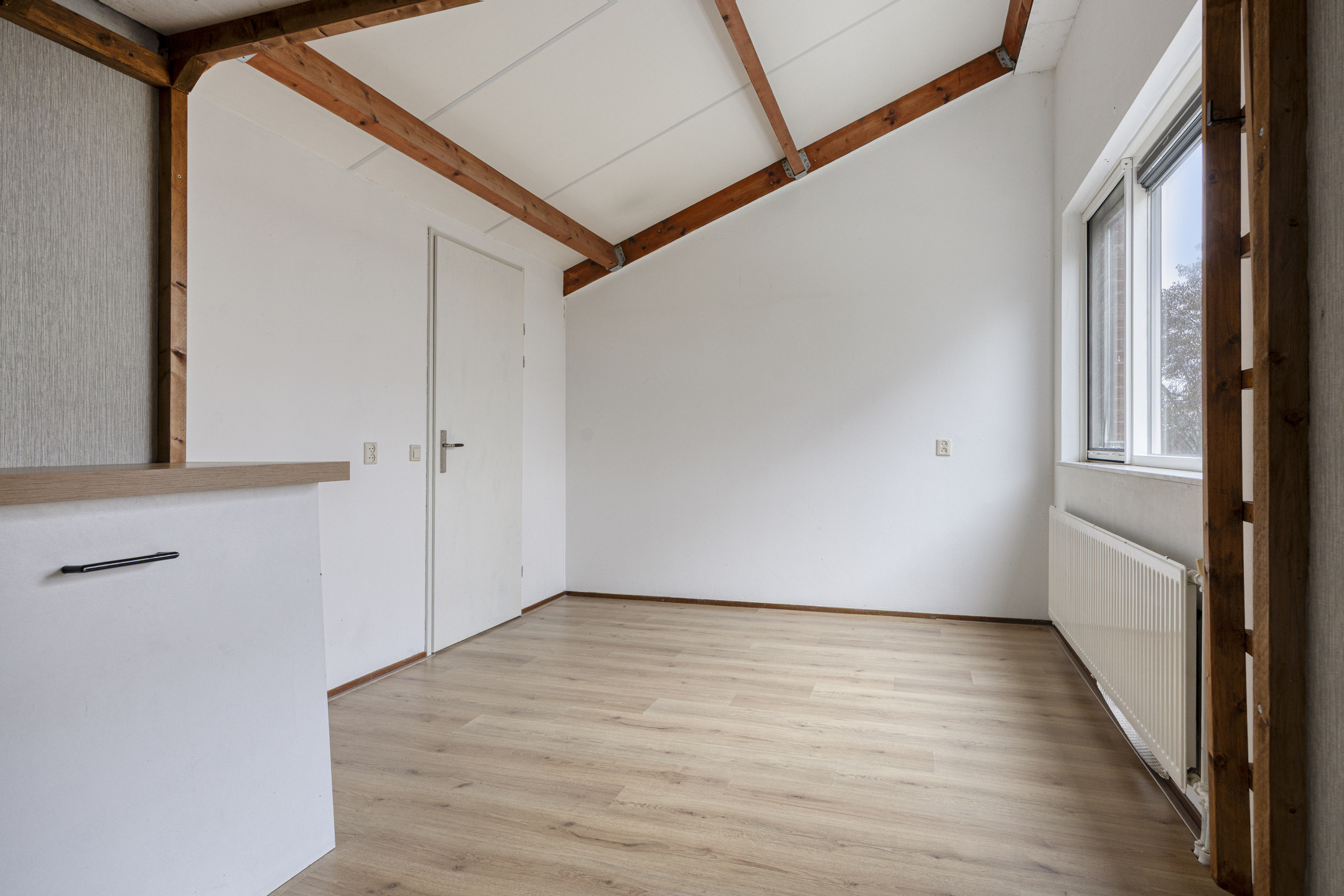 Grote open ruimte, ideaal bruikbaar als werk- of logeerkamer, met een brede kunststof dakkapel (bouwjaar 2008). Het platte dak van de dakkapel is vervangen en geïsoleerd in 2020. Opstelling Vaillant HR combiketel (2024), wasmachine aansluiting, motor van de mechanische ventilatie en diverse bergruimte. Slaapkamer 3 is eveneens ruim van opzet, circa 15 m² groot, door de rechte geveloptrek en het lessenaarsdak een speels karakter.