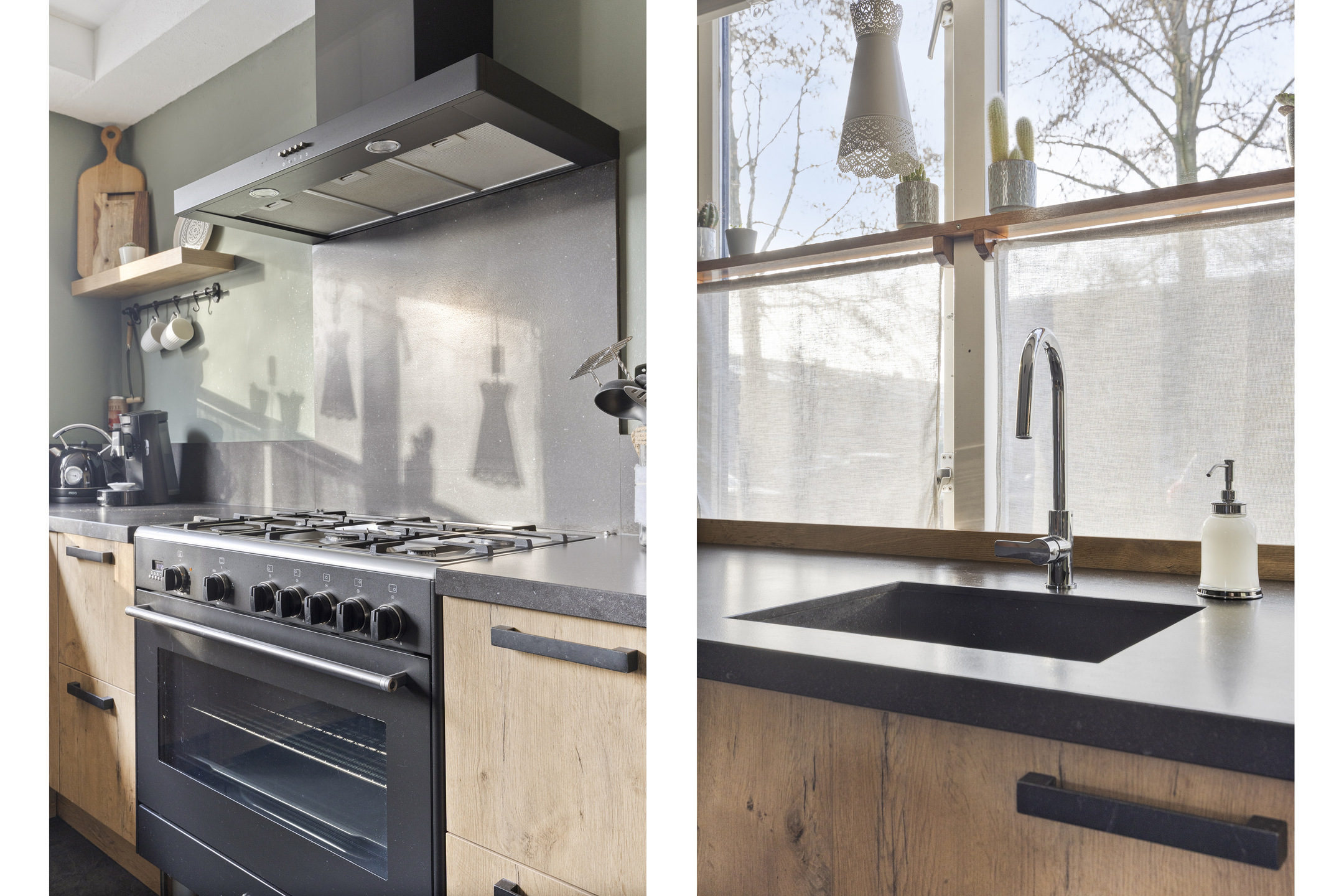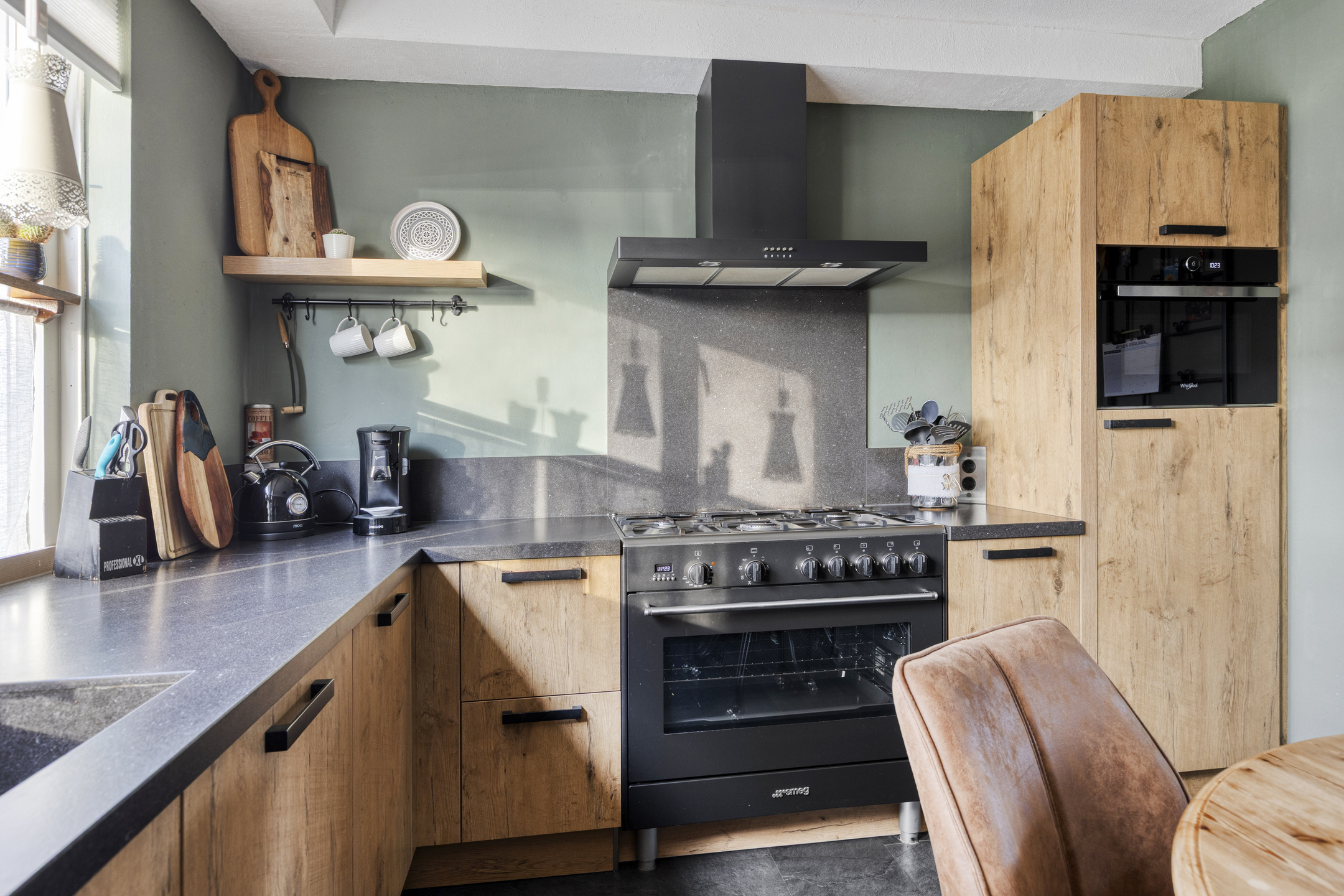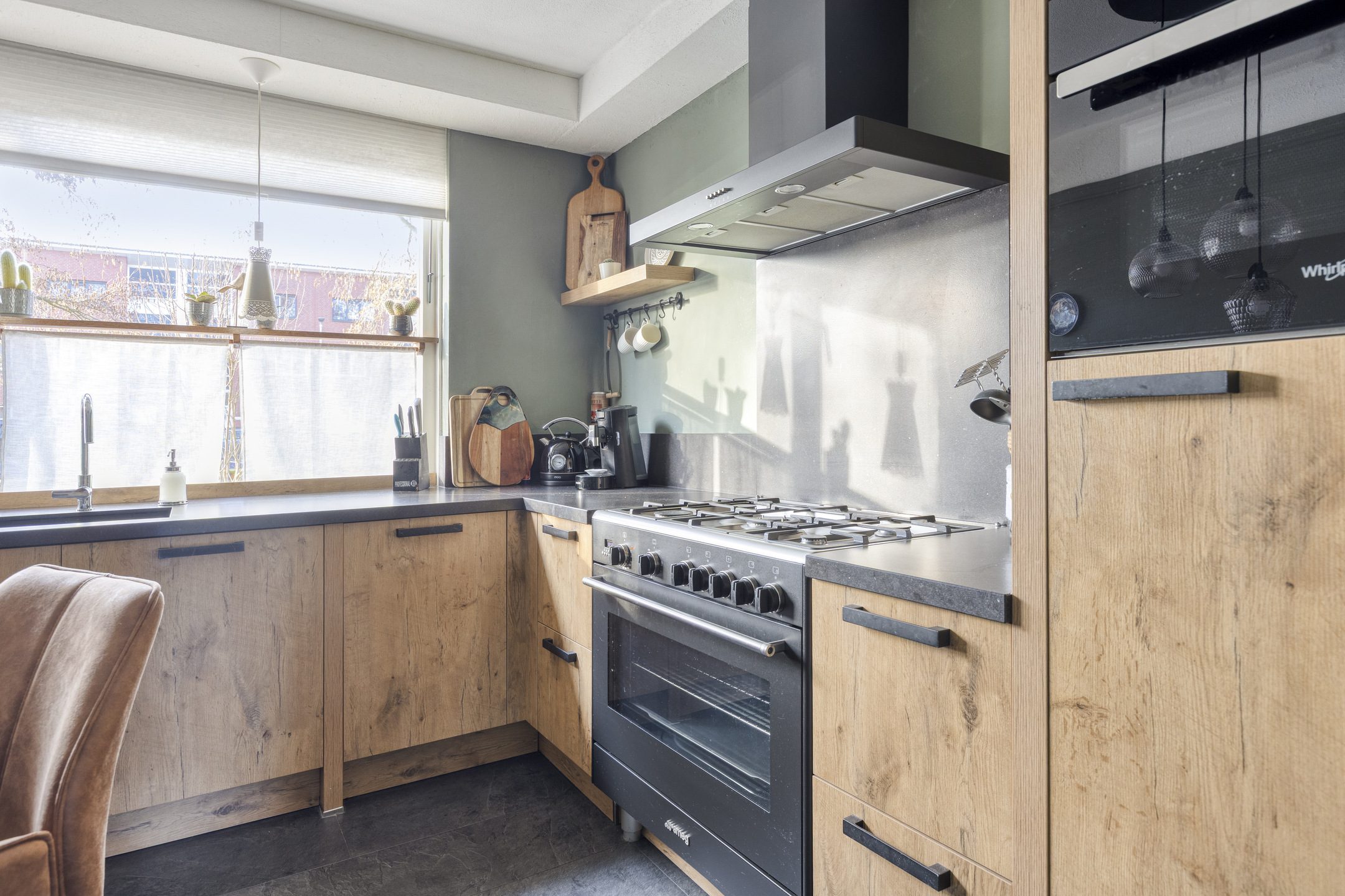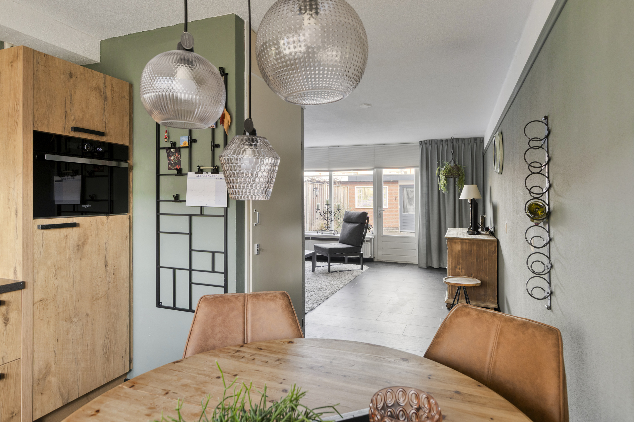 Via de voortuin bereikt u de entree hal met meterkast (voorzien van 6 groepen, aardlekschakelaar, groep t.b.v. zonnepanelen en aansluiting glasvezel). Trap naar de eerste verdieping en modern toilet voorzien van hangend closet met handwasbakje. Heerlijke woonkamer met toegang tot de achtertuin en een trapkast. De woonkamer is circa 25 m² groot en biedt toegang tot de halfopen keuken aan de voorzijde van de woning. De keuken (bouwjaar 2017) is circa 9,5 m² groot en de inrichting is geplaatst in hoekopstelling met o.a. de volgende inbouwapparatuur, 5-pits gasfornuis met oven 'Smeg', afzuigkap, vaatwasmachine, combimagnetron, koelkast en close-in boiler. De begane grond is voorzien van een pvc vloer met 2-groeps vloerverwarming.