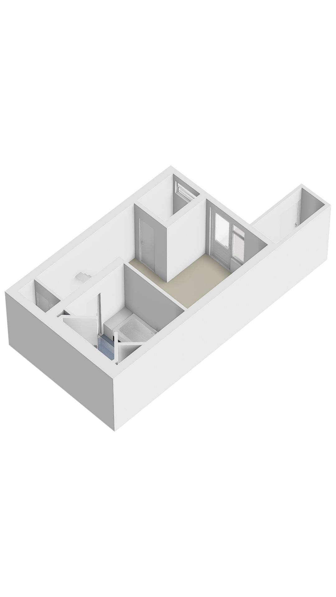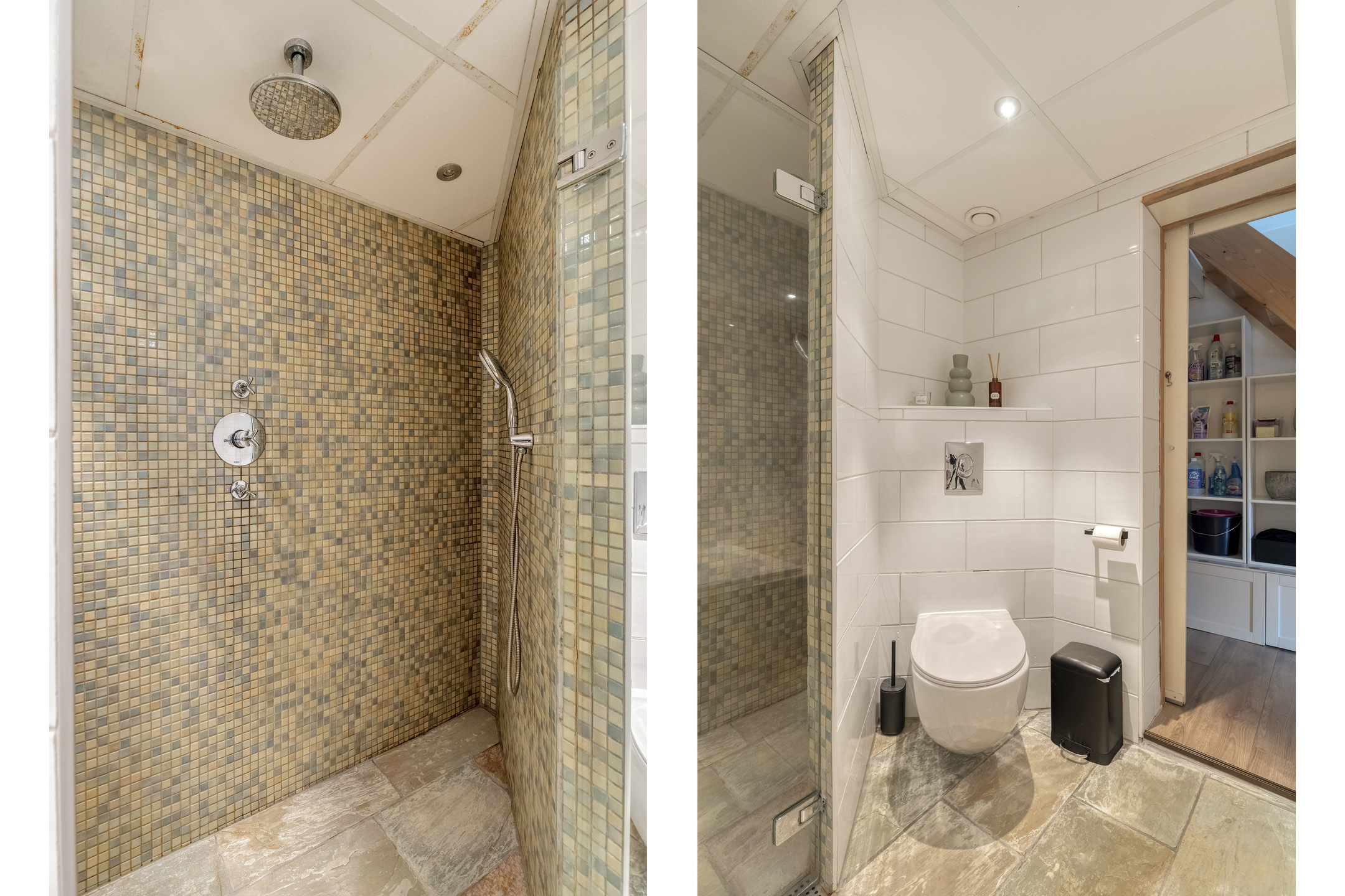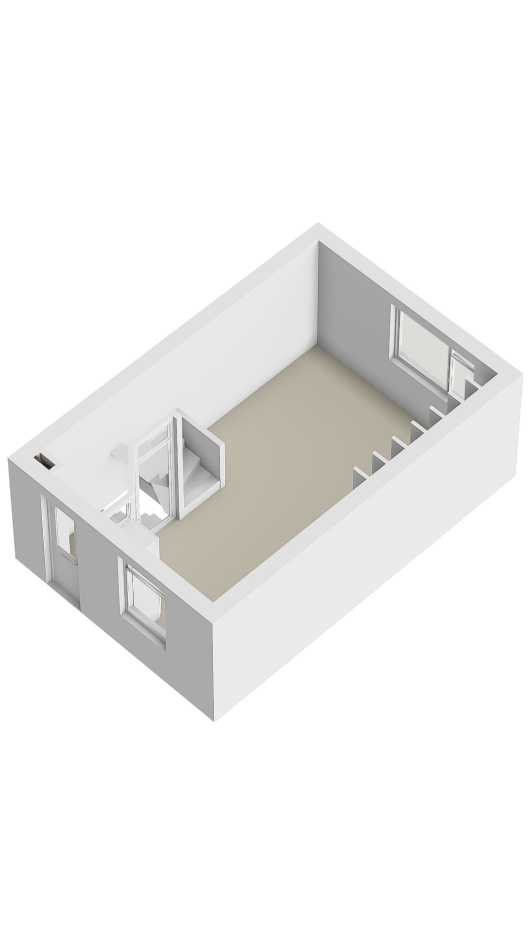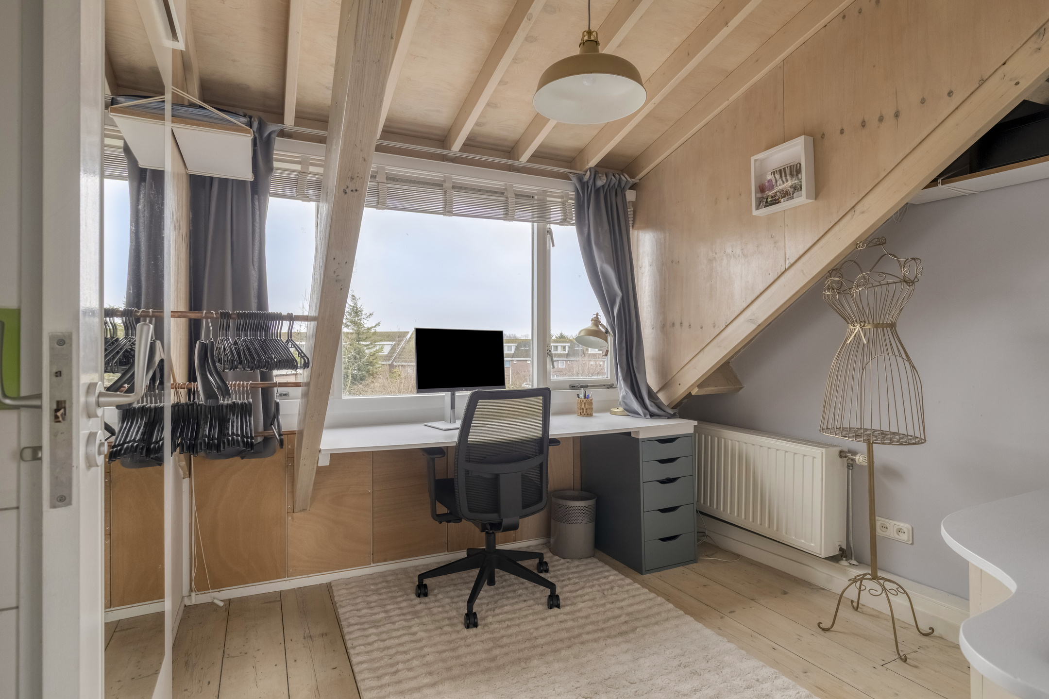 Overloop waarop een toilet “Sanibroyeur” (32 mm afvoer) met handwasbakje. Aansluitend 2 kamers, welke beiden zijn voorzien van een dakkapel en één kamer met een vaste kastenwand en een airco-installatie (bj. 2021). Indien gewenst kan van deze 2 kamers ook één grote kamer gemaakt worden. Op de vloer liggen houten planken in white wash uitvoering.