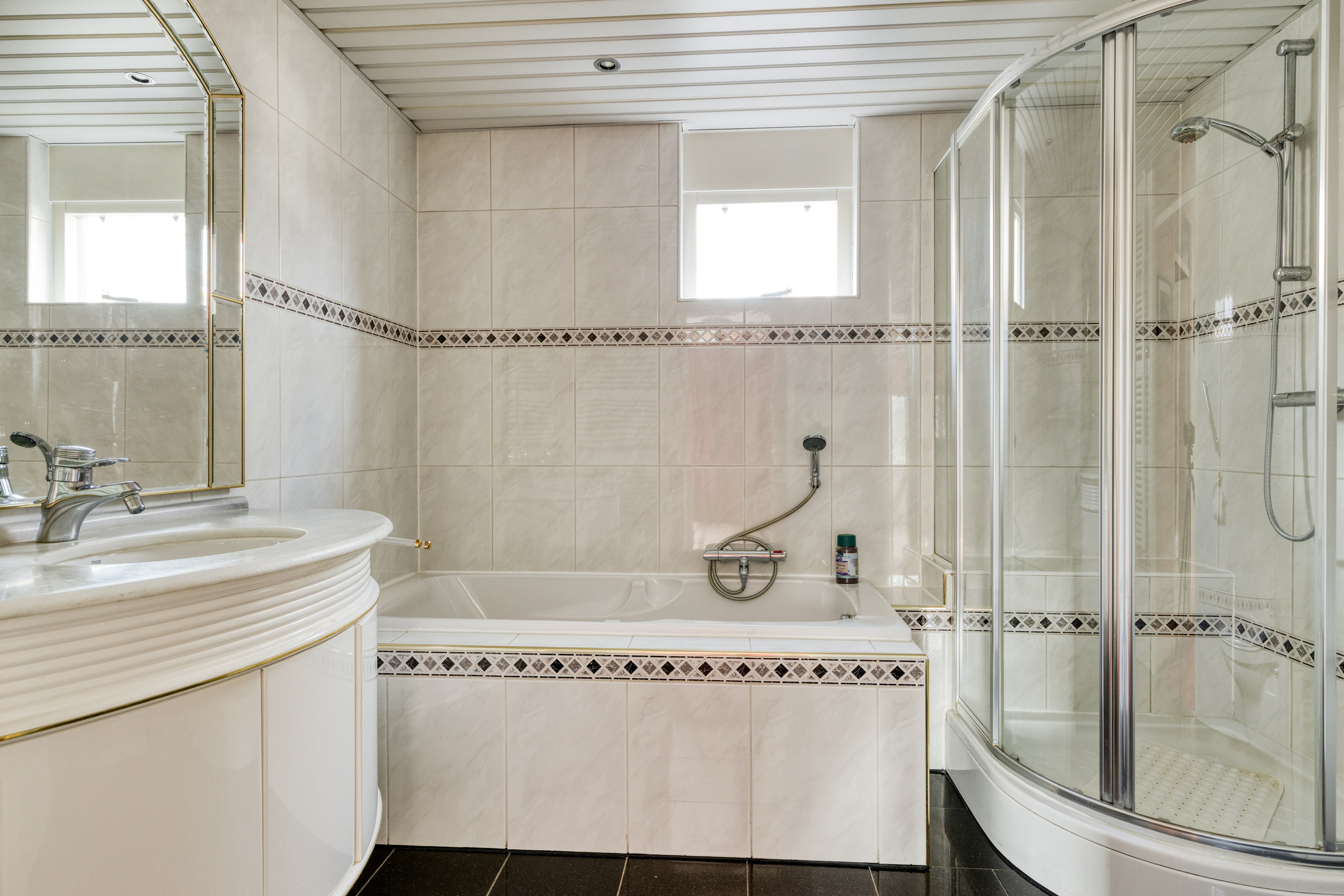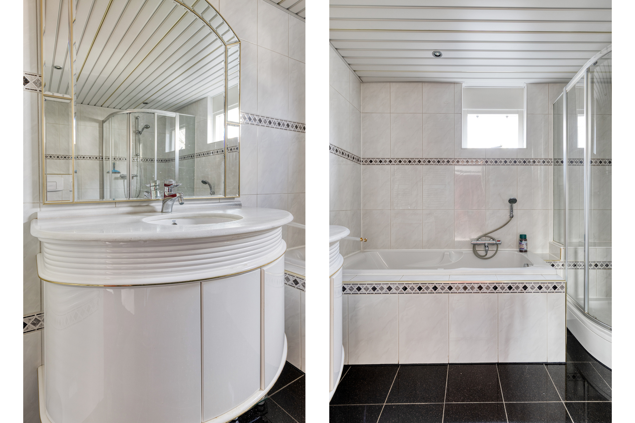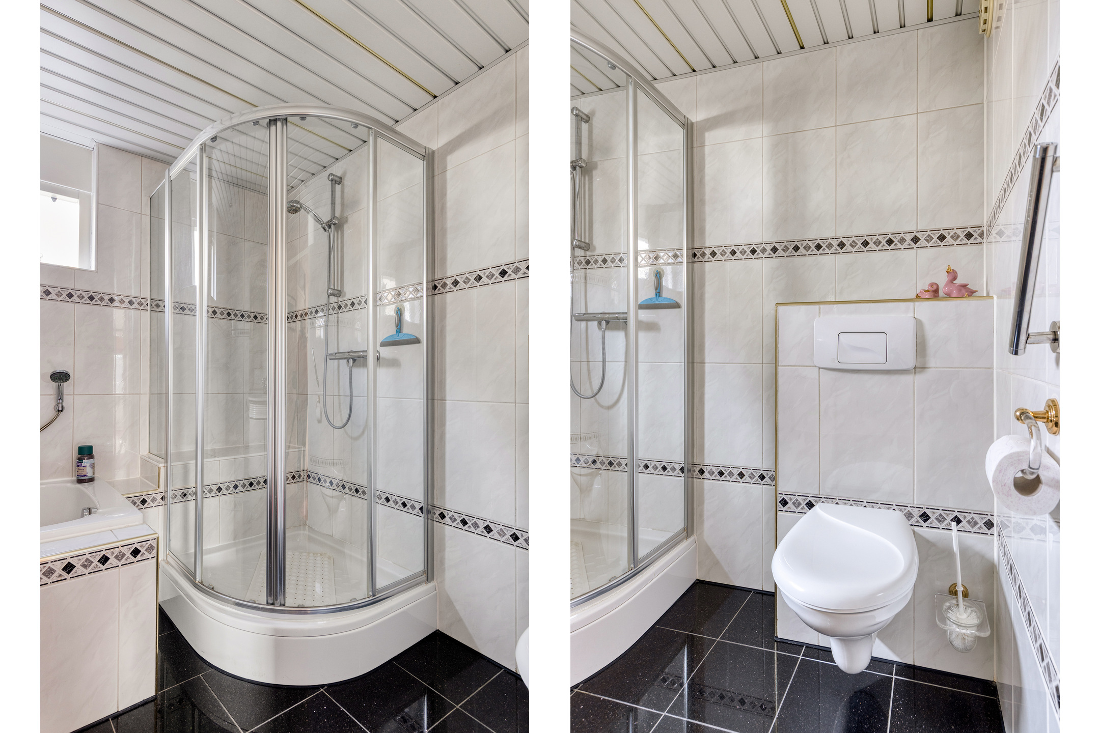 De overloop geeft toegang tot de 2 royale slaapkamers, de badkamer en de vaste trap naar de 2e verdieping. Slaapkamer 1 van circa 12 m² is aan de voorzijde gelegen en slaapkamer 2 van circa 15,5 m² is aan de achterzijde gelegen en voorzien van een airco-installatie (bj. 2022), een royale schuifkastenwand en een nieuw hardhouten kozijn met dubbel glas. De trapopgang, de overloop en de slaapkamers zijn allen voorzien van stoffering. De geheel betegelde lichte badkamer is voorzien van een douchecabine, ligbad, 2e toilet, wastafelmeubel, een designradiator en een aluminium plafond. Het kiepraam zorgt voor daglichttoetreding en ventilatie.
