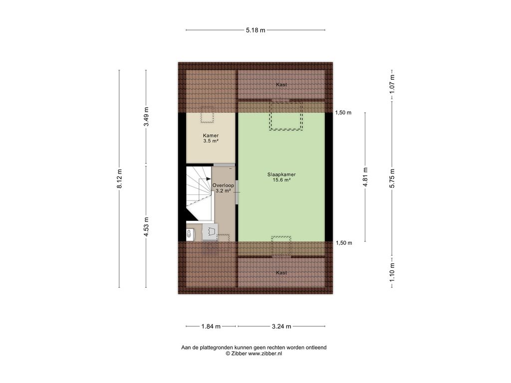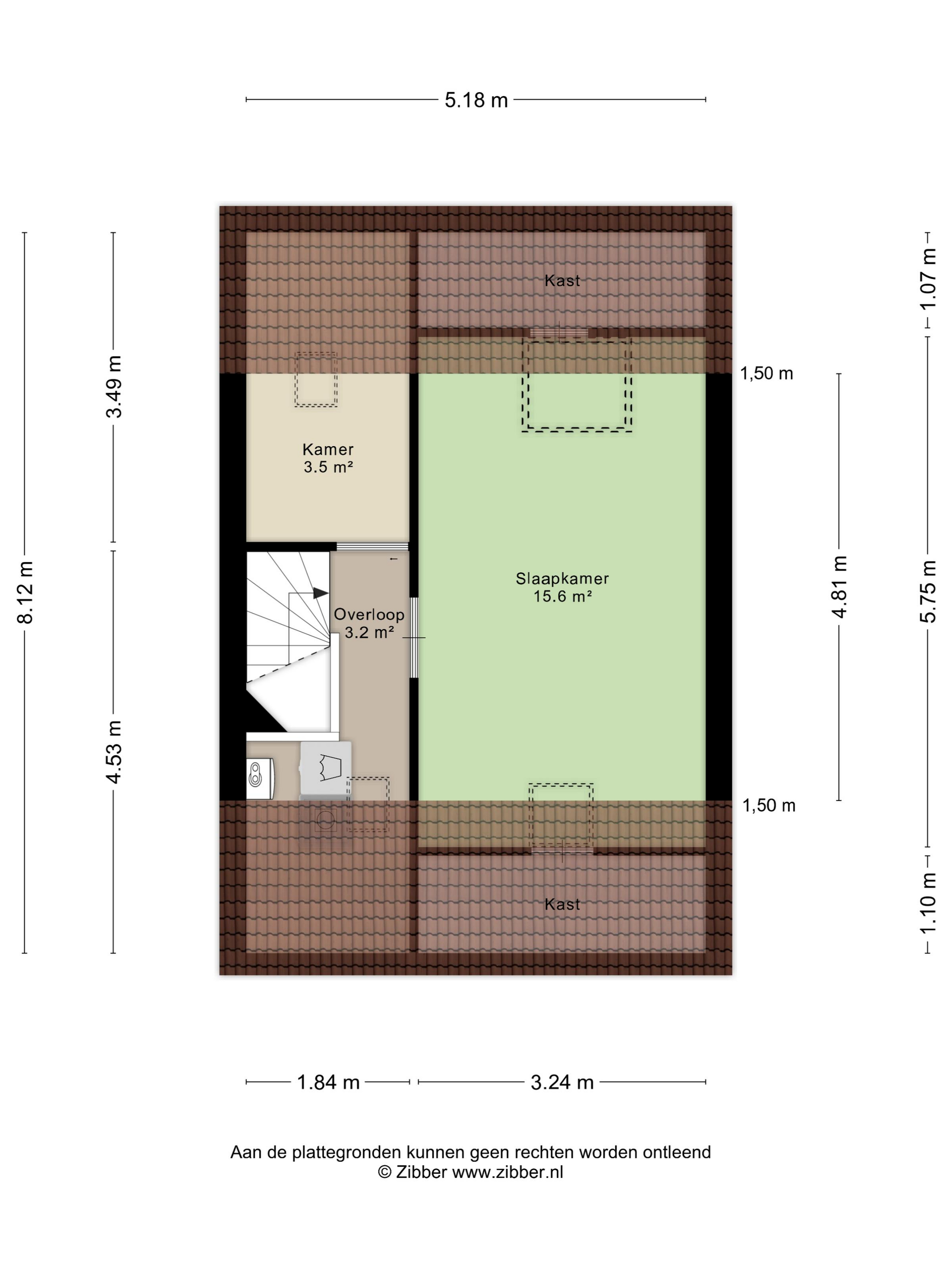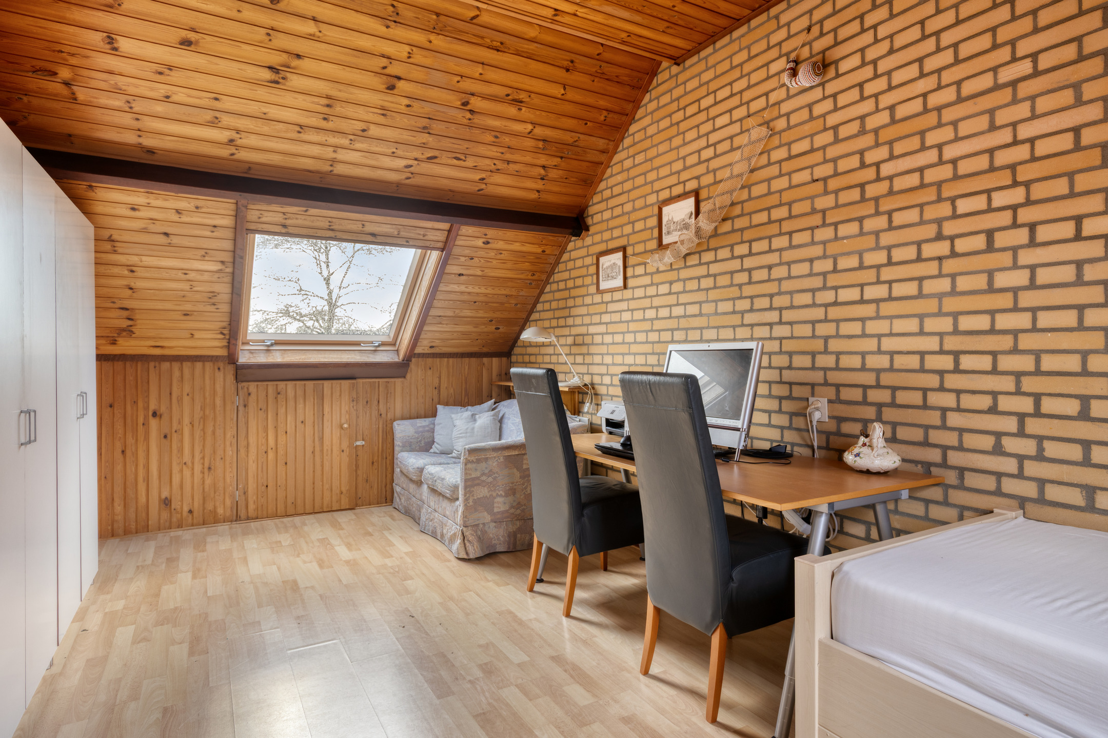 Via de vaste trap is de 2e verdieping te bereiken. Overloop voorzien van een Velux dakraam, de cv-combiketel ’Vaillant’ (bj. 2021) en de wasmachine-/drogeraansluiting. Berghok van circa 3,5 m² welke is voorzien van een Velux dakraam, deze ruimte is ideaal als extra opbergruimte. Slaapkamer 3 van circa 15,6 m² welke is voorzien van 2 dakramen aan voor-/achterzijde en grotendeels is afgetimmerd met houten delen. Diverse bergruimte achter de knieschotten. De overloop en de slaapkamer zijn voorzien van een laminaatvloer.