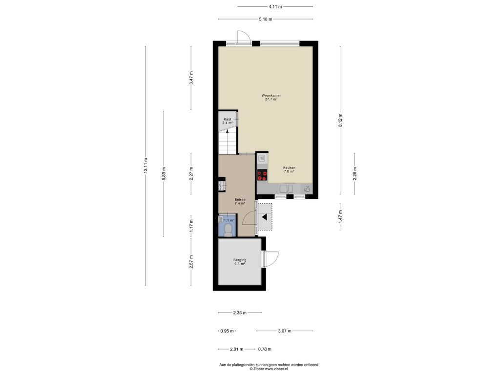 Berging: stenen berging aan de voorzijde van de woning van 6,1 m²