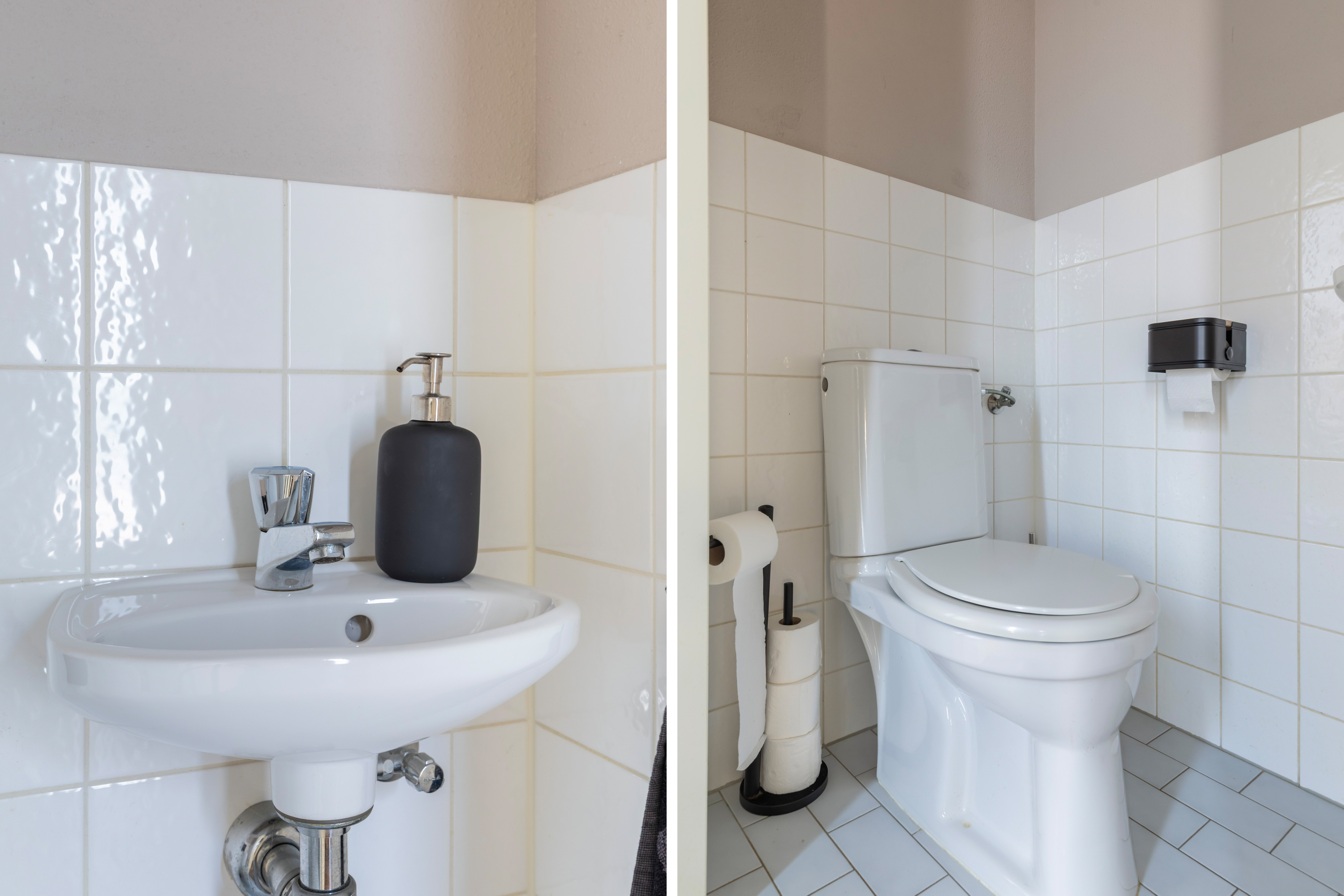 Entree hal via de eigen voordeur met toegang tot alle vertrekken. Meterkast voorzien van 5 groepen en 2 aardlekschakelaars. Tot halve hoogte betegeld toilet met handwasbakje. Volledig betegelde, inpandige badkamer met douche, wastafel en wasmachine aansluiting.
