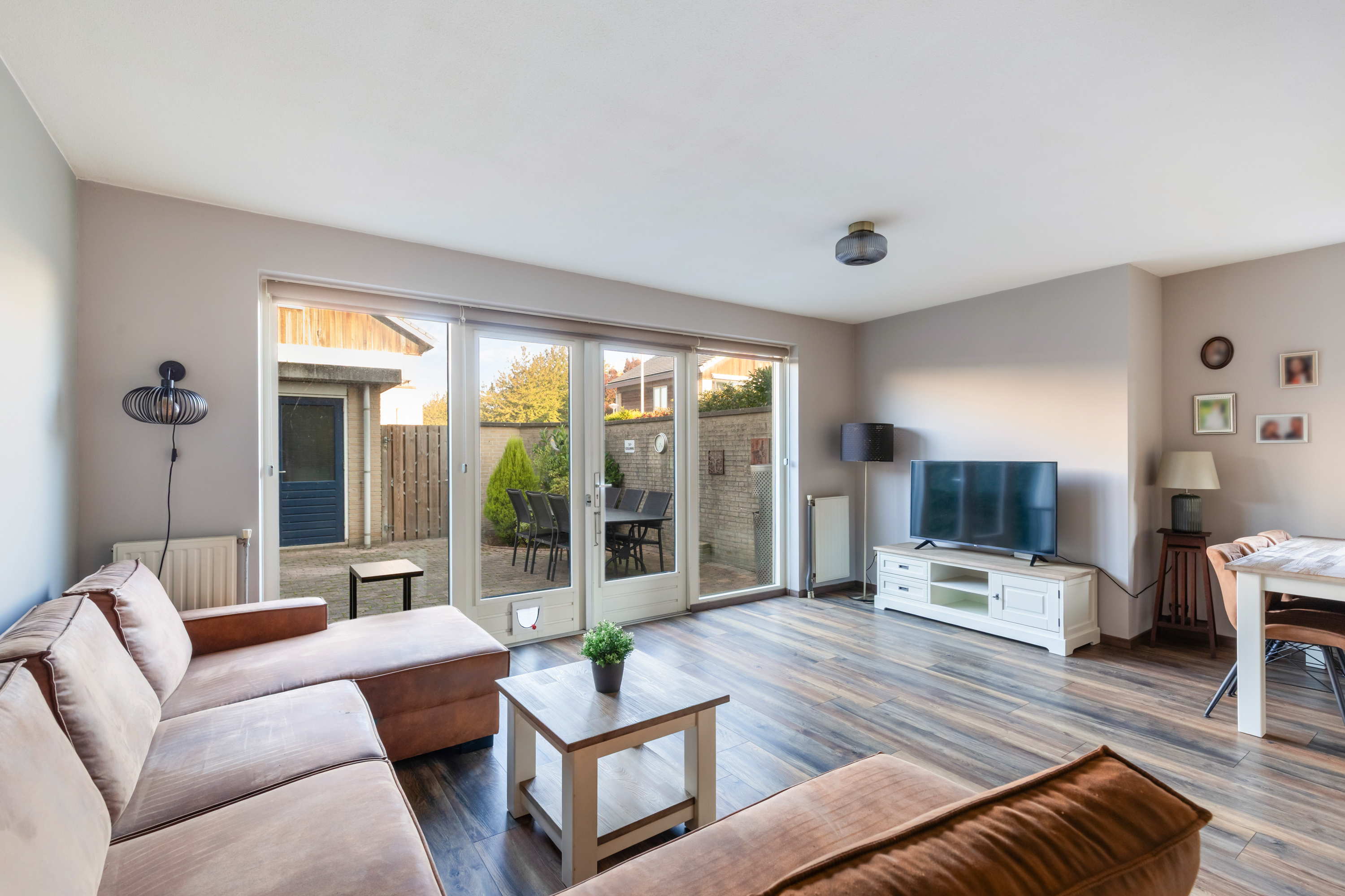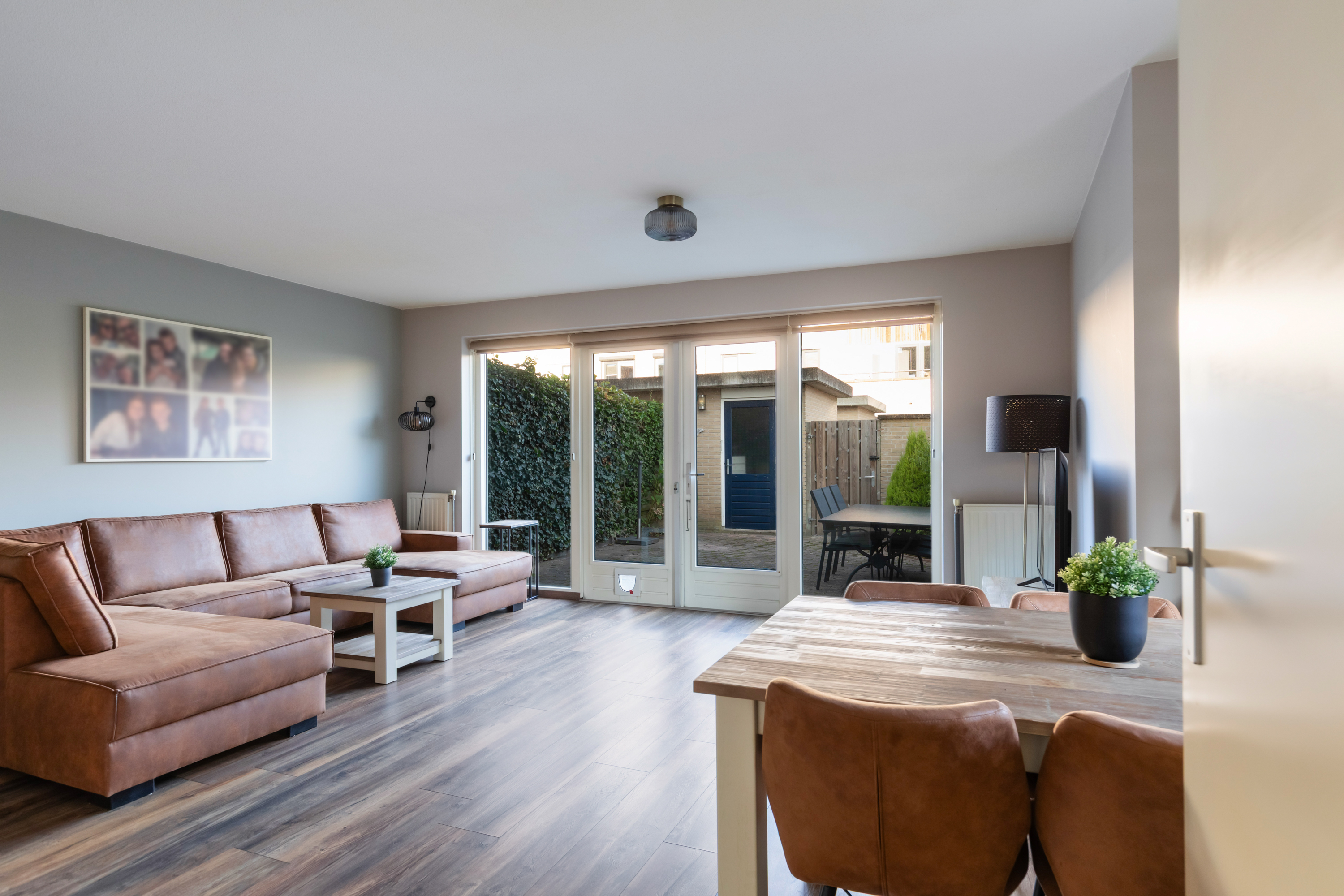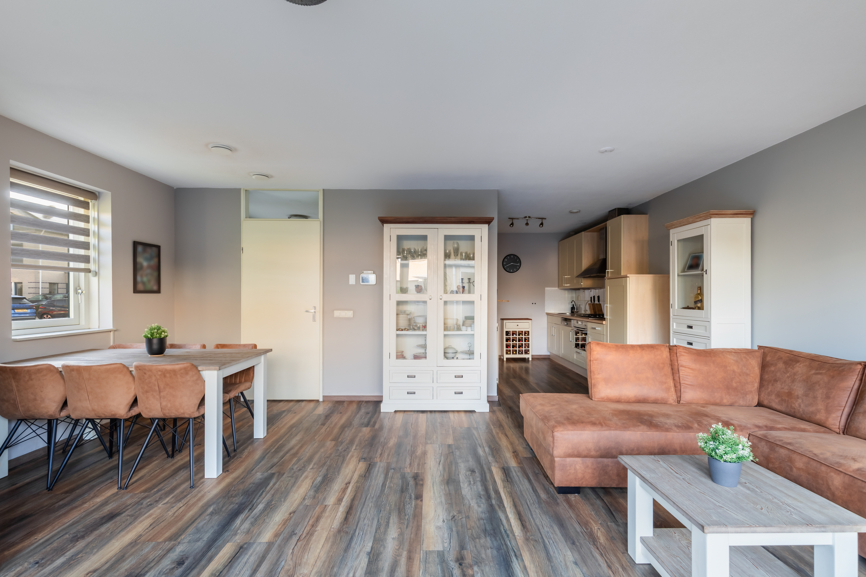 De gezellige woonkamer biedt middels openslaande deuren toegang tot de tuin en extra lichtinval via zijraam (met elektrisch rolluik). Aansluitend de open keuken welke is voorzien van een keurige inrichting met o.a. combi-oven, vaatwasmachine, 4-pits gaskookplaat, afzuigkap en koel-/vrieskast. Diepe bergkast waarin warmte-terug-win installatie en Intergas HRE CW4 combiketel (bouwjaar 2022).