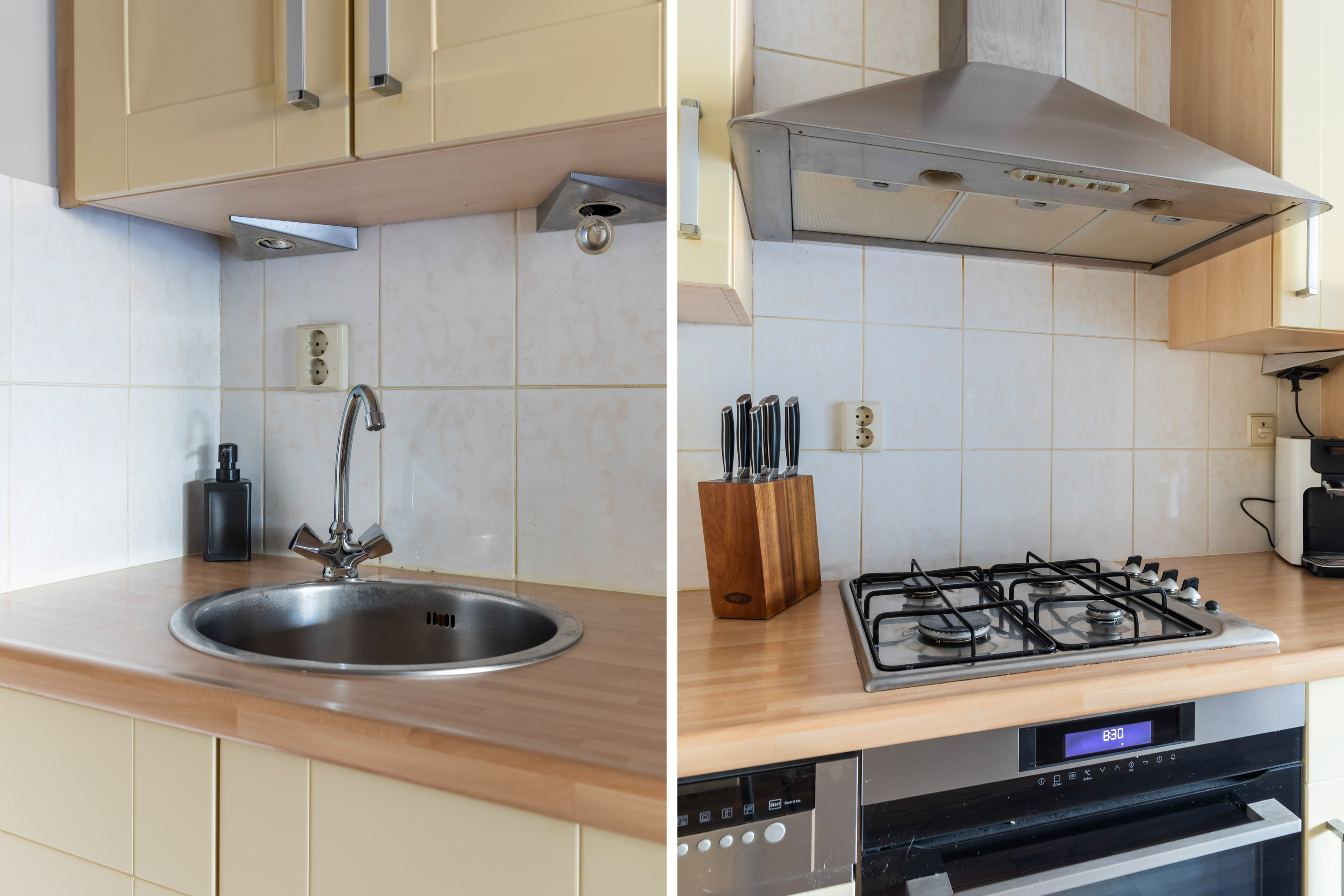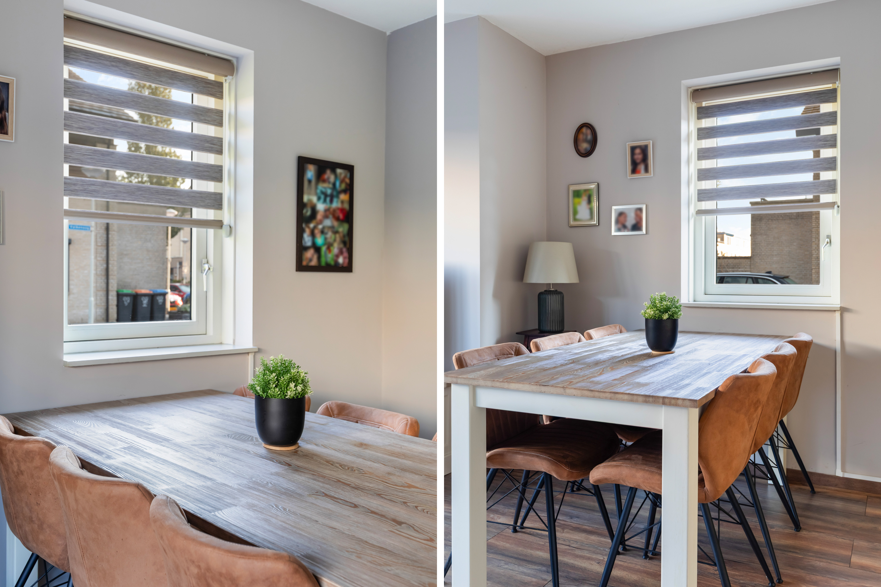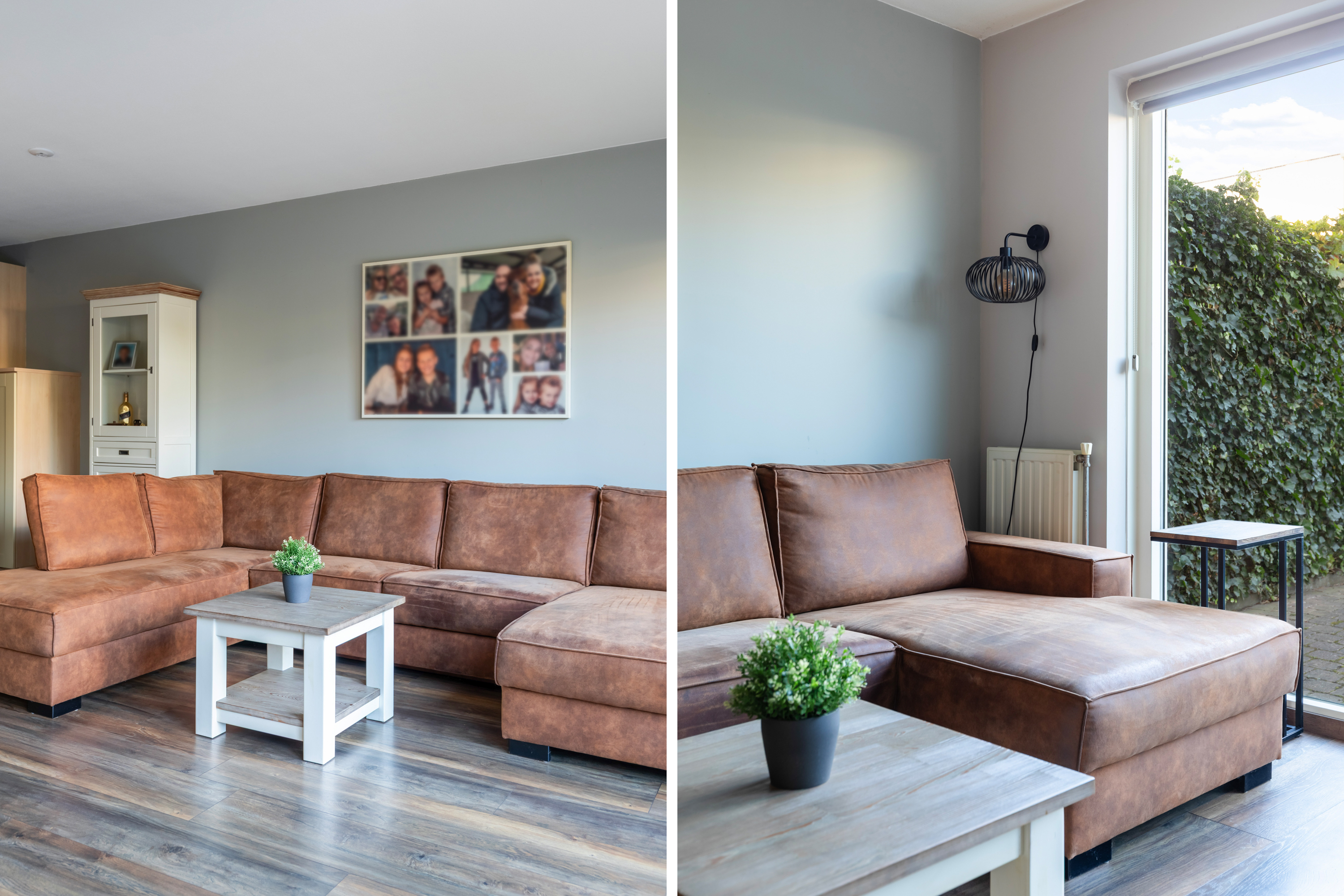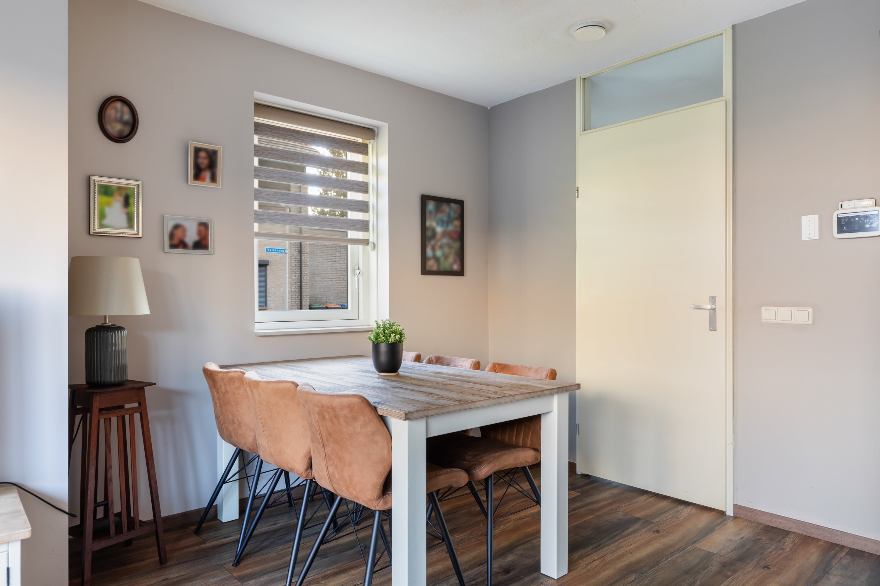 De gezellige woonkamer biedt middels openslaande deuren toegang tot de tuin en extra lichtinval via zijraam (met elektrisch rolluik). Aansluitend de open keuken welke is voorzien van een keurige inrichting met o.a. combi-oven, vaatwasmachine, 4-pits gaskookplaat, afzuigkap en koel-/vrieskast. Diepe bergkast waarin warmte-terug-win installatie en Intergas HRE CW4 combiketel (bouwjaar 2022).