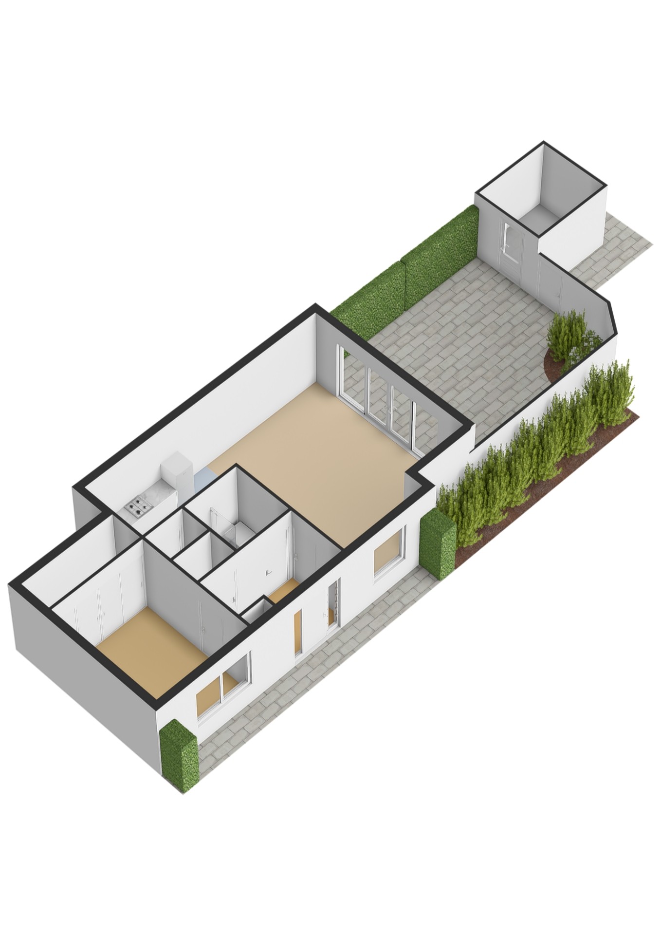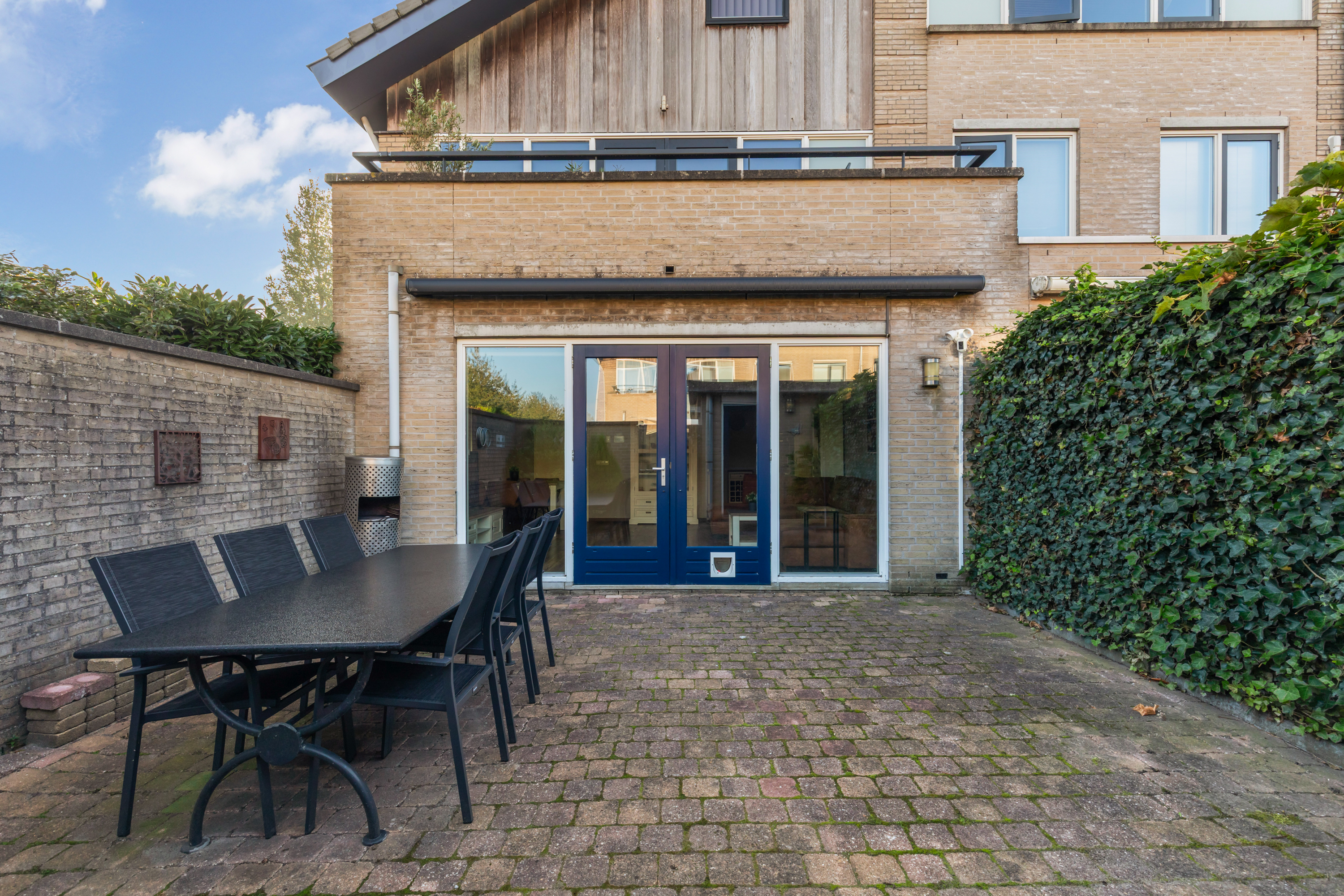 De achtertuin is voorzien van sierbestrating en een elektrisch uitvalscherm aan de achtergevel.