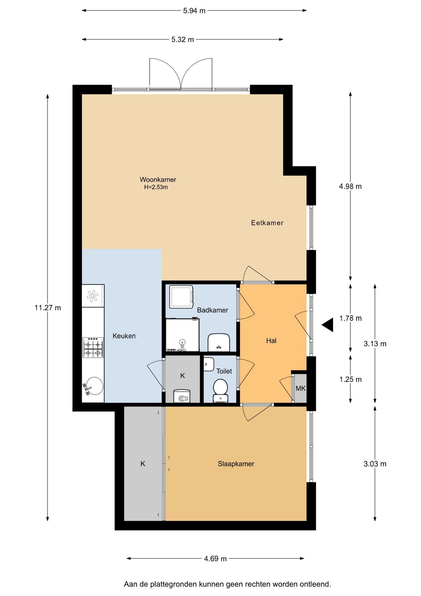 Hoewel deze verkoop tekst (met bijbehorende tekeningen) met uiterste zorg is samengesteld, kan zij onjuistheden bevatten. Aan deze onjuistheden kunnen geen rechten worden ontleend.