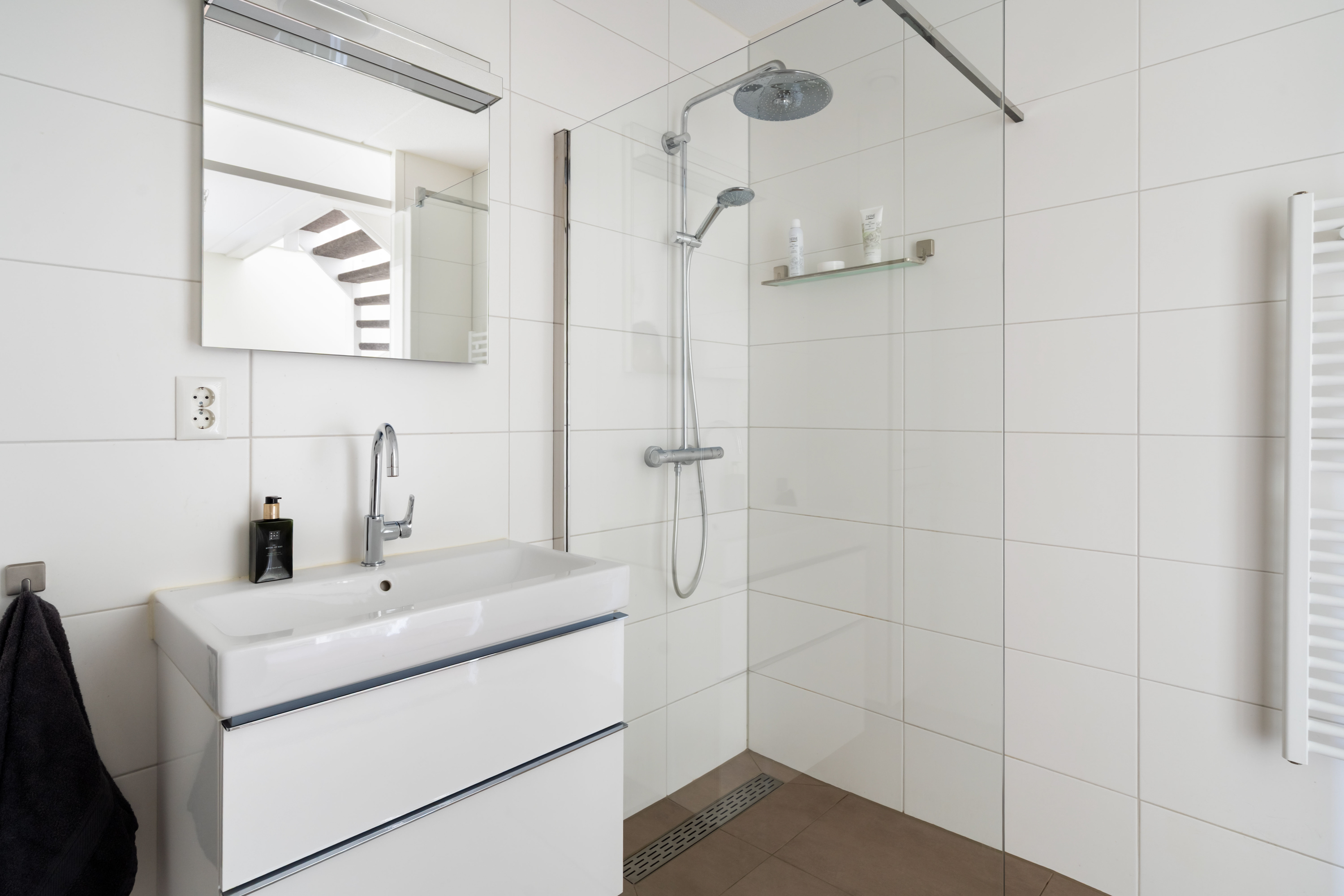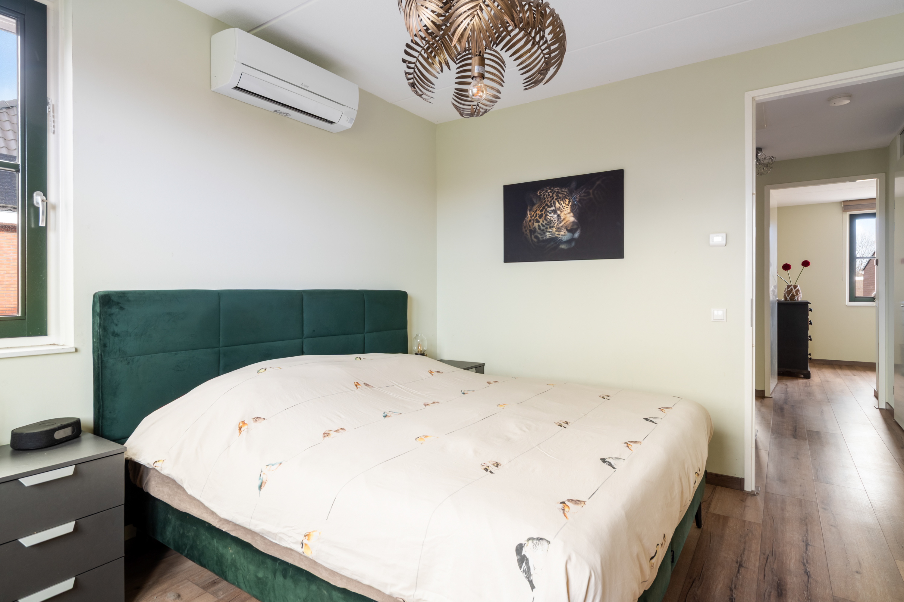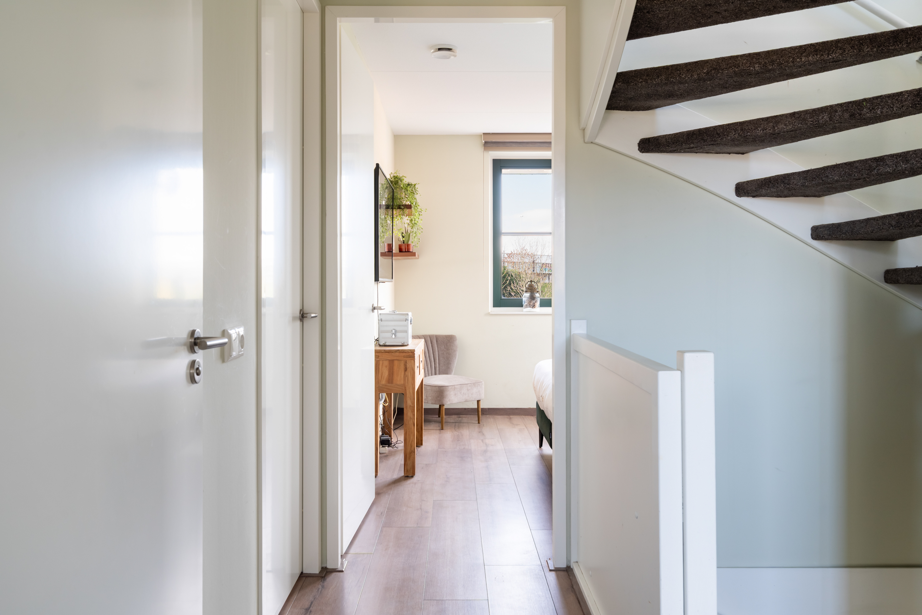 Trappenhuis is voorzien van renovlies wanden. Overloop met vaste trapopgang naar de 2e verdieping. 2e toilet met handwasbakje. Slaapkamer 1, gelegen aan de achterzijde (13 m²) voorzien van airco-installatie (2022). Slaapkamer 2, gelegen aan de achterzijde van circa (10 m²). Slaapkamer 3 en 4 gelegen aan de voorzijde (9 en 6,5 m²). De grote slaapkamer aan de achterzijde is volledig voorzien van horren. De overloop en de slaapkamers zijn allen voorzien van een fraaie laminaatvloer met een 6-groeps vloerverwarming/koeling en voorzien van Renovlies wandafwerking. De inpandige, geheel betegelde badkamer is voorzien van royale inloopdouche met regendouche, wastafelmeubel en een design radiator.