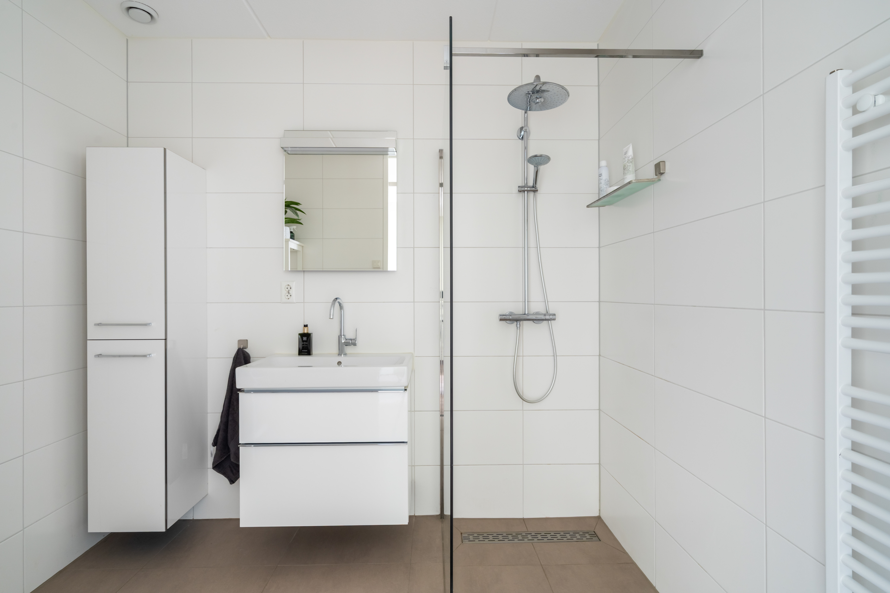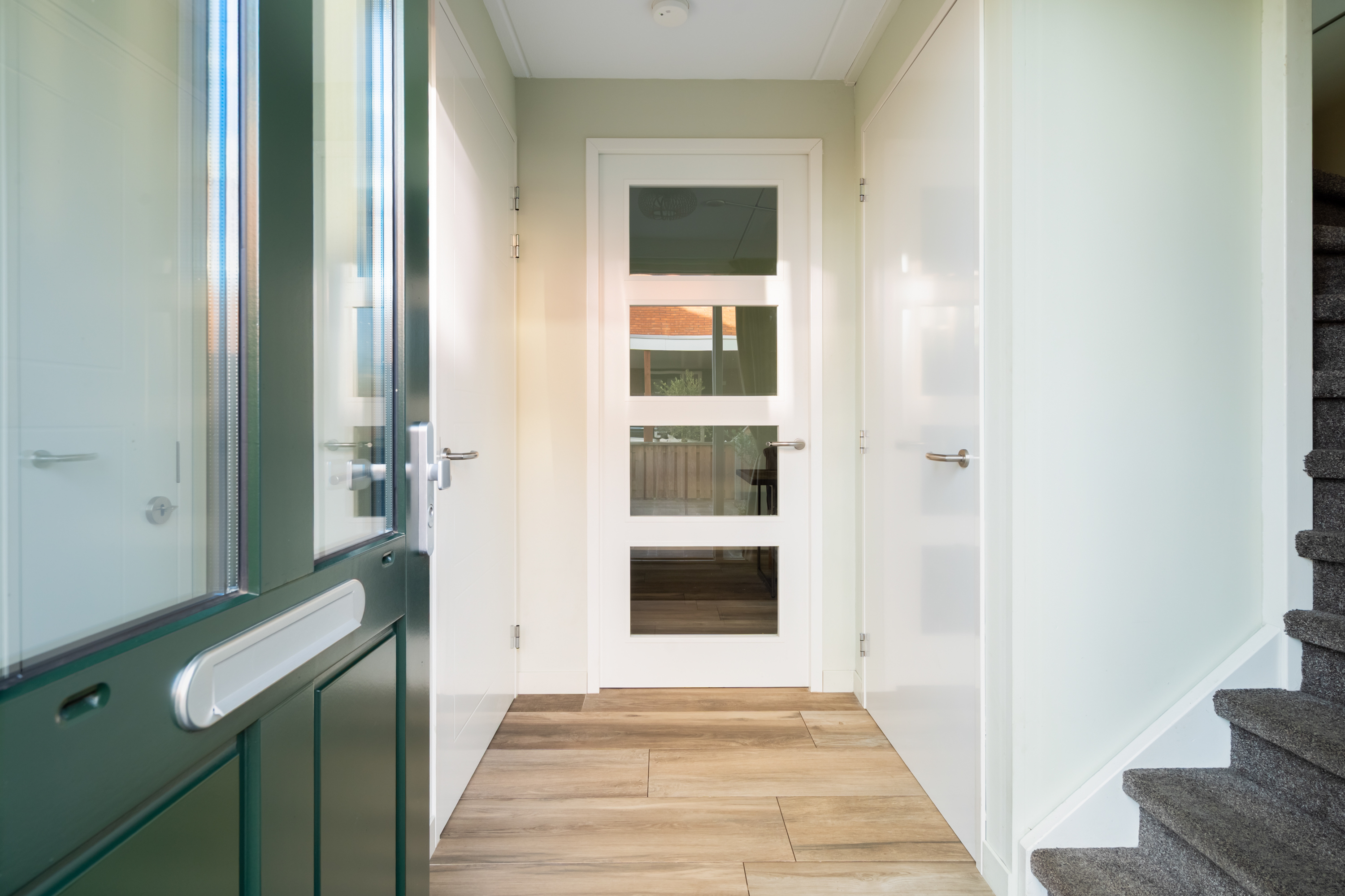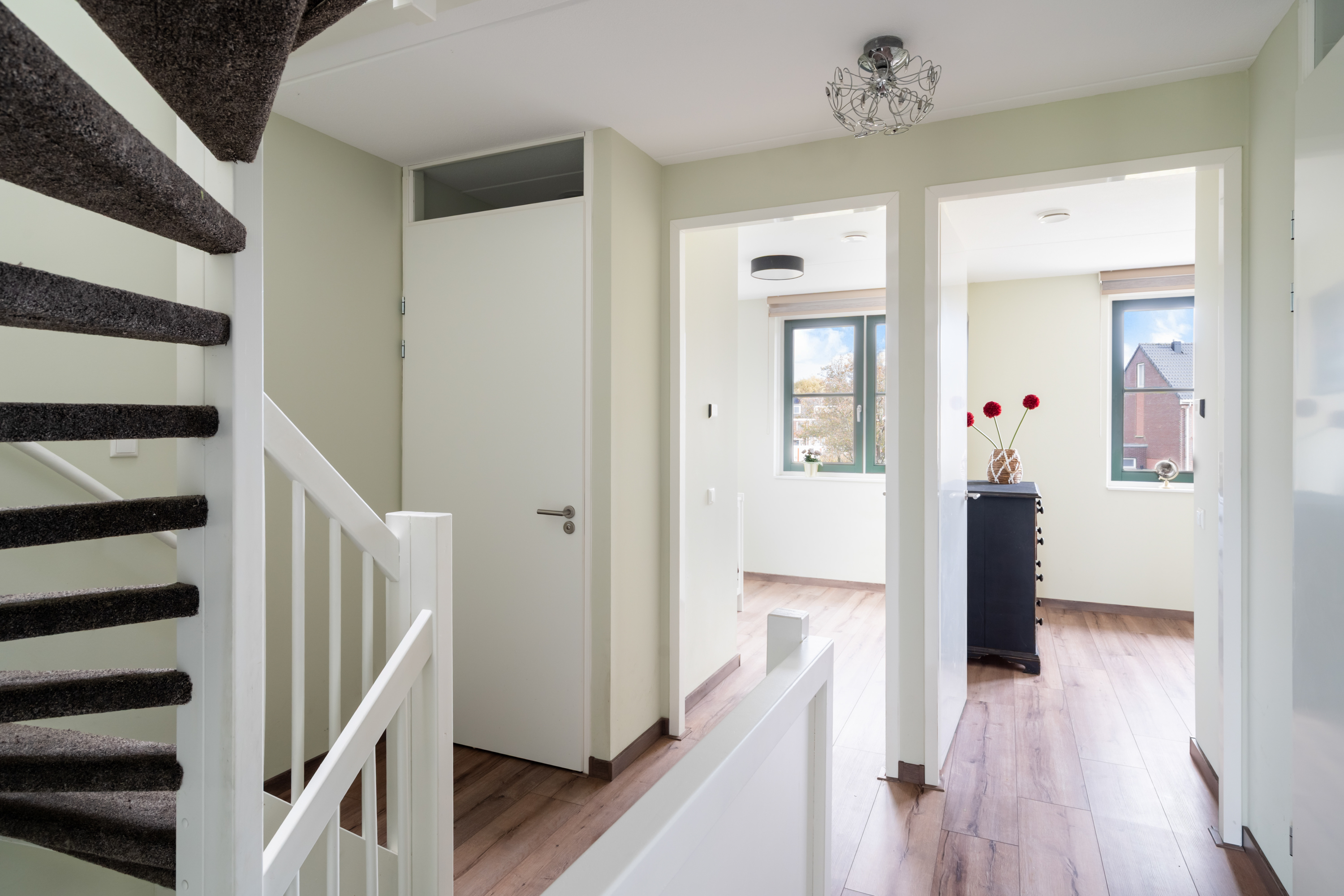 Trappenhuis is voorzien van renovlies wanden. Overloop met vaste trapopgang naar de 2e verdieping. 2e toilet met handwasbakje. Slaapkamer 1, gelegen aan de achterzijde (13 m²) voorzien van airco-installatie (2022). Slaapkamer 2, gelegen aan de achterzijde van circa (10 m²). Slaapkamer 3 en 4 gelegen aan de voorzijde (9 en 6,5 m²). De grote slaapkamer aan de achterzijde is volledig voorzien van horren. De overloop en de slaapkamers zijn allen voorzien van een fraaie laminaatvloer met een 6-groeps vloerverwarming/koeling en voorzien van Renovlies wandafwerking. De inpandige, geheel betegelde badkamer is voorzien van royale inloopdouche met regendouche, wastafelmeubel en een design radiator.