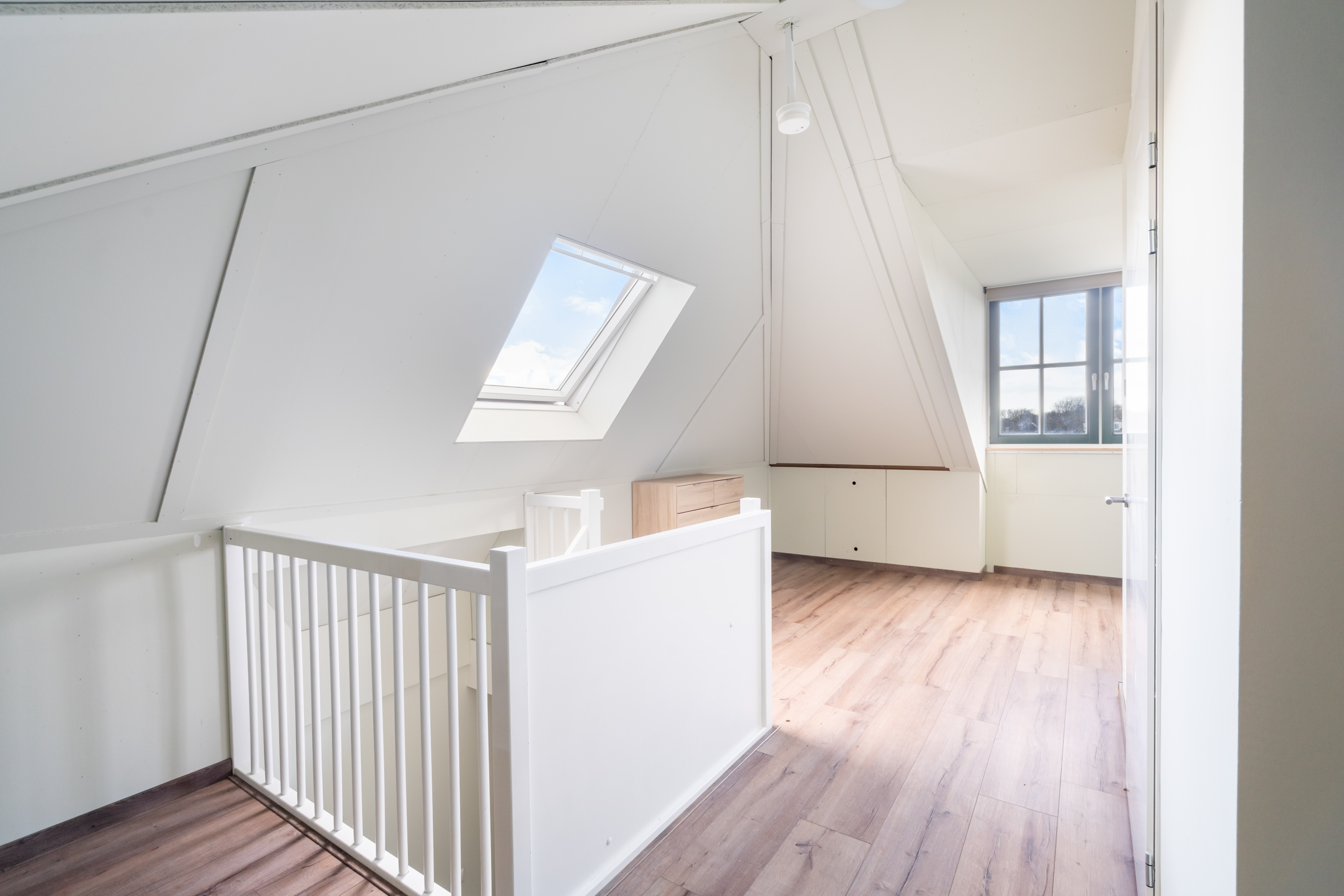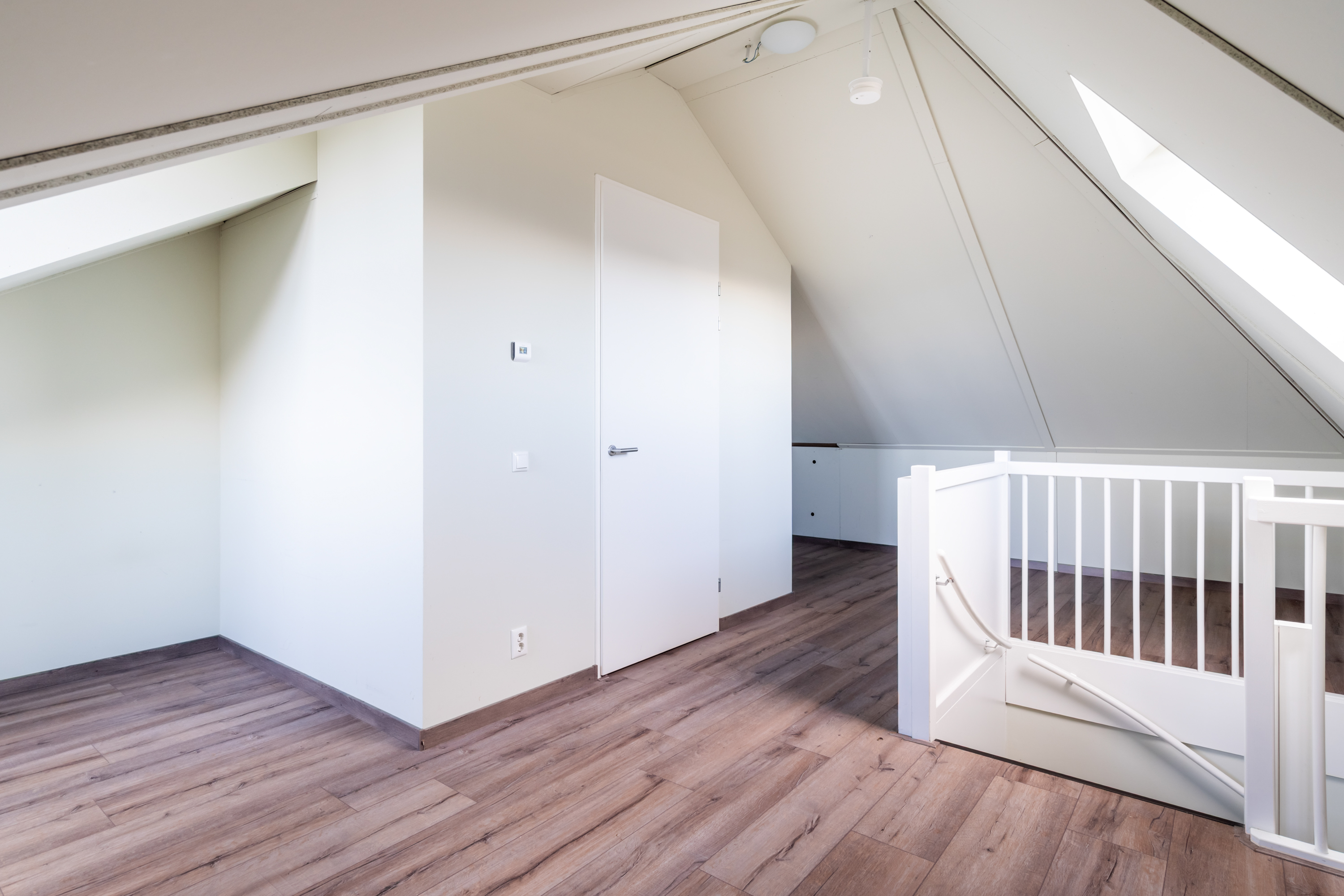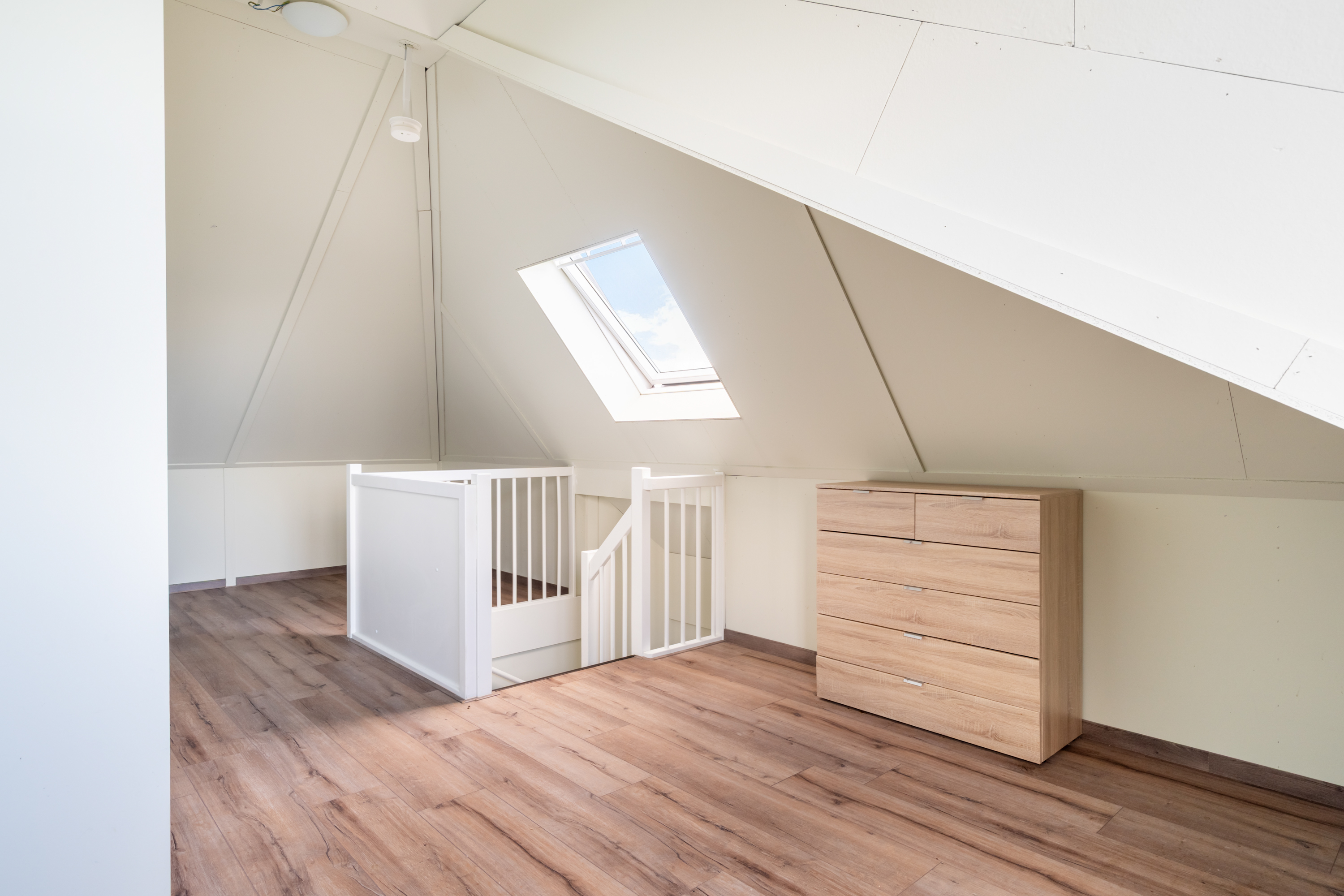 1 grote ruimte met dakkapel aan de voorzijde en een “Velux” dakraam aan de zijkant, diverse bergruimte achter de knieschotten. Van deze ruimte zijn evt. nog 1 of 2 grote kamers te maken. Berging met daarin de wasmachine/droger aansluiting, opstelling warmtepomp en de WTW-installatie. De gehele etagevloer is voorzien van een laminaatvloer en een 6-groeps vloerverwarming/koeling.