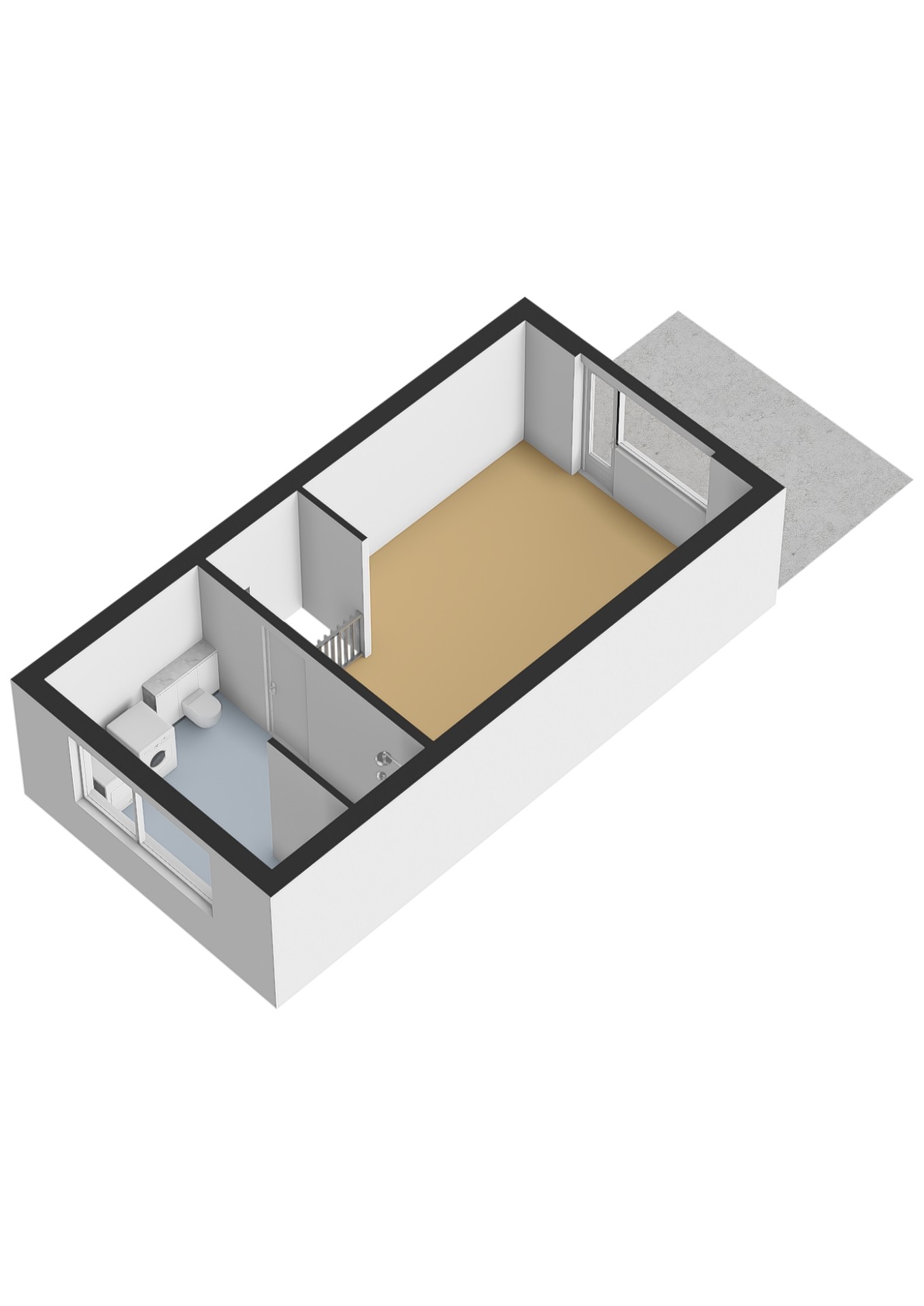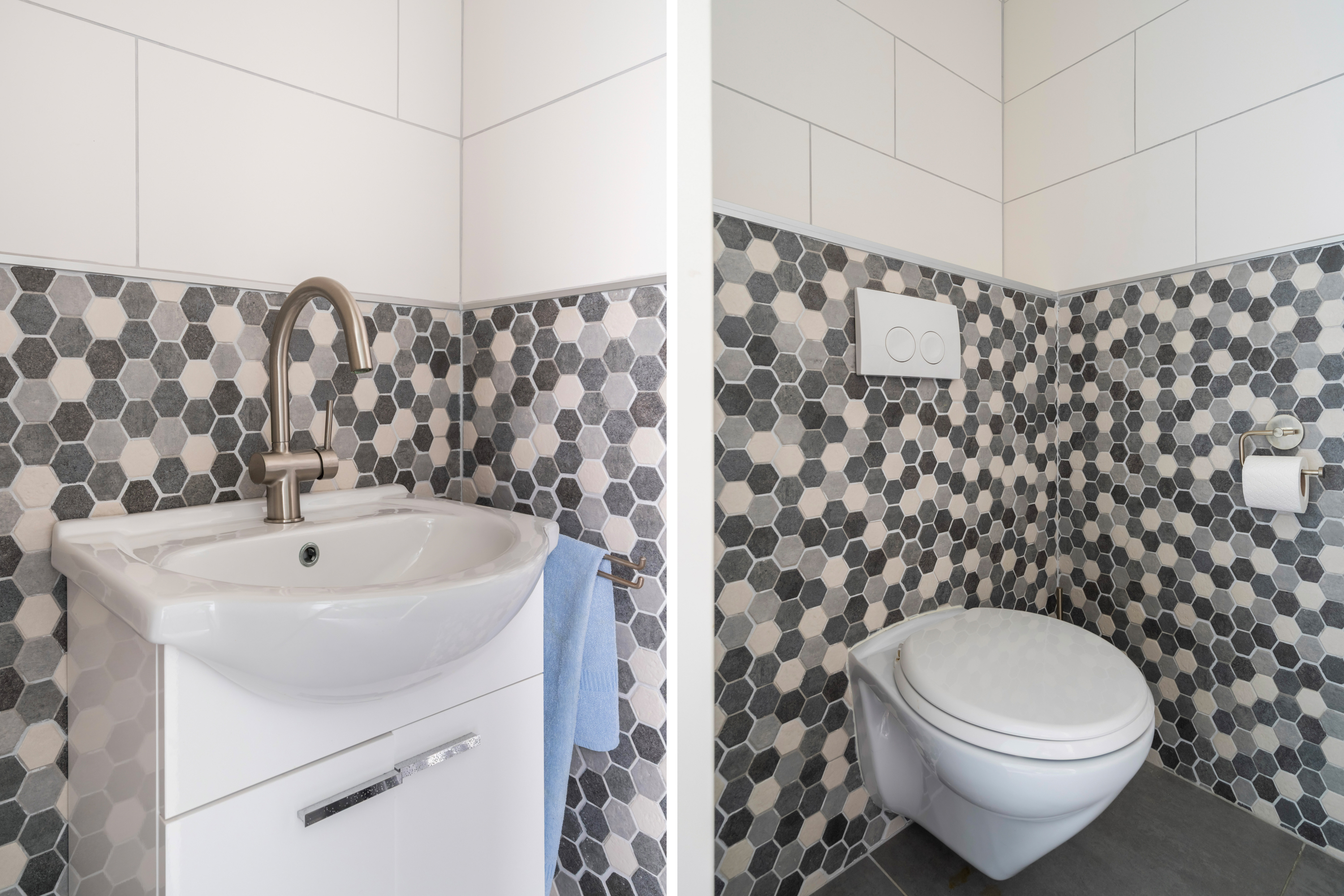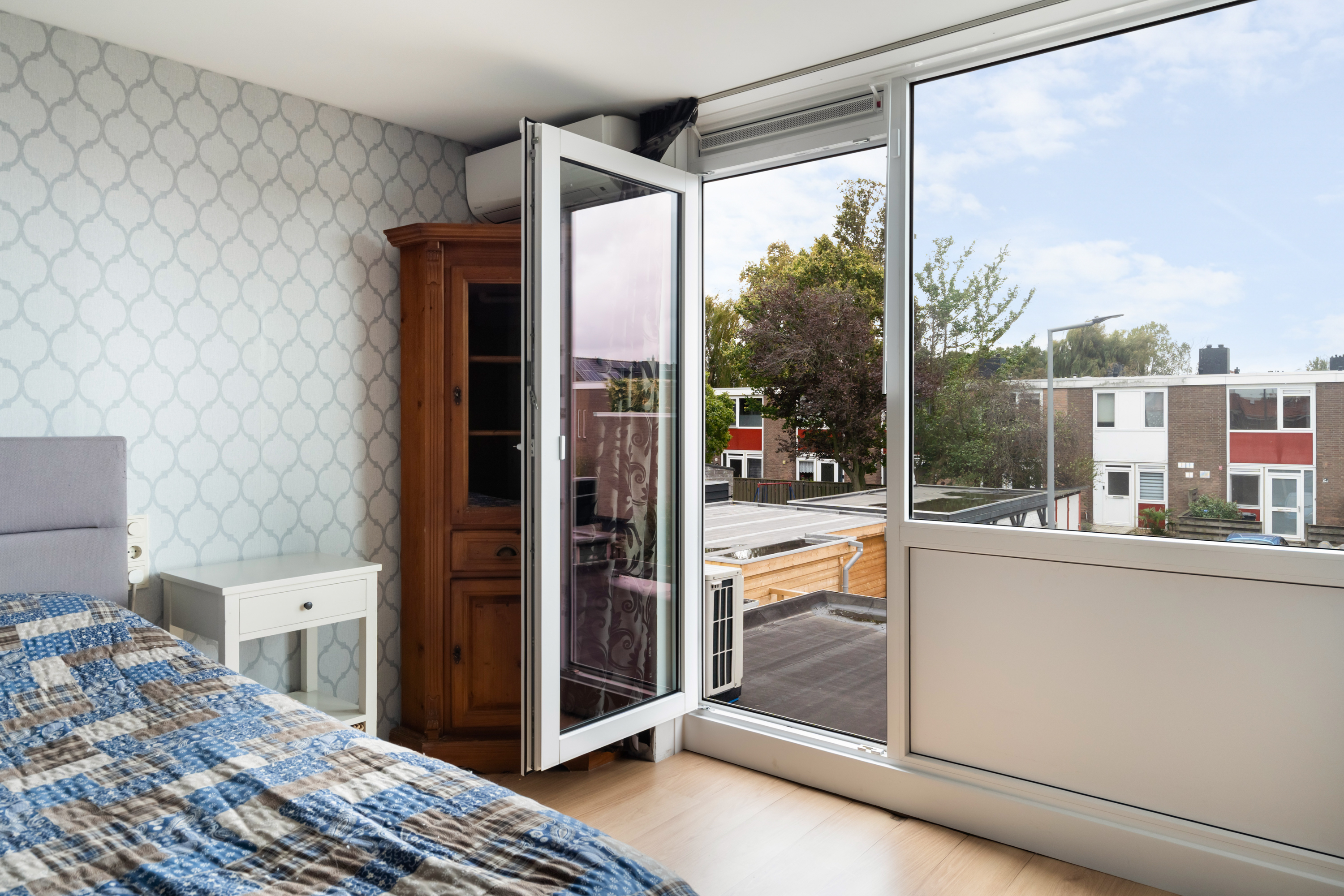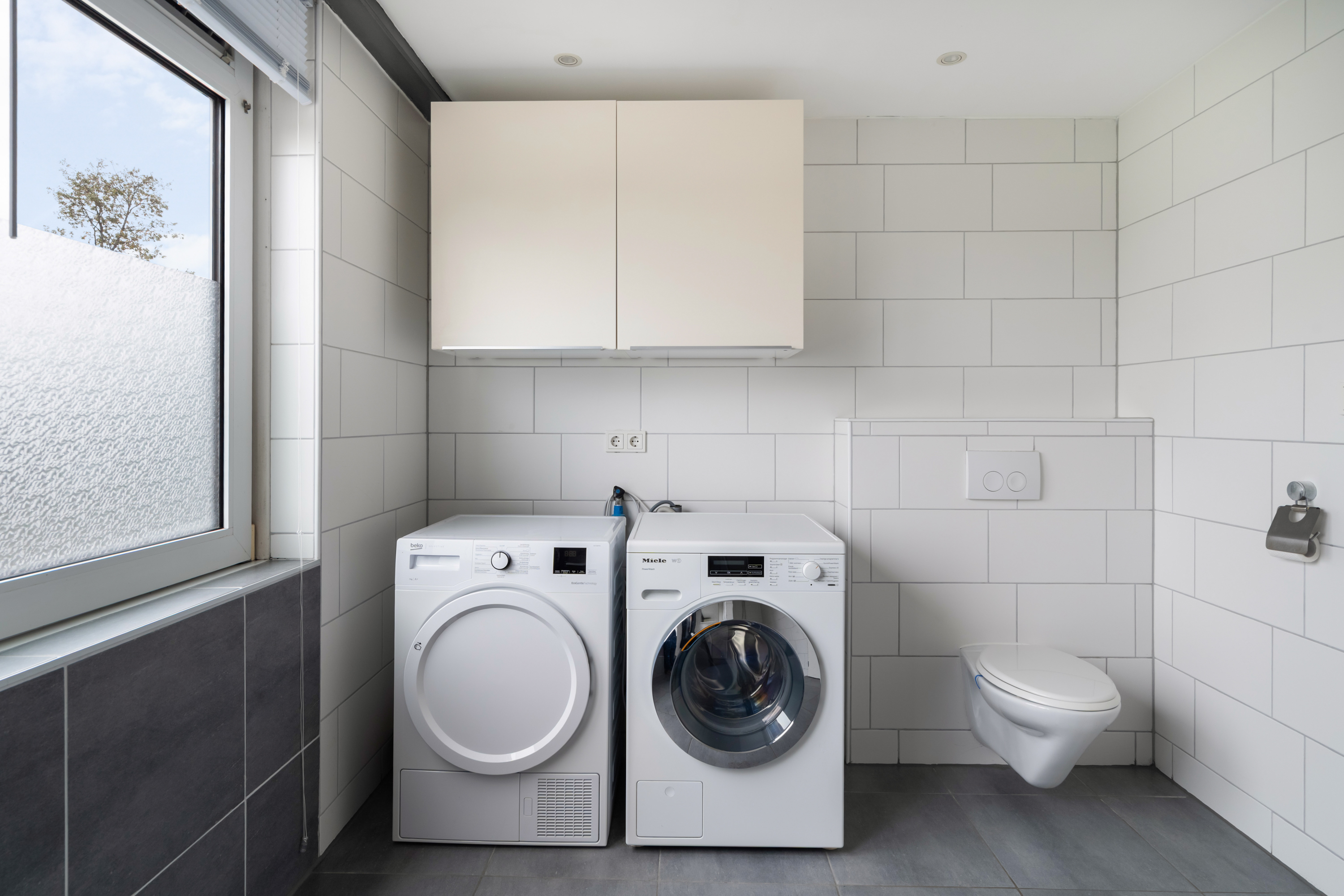 Overloop met toegang tot de vaste kastenwand met opstelling van de CV-ketel “Intergas” 2014. 1 ruime slaapkamer (circa 23 m²) aan de achterzijde van de woning (voorheen 2 kamers) welke is voorzien van een airco installatie (2022). De slaapkamer is keurig afgewerkt en v.v. een laminaatvloer. De moderne badkamer (voorheen slaapkamer) is geheel betegeld en voorzien van een royale inloopdouche met regendouche, 2e toilet, badkamermeubel met wastafel, mechanische afzuiging en de wasmachine/droger aansluiting.