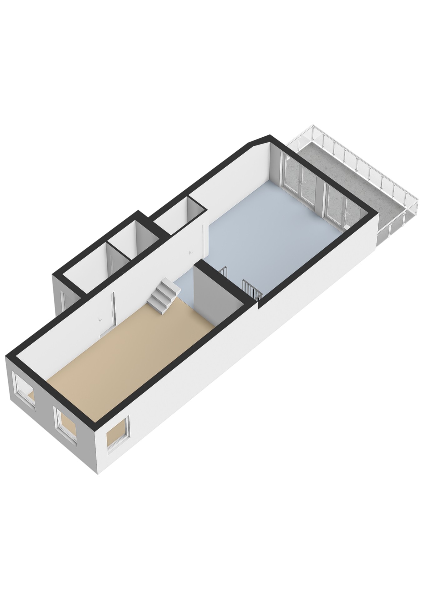 Doordat het in het souterrain hoger is (2.43 hoog) dan een gemiddeld souterrain, geeft dit een ruimtelijk effect.