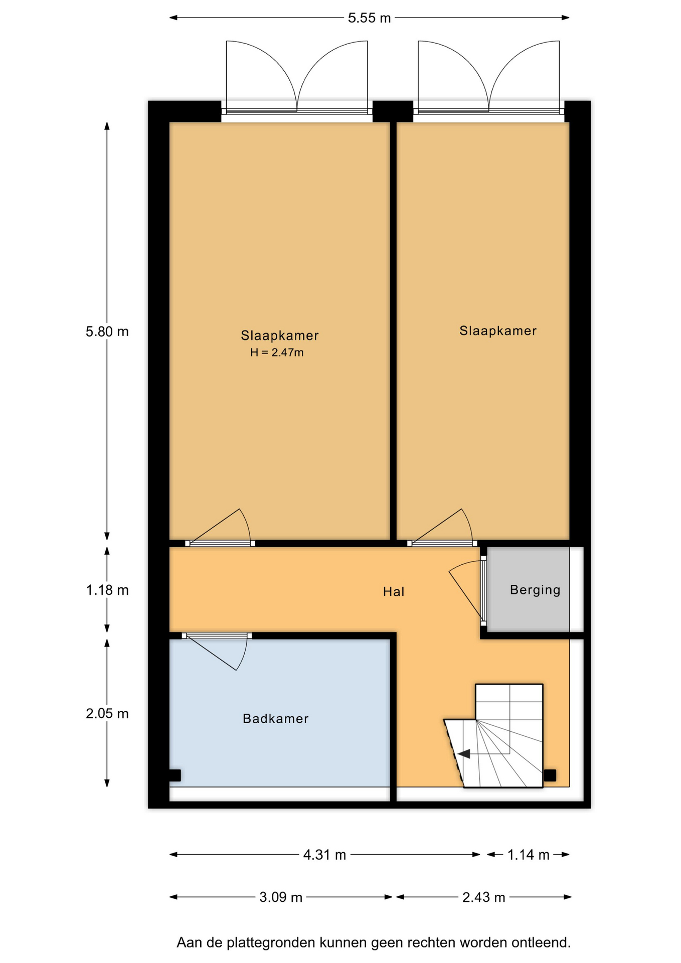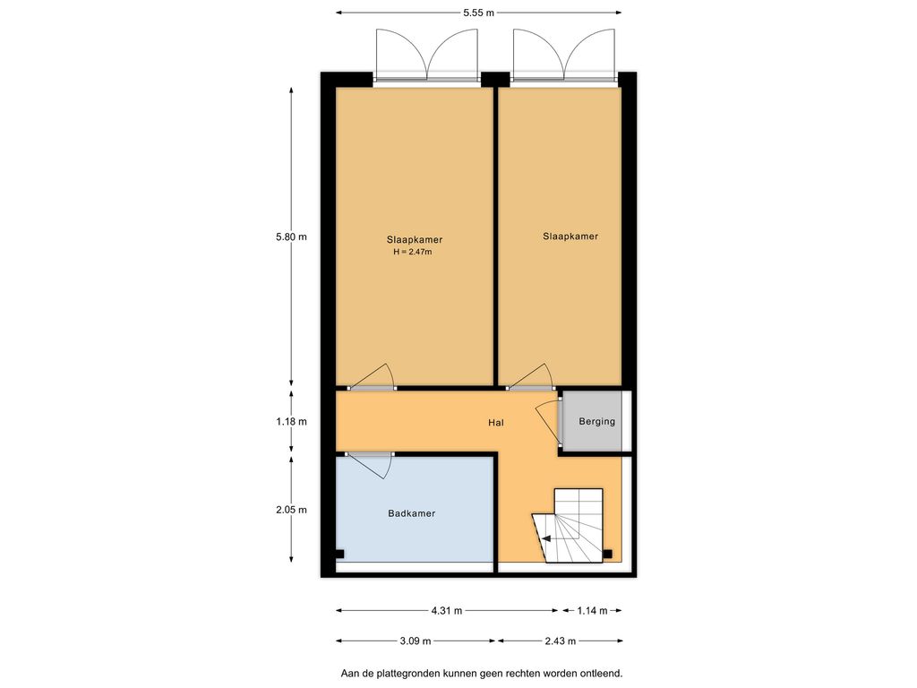 De beide slaapkamers zijn gelegen aan de achterzijde van het pand, ruim van opzet circa 18 m², met aansluitend toegang naar de buitenzijde.