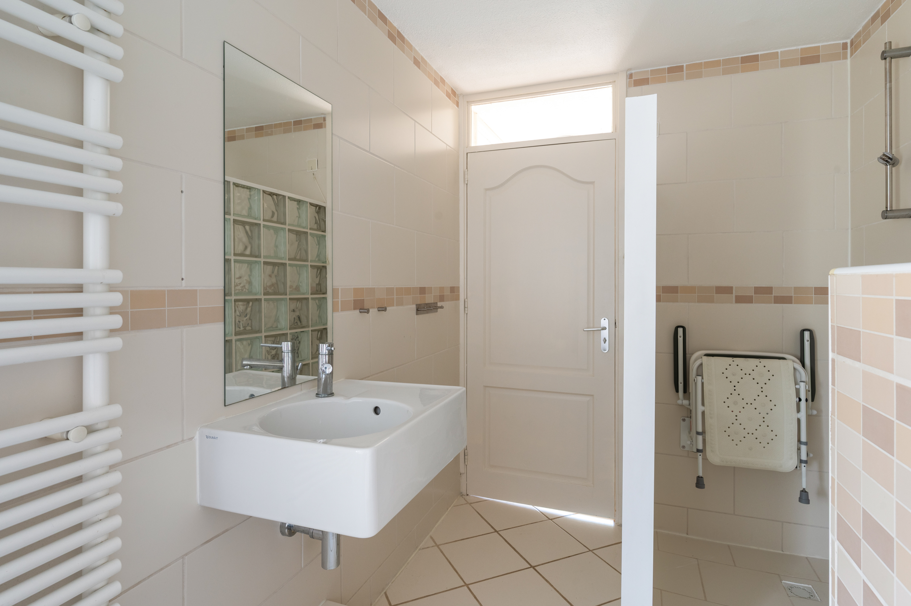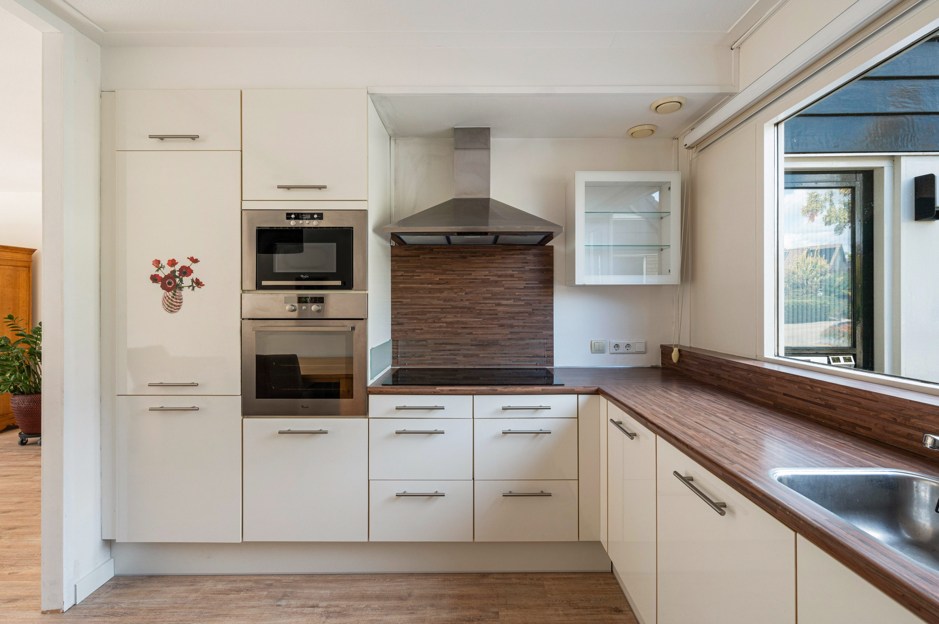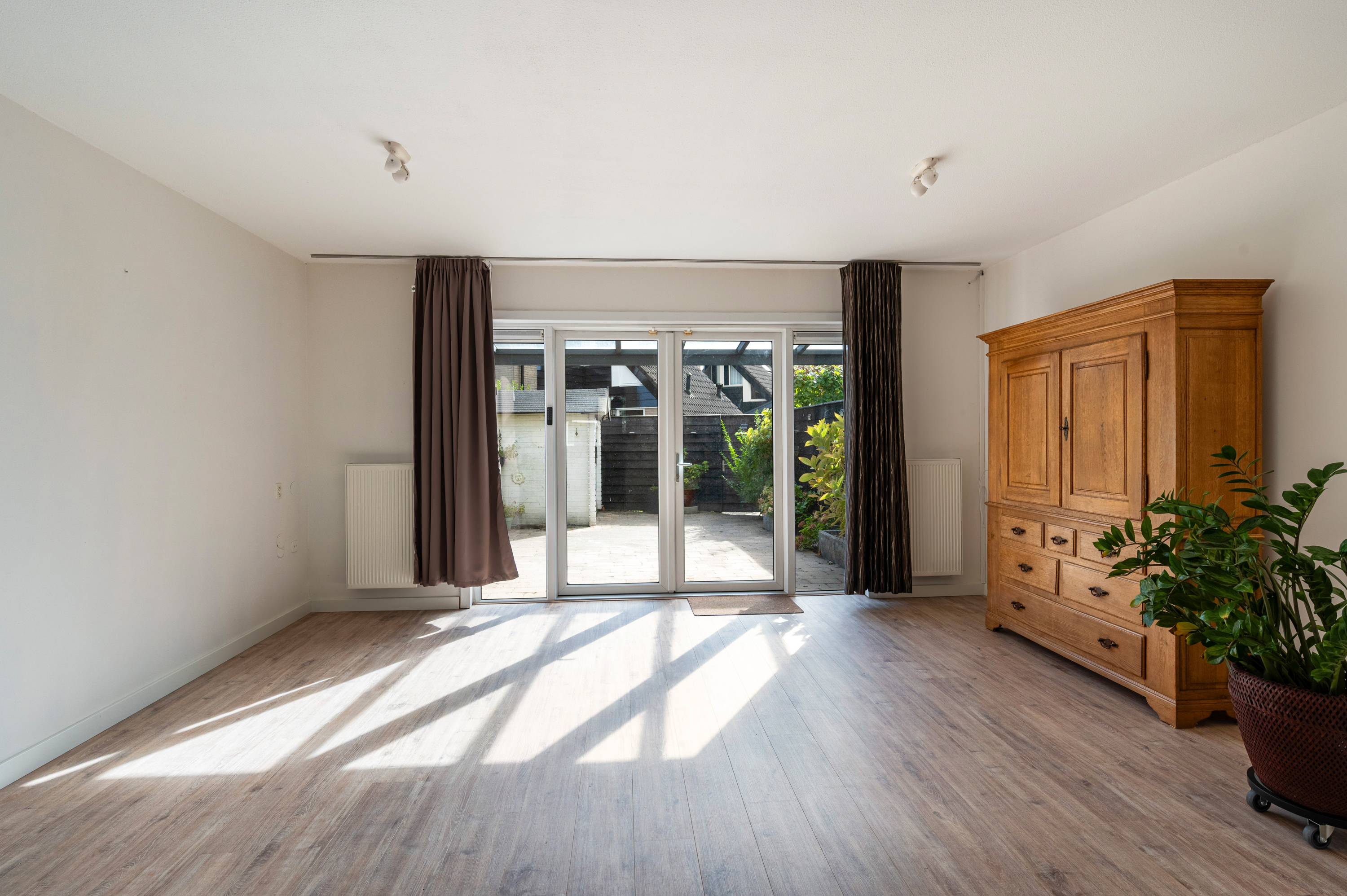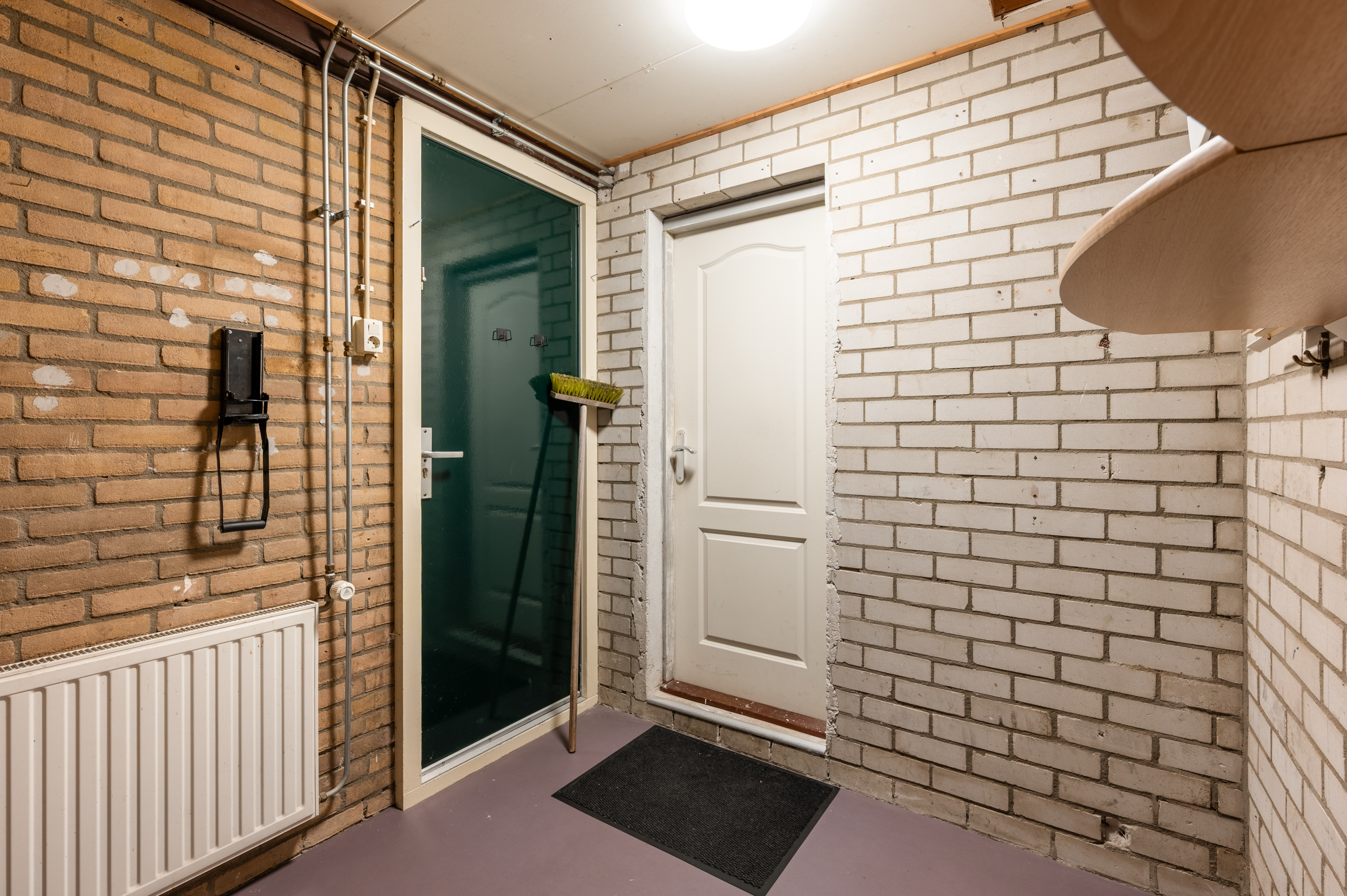 Entree hal welke toegang geeft tot de meterkast, de garderoberuimte, de inpandige berging, het toilet met handwasbakje en de trapopgang naar de eerste verdieping. Via een glasdeur toegang tot de woonkamer. De gezellige, tuingerichte woonkamer is netjes afgewerkt en is voorzien van een trap-/bergkast, stucwerkwanden en geeft toegang tot de zonnige achtertuin via openslaande tuindeuren. Aansluitend een in 2023 geplaatste aluminium overkapping voorzien van zonwering en verlichting. De keuken is gelegen aan de voorzijde van de woning en is voorzien van een kunststof keukenblok in hoekopstelling met o.a. een koel-/vriescombinatie, combimagnetron, inductiekookplaat, afzuigkap en een in 2025 geplaatste vaatwasmachine. Verder nog een kickspace (verwarming), een close-in-boiler, lades en kastruimte. De gehele begane grond is voorzien van een nieuwe, in 2025 gelegde laminaatvloer.