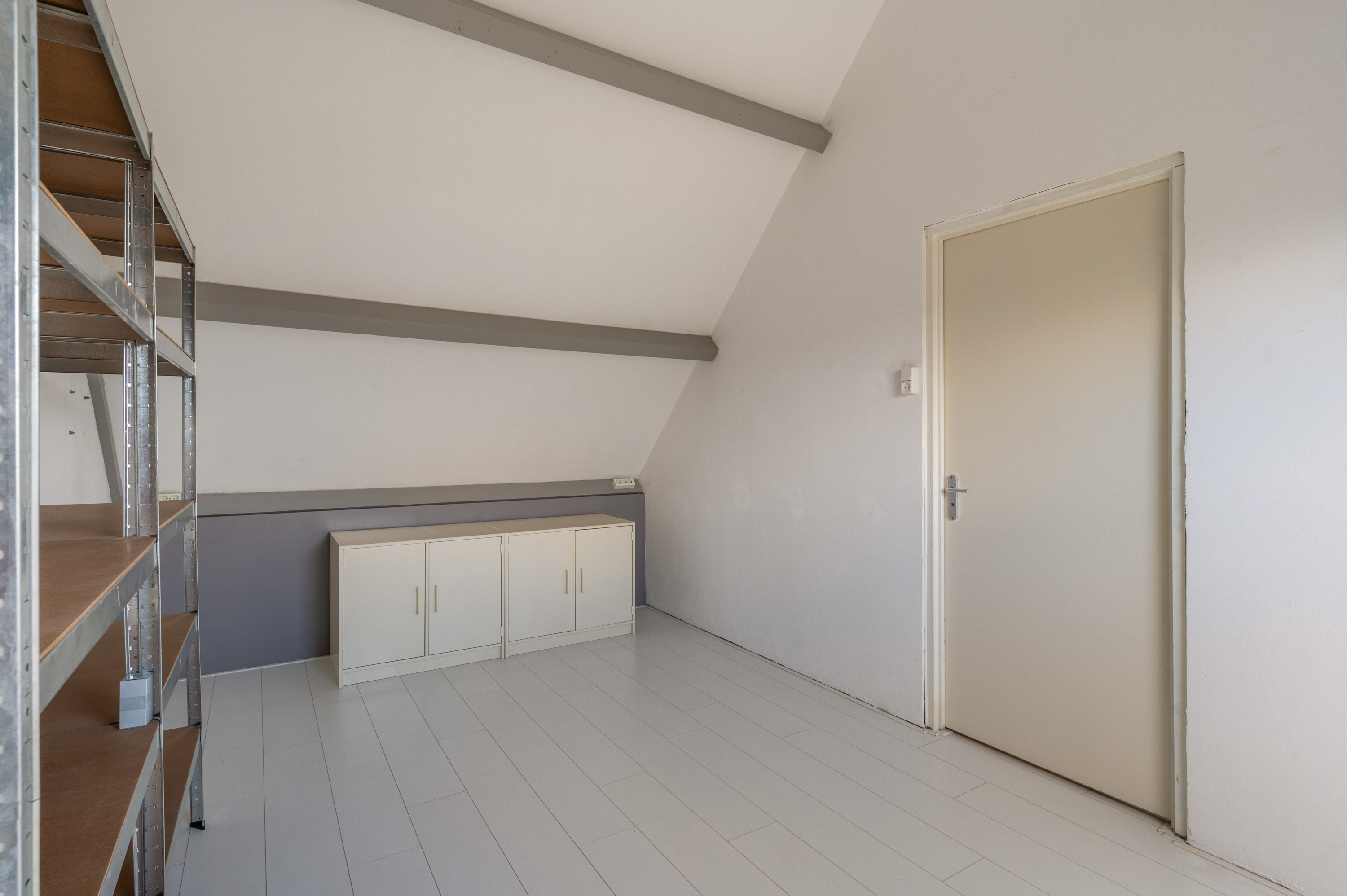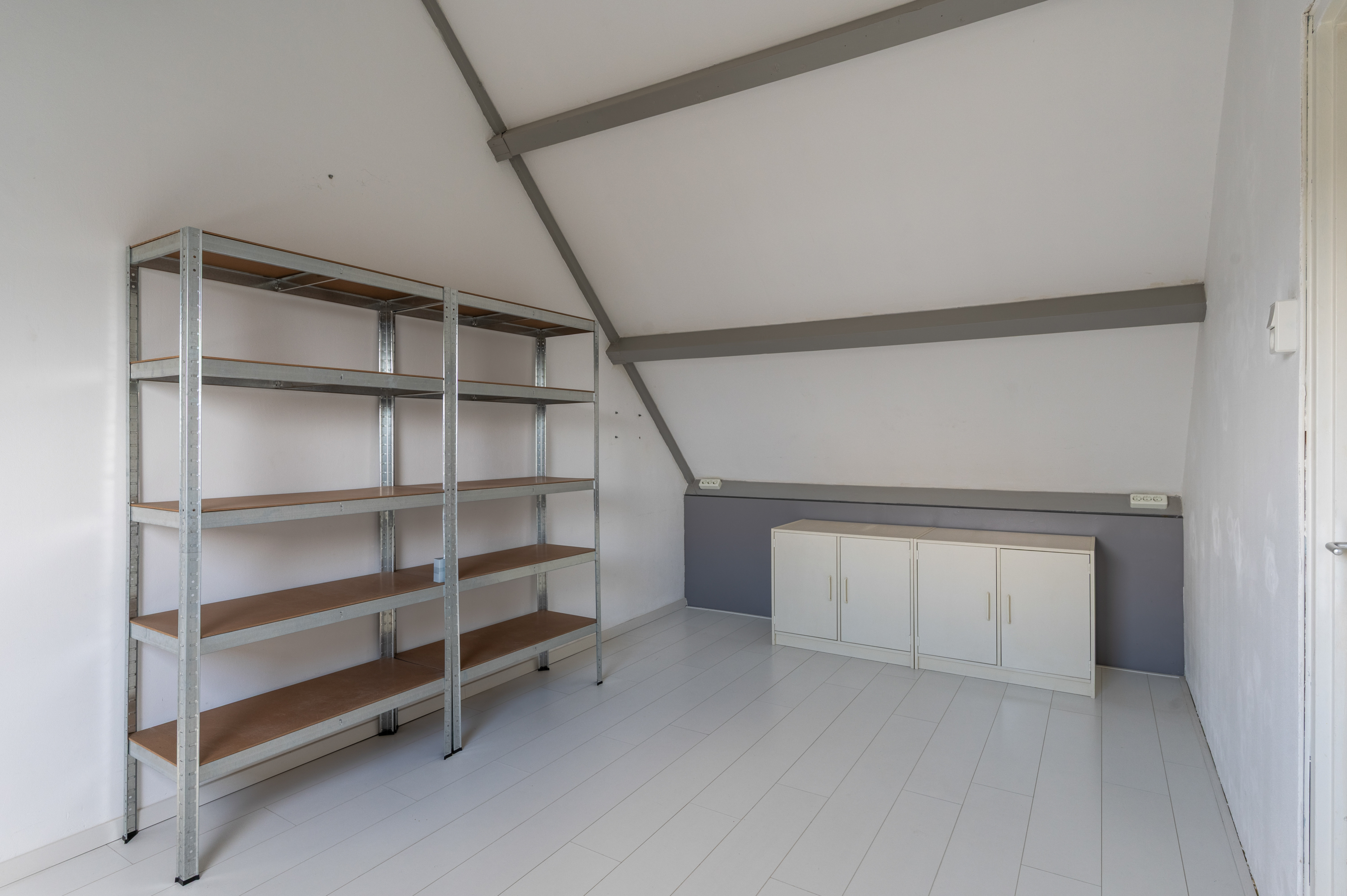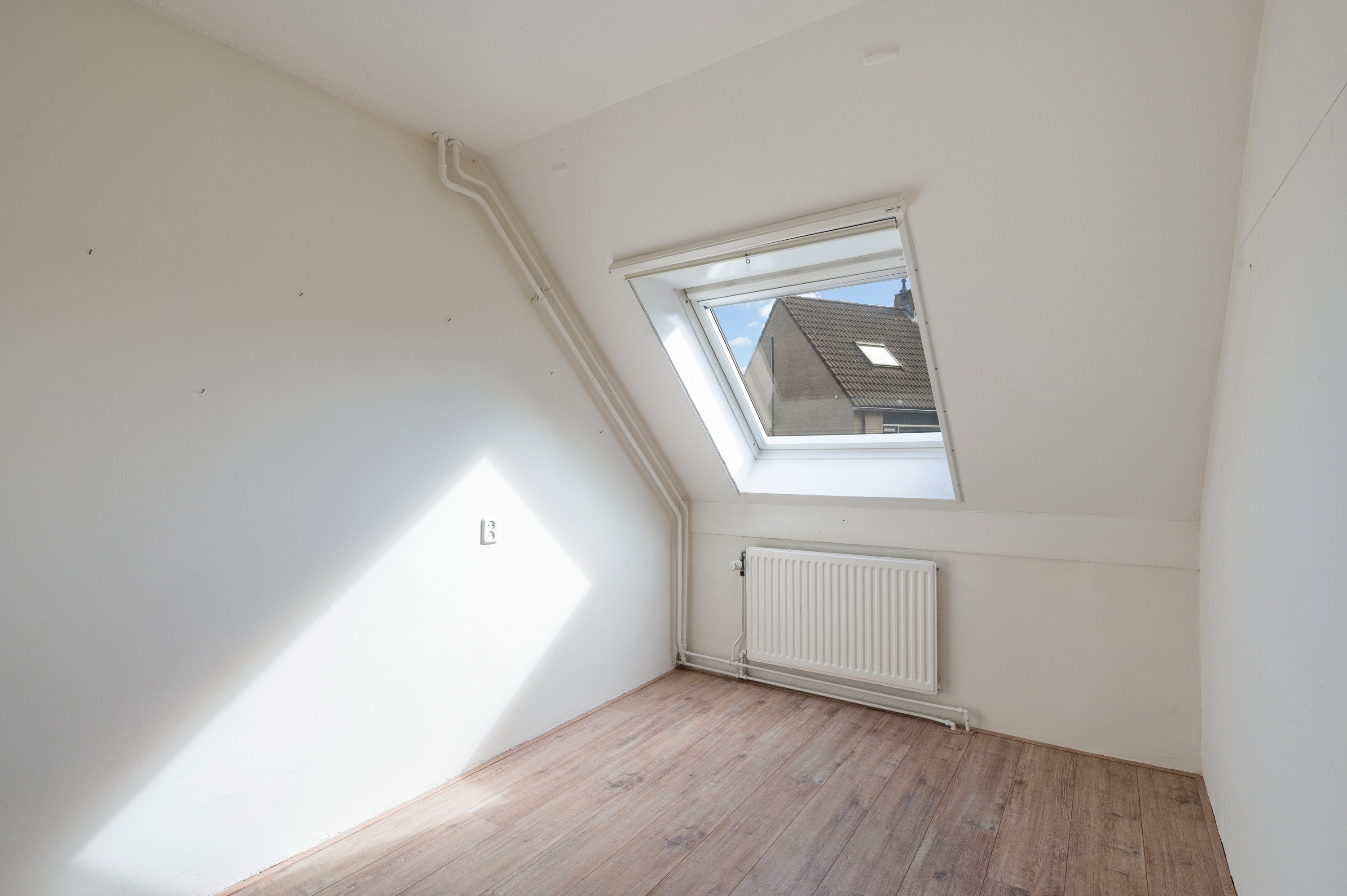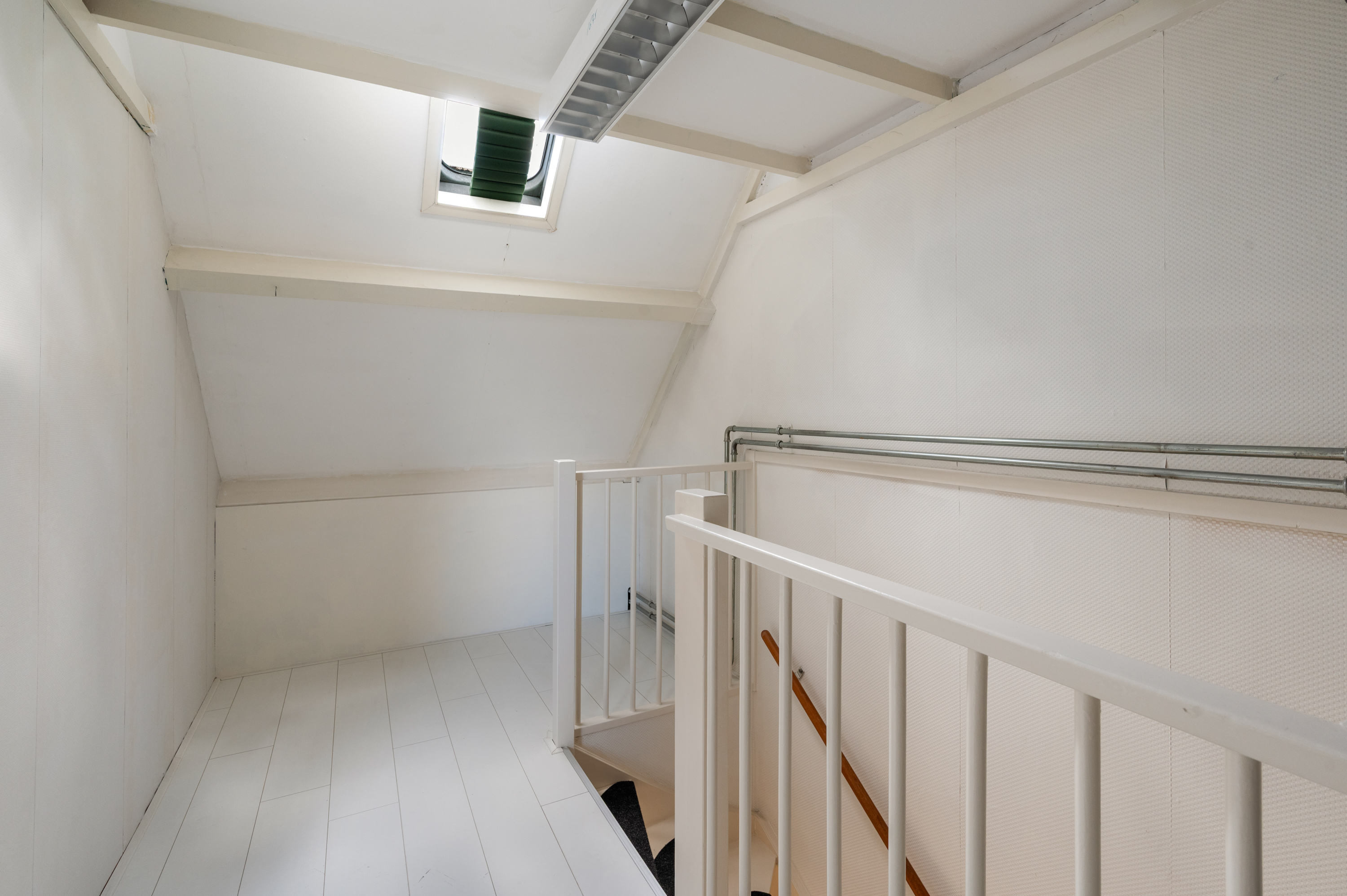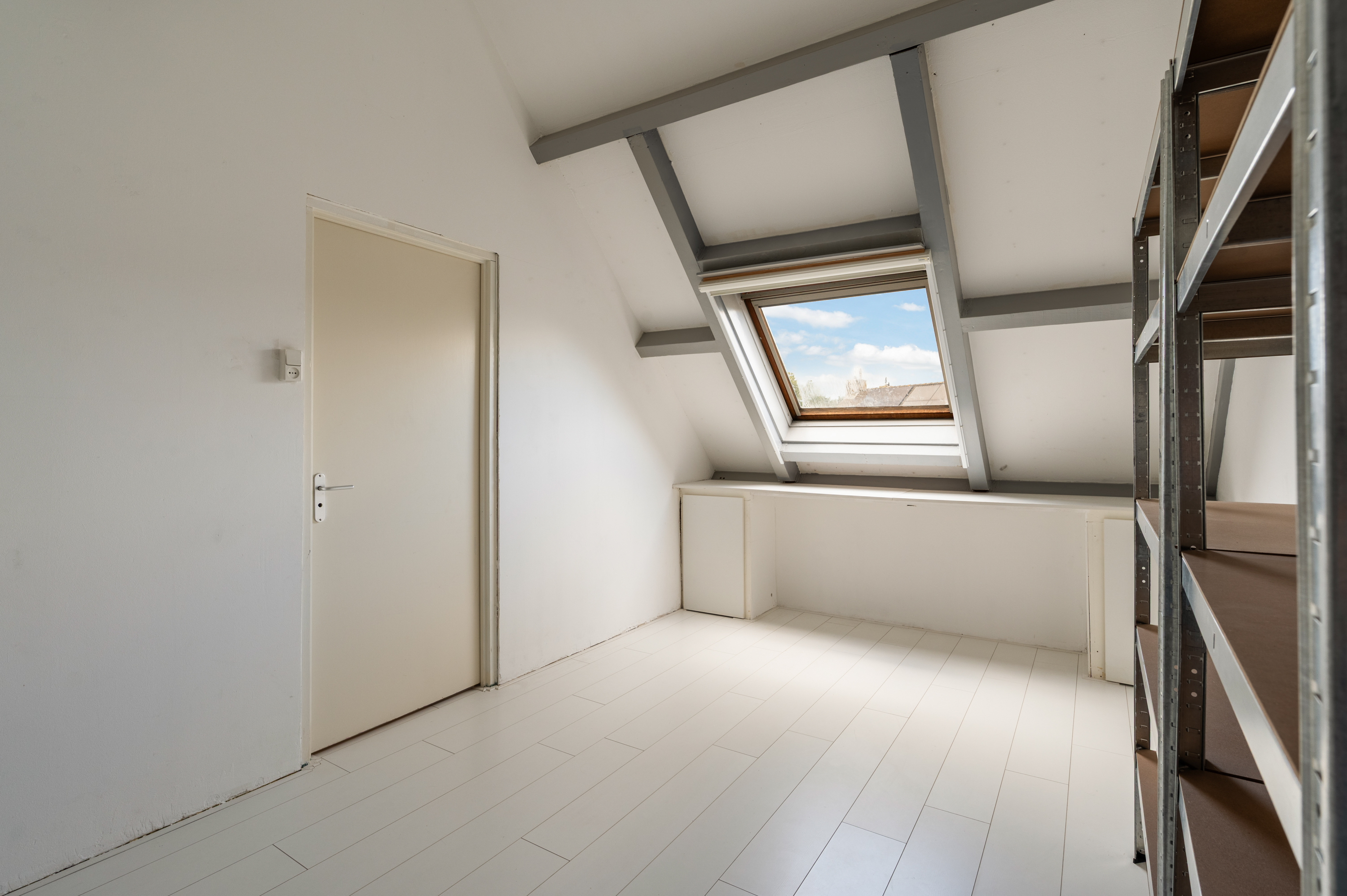Royale overloop welke is voorzien van een 4 pans dakraam, cv-combiketel “Remeha” bj. 2010, mech.afzuiging en de wasmachine/droger aansluiting. Vanaf de overloop toegang tot een kleine bergvliering. Vierde slaap-/hobbykamer voorzien van een Velux dakraam en diverse bergruimte. De overloop en slaapkamer zijn voorzien van een lichte laminaatvloer.
