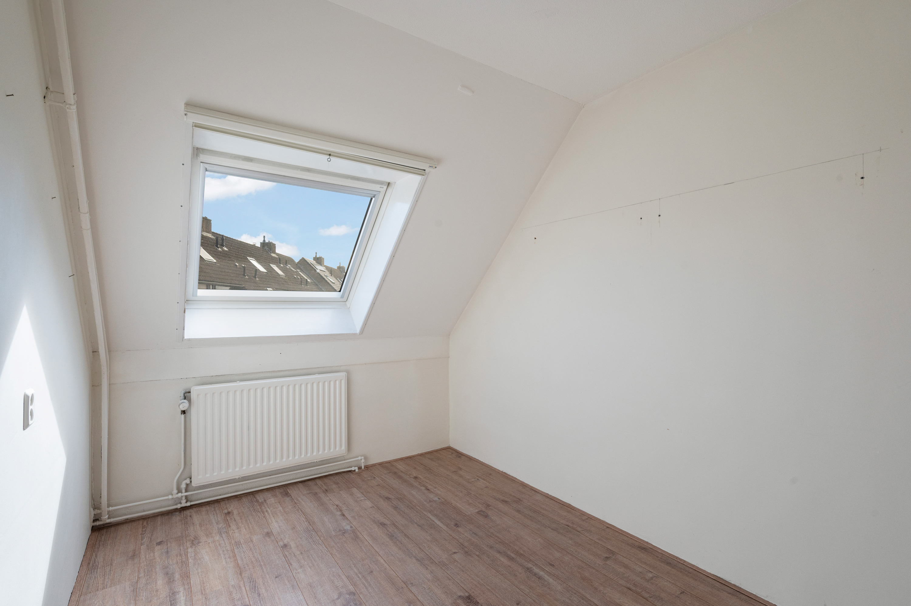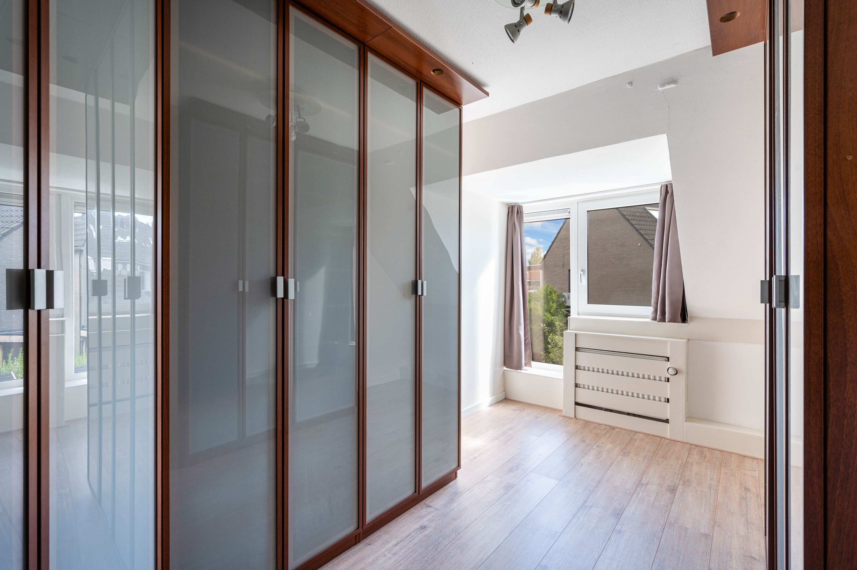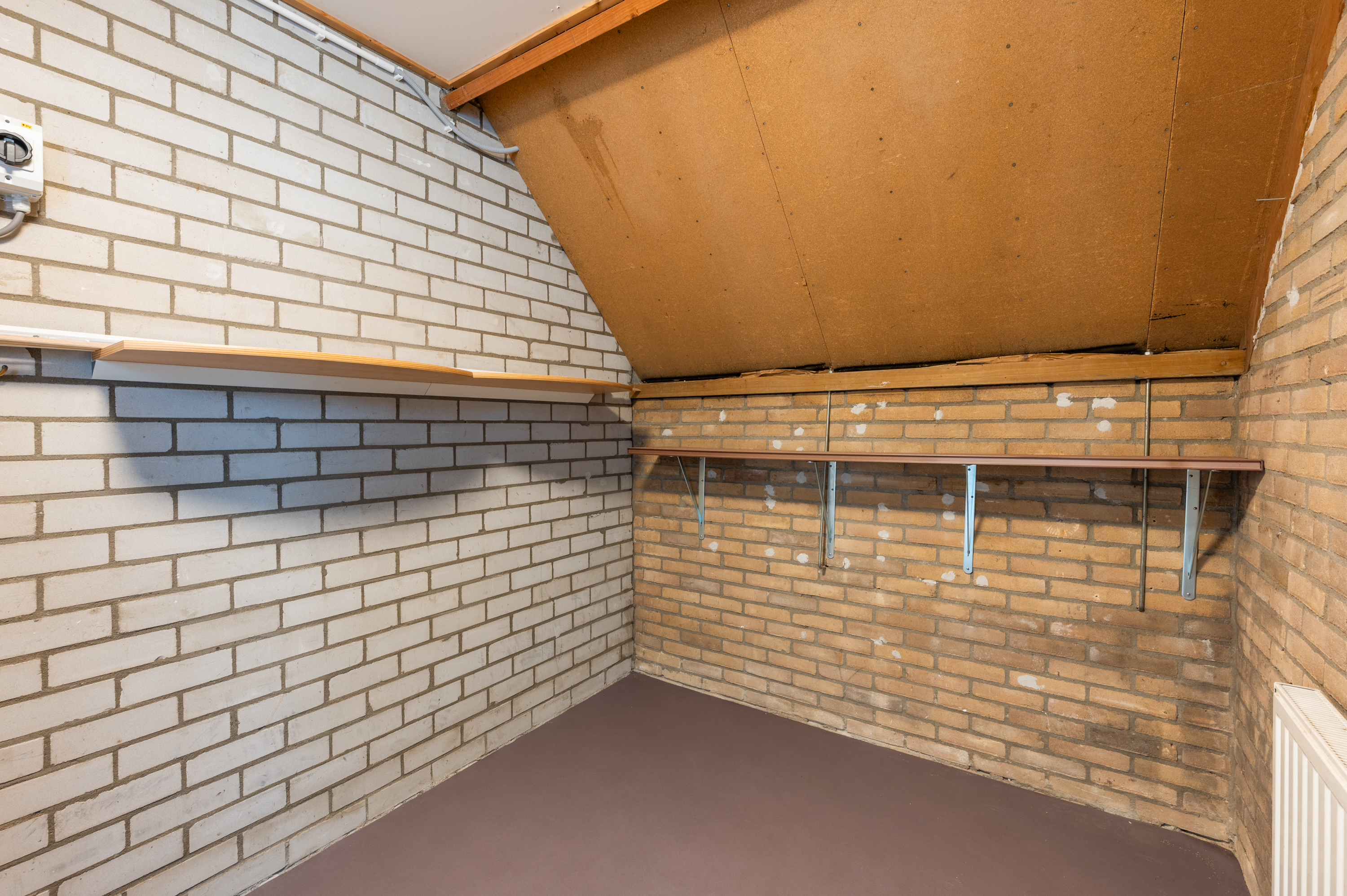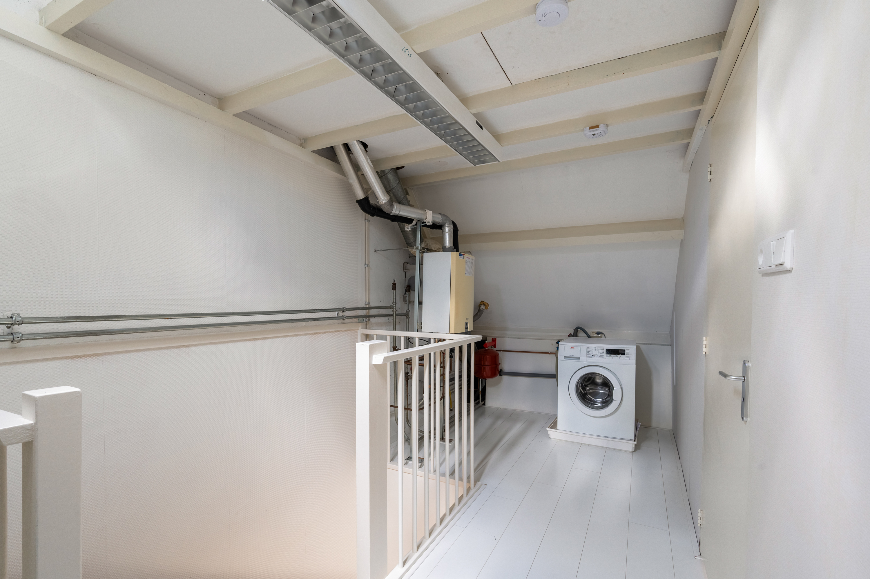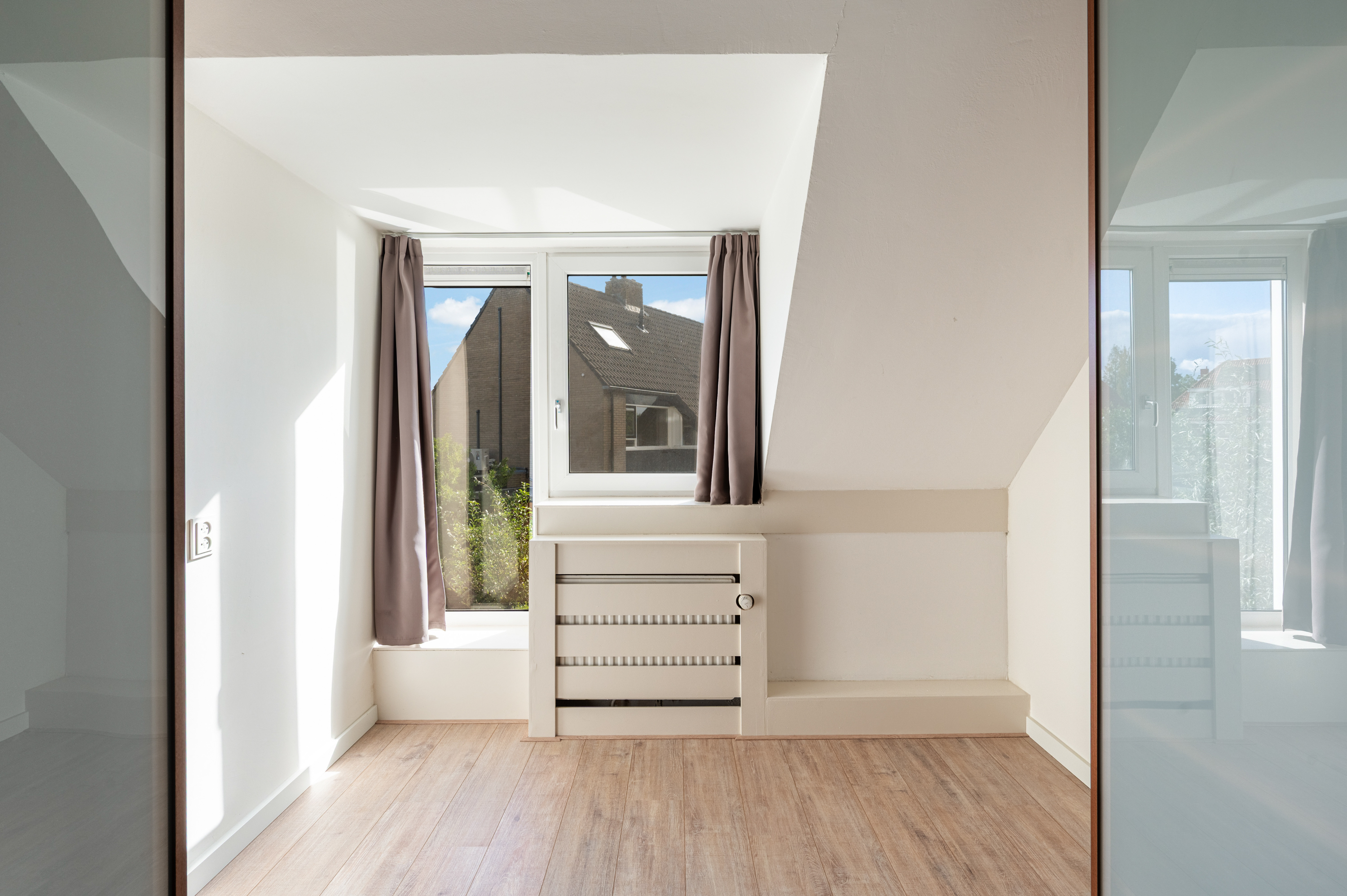 Royale overloop welke is voorzien van een 4 pans dakraam, cv-combiketel “Remeha” bj. 2010, mech.afzuiging en de wasmachine/droger aansluiting. Vanaf de overloop toegang tot een kleine bergvliering. Vierde slaap-/hobbykamer voorzien van een Velux dakraam en diverse bergruimte. De overloop en slaapkamer zijn voorzien van een lichte laminaatvloer.