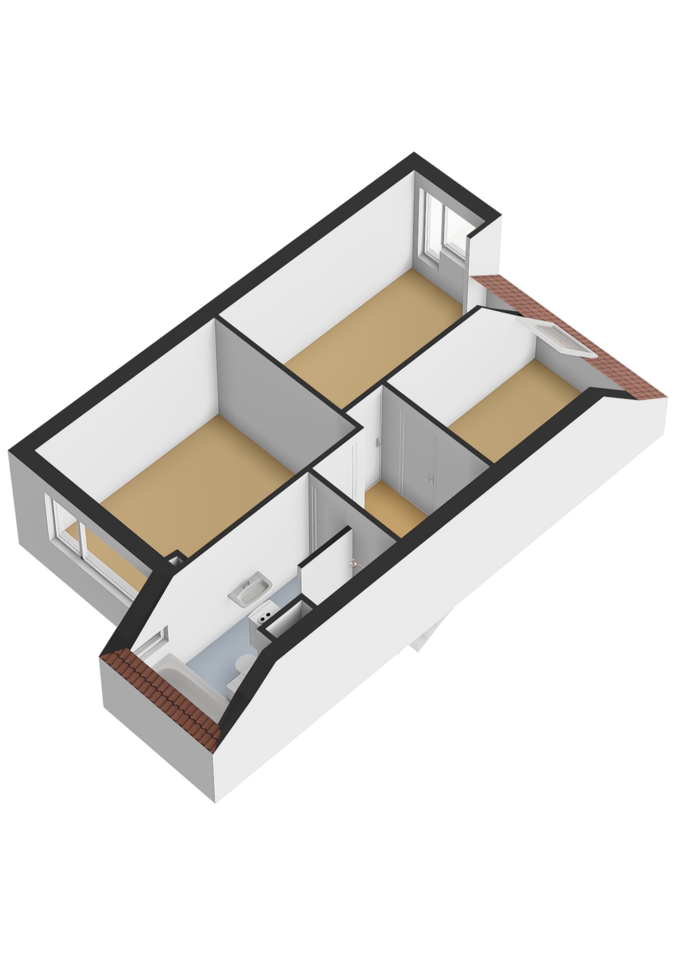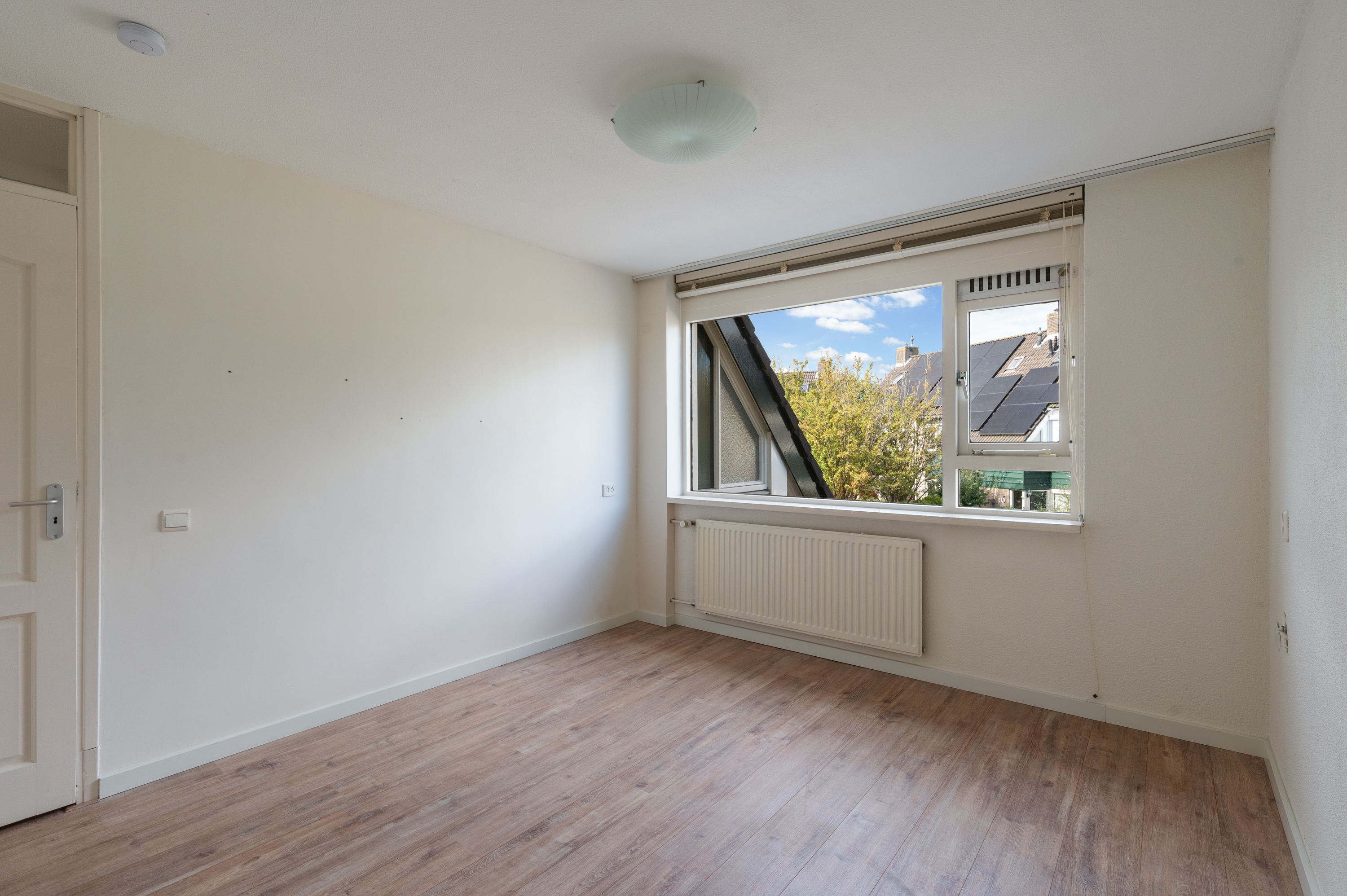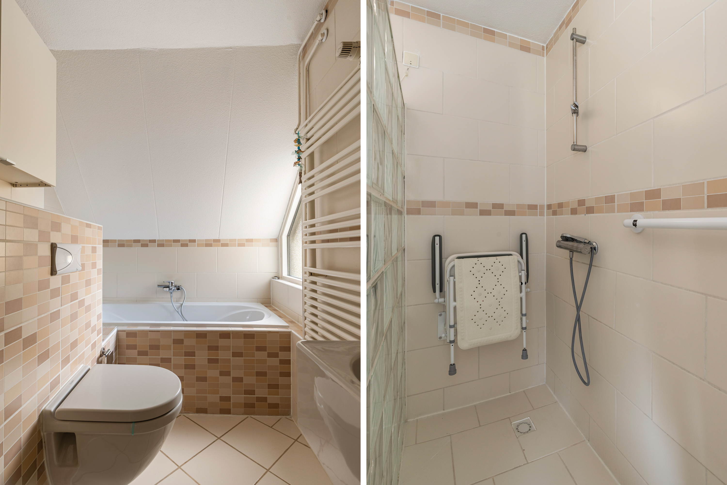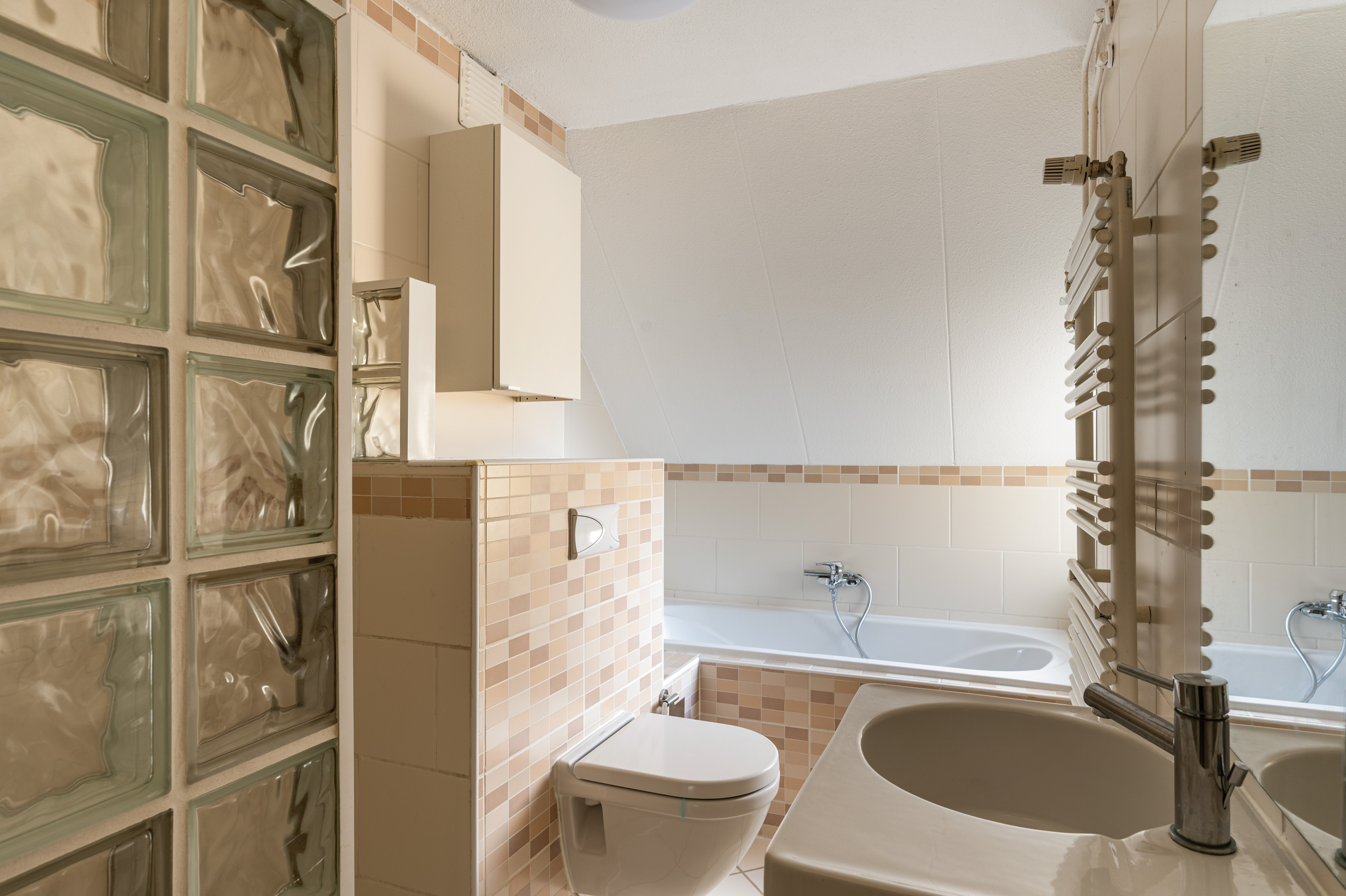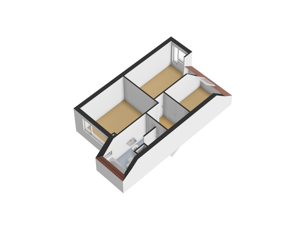 De overloop met trapopgang naar de tweede verdieping en toegang tot de drie slaapkamers en de badkamer. Twee slaapkamers aan de achterzijde waarvan 1 kamer is voorzien van een kunststof “Velux” dakraam en 1 kamer is voorzien van een kunststof dakkapel en diverse kasten. De slaapkamer aan de voorzijde heeft een rechte geveloptrek. Alle kamers zijn netjes afgewerkt en voorzien van een laminaatvloer. De badkamer is ruim te noemen en biedt dan ook voldoende plek voor een ligbad, een inloopdouche, een tweede toilet, alsmede een wastafel, een designradiator en een raam voor ventilatie en daglicht.