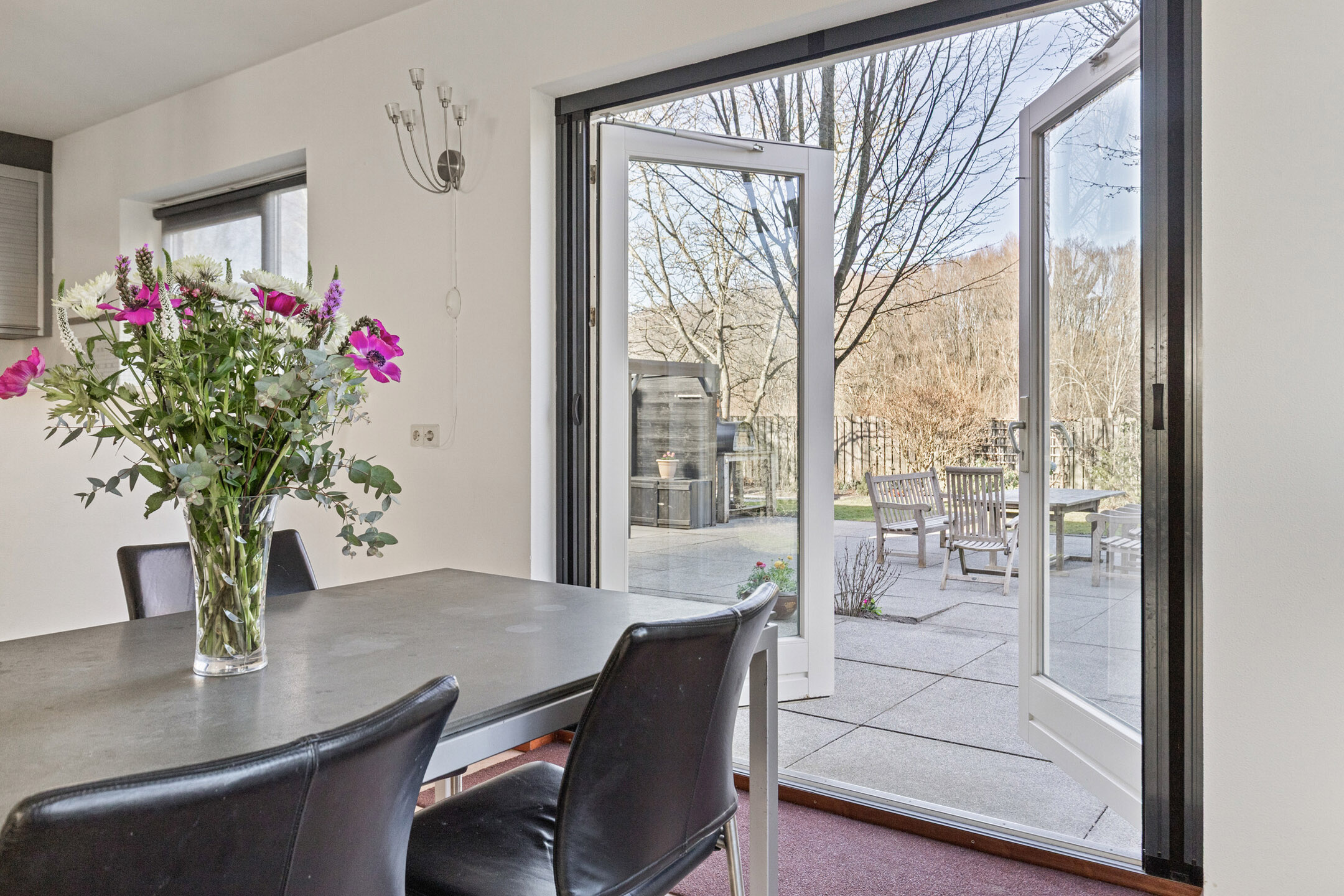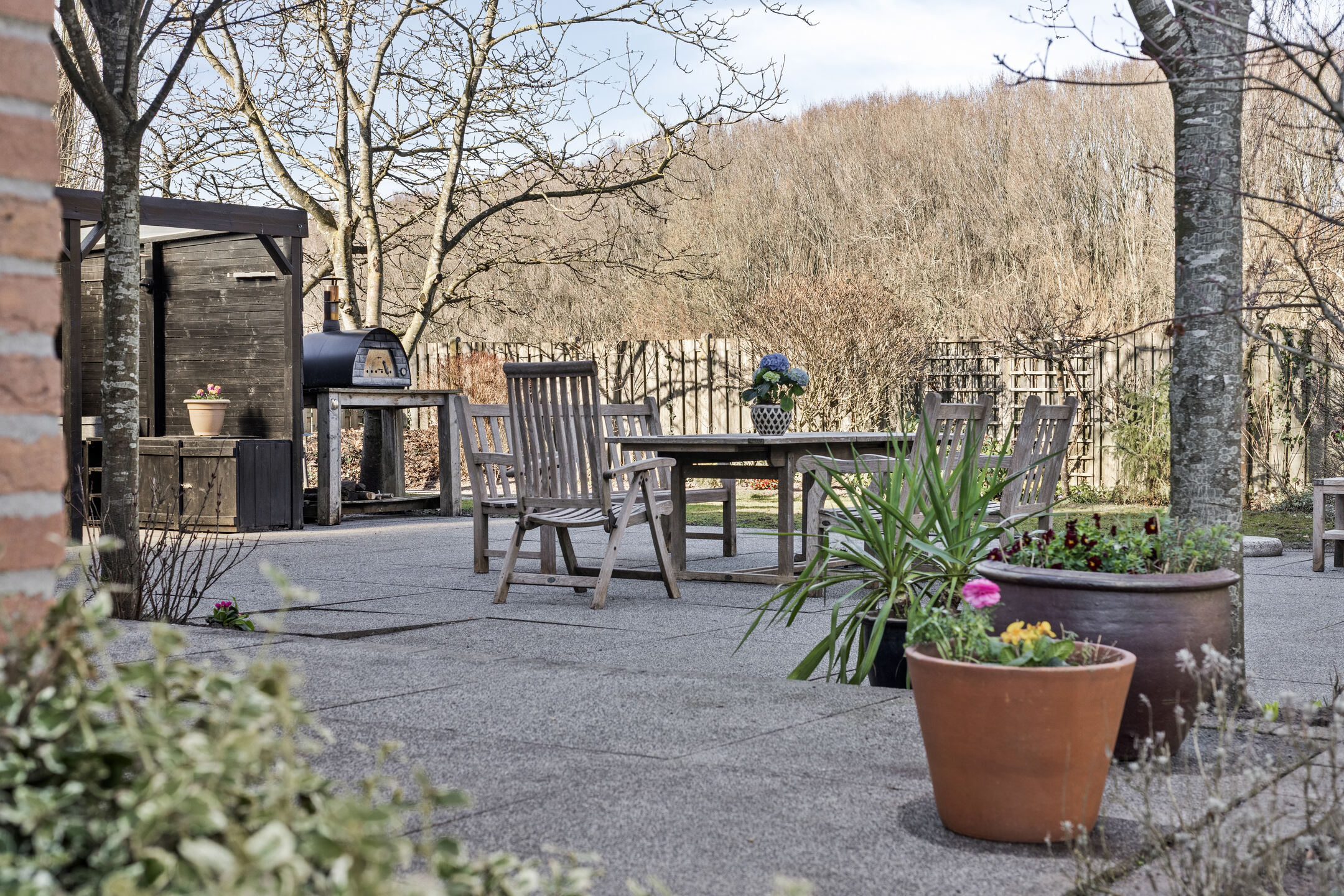 De heerlijke tuin is voorzien van volwassen groen en meerdere terrassen! Altijd een plekje in de zon of schaduw te vinden. De tuin heeft een rustgevende ligging aan het Valckesteynse bos en biedt een vrij uitzicht. Het bos is eenvoudig bereikbaar via een wandelpad, heerlijk voor een ommetje met de hond of gewoon om even lekker een relaxte ochtendwandeling te maken.