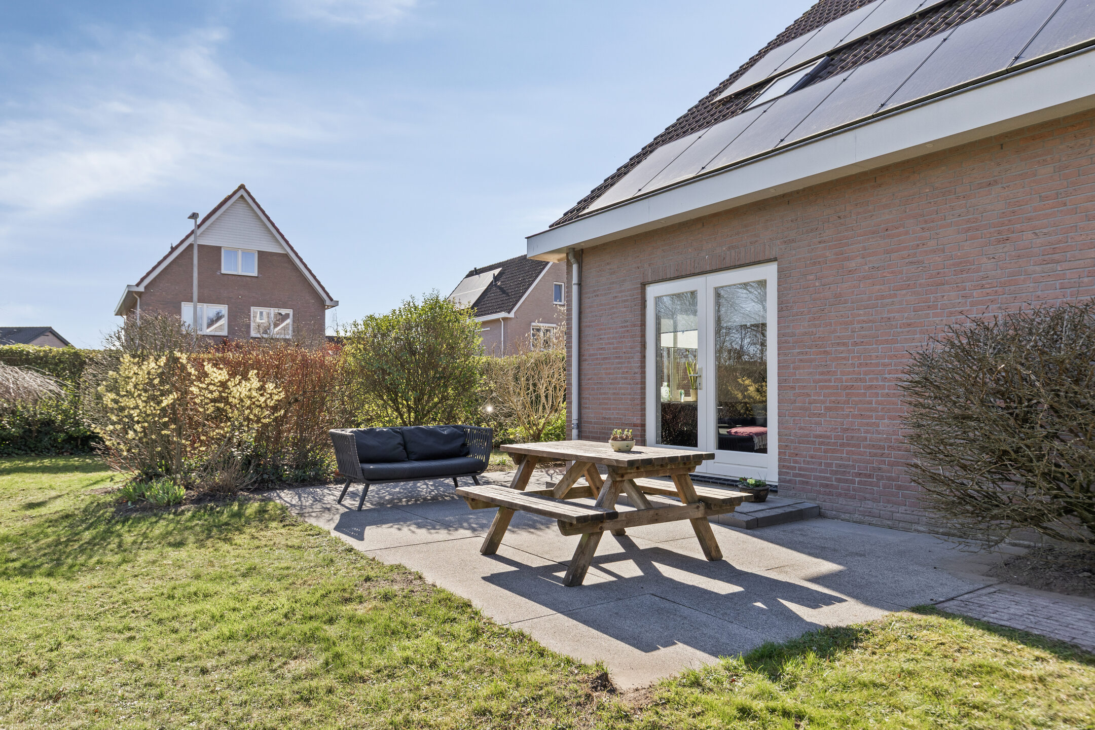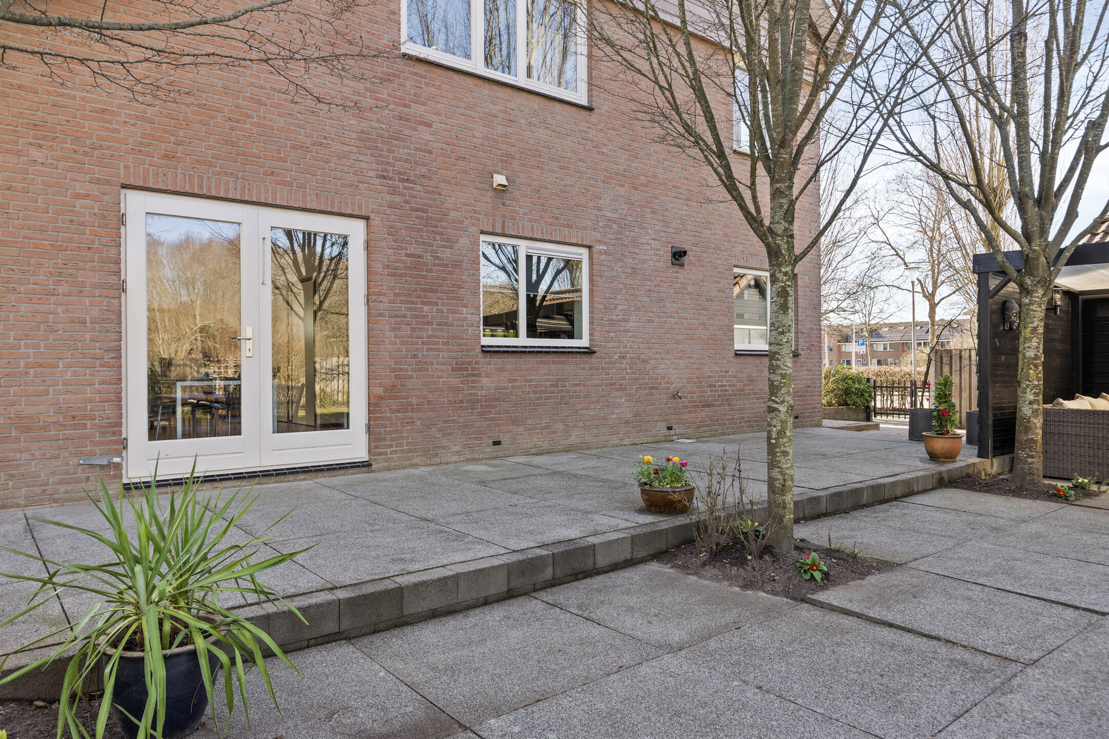 In de tuin rondom is altijd een fijn plekje te vinden! Aan de voorzijde 2 eigen privé parkeerplaatsen en voldoende openbare parkeermogelijkheid bij de woning.