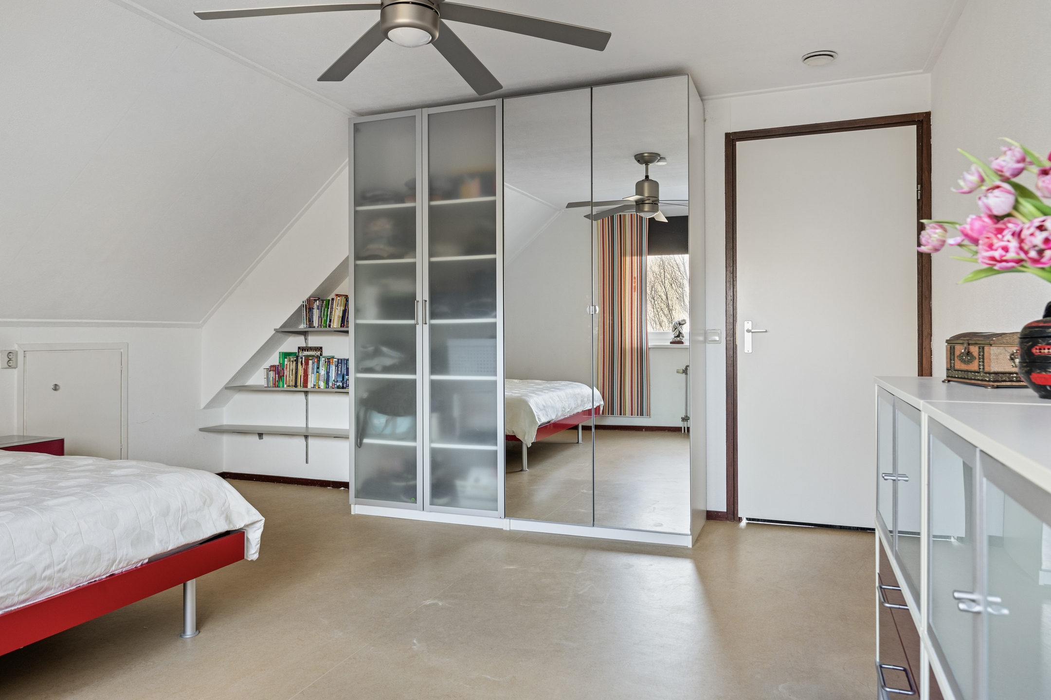 Slaapkamer 1 is gelegen aan de voorzijde van de woning, zeer royaal van opzet, bijna 30 m² groot! Als extra voorzien van 2 dakramen.