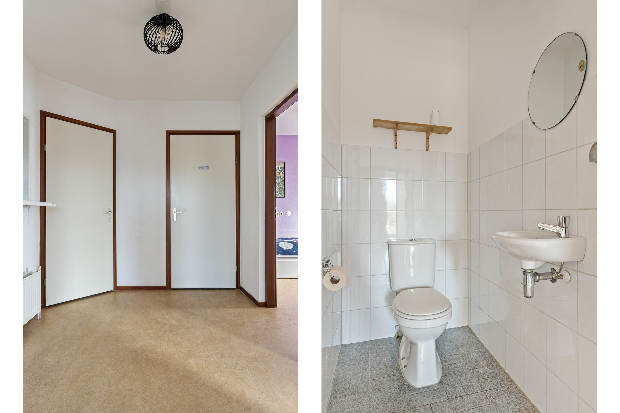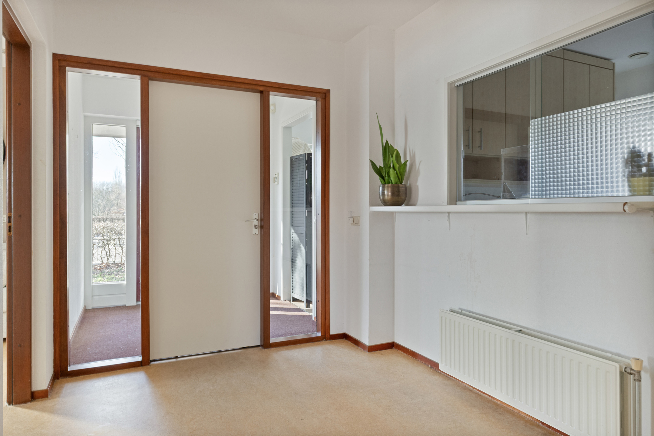 Via de voortuin, met mogelijkheid parkeren eigen erf, toegang tot de woning. Entree ruime hal / gang met open trapopgang naar de eerste verdieping, meterkast en toilet met handwasbakje. Toegang tot de woonkamer.