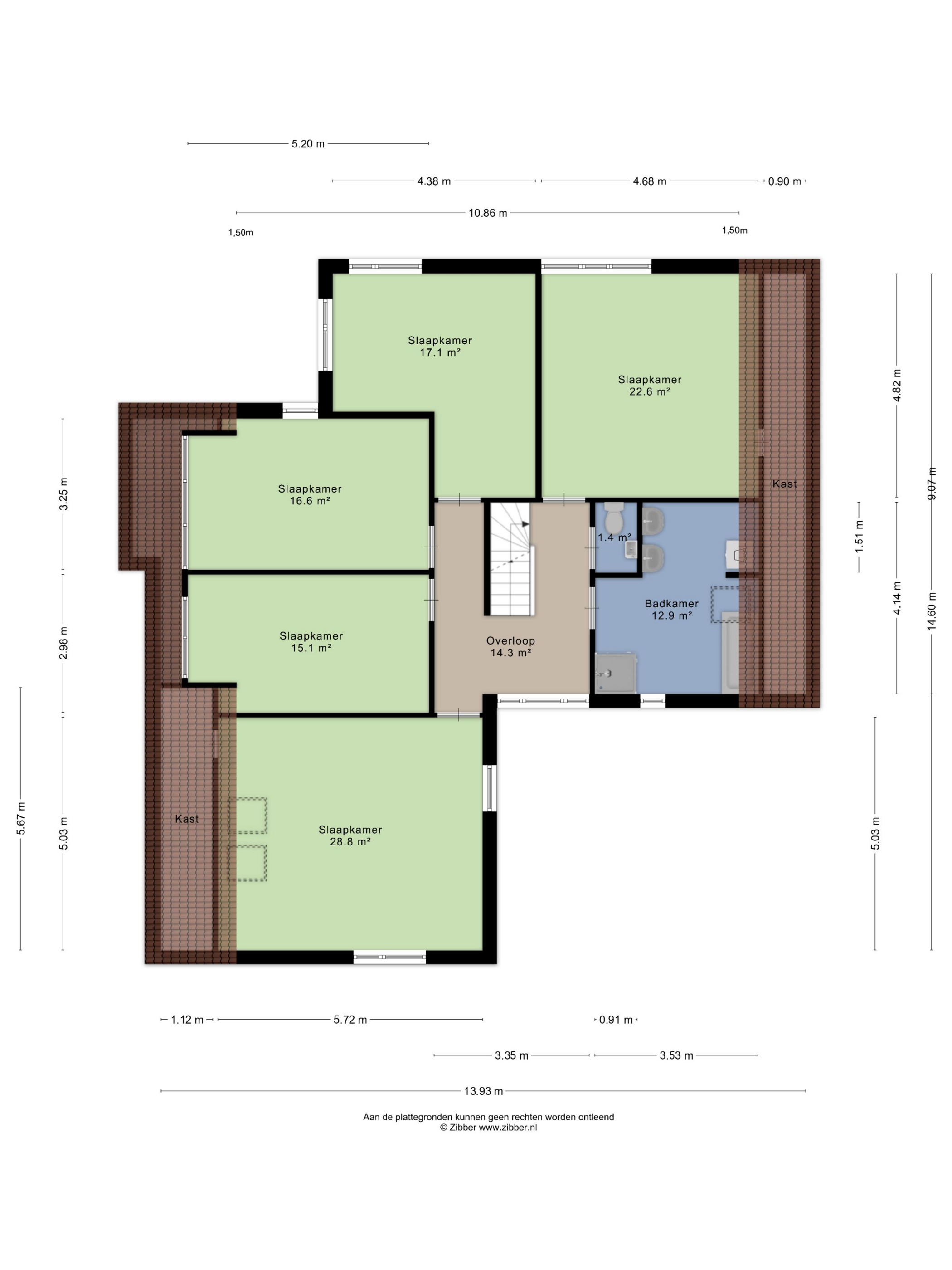 Slaapkamer 3 is gelegen aan de linkerachterzijde van de woning, 17,1 m² groot.