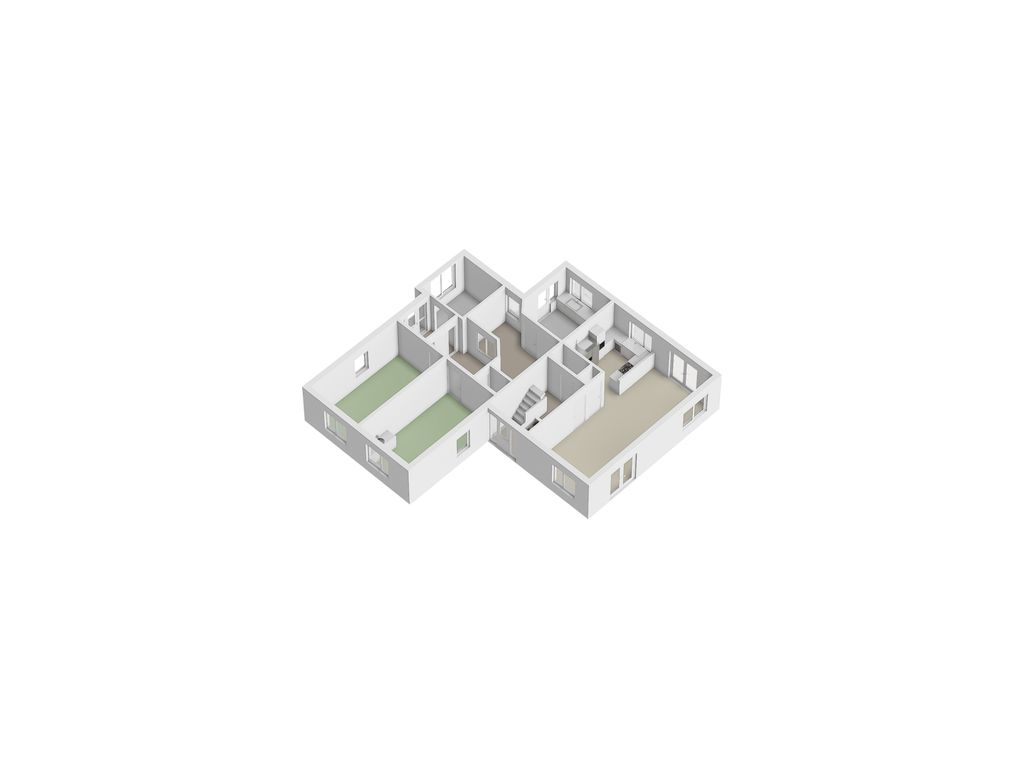Entree aan de linkerzijde van de woning. Hal met toegang tot inpandige berging / wasruimte. Centrale gang / hobbyruimte (in 2 gedeeltes) met toegang tot 2 kamers met kitchenette en separaat toilet met handwasbakje. Toegang tot de bijkeuken van de woning. Beide kamers zijn circa 20 m² groot!