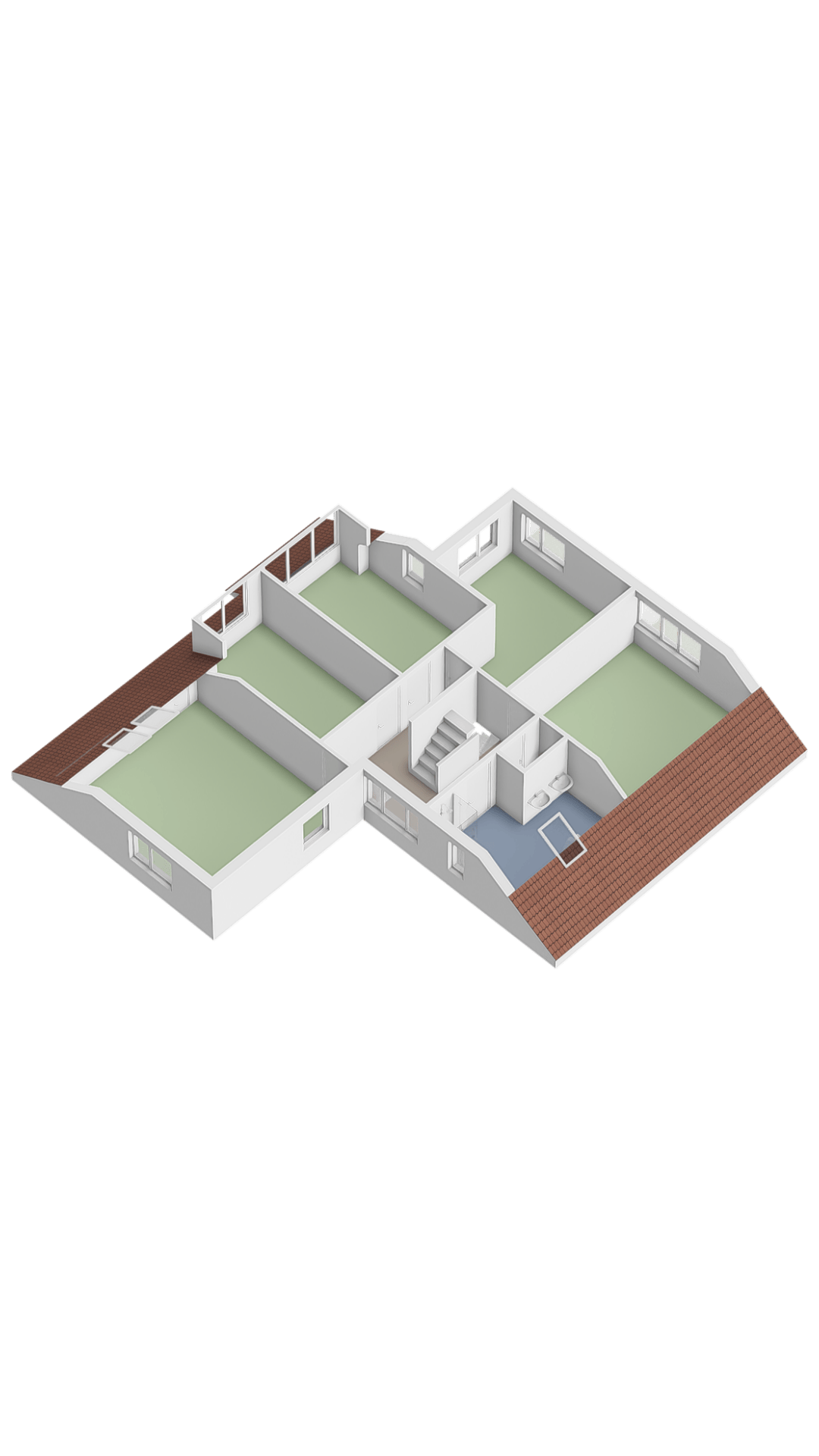 Slaapkamer 5 is eveneens gelegen aan de linkerzijde van de woning, 15,1 m² groot, voorzien van dakkapel.