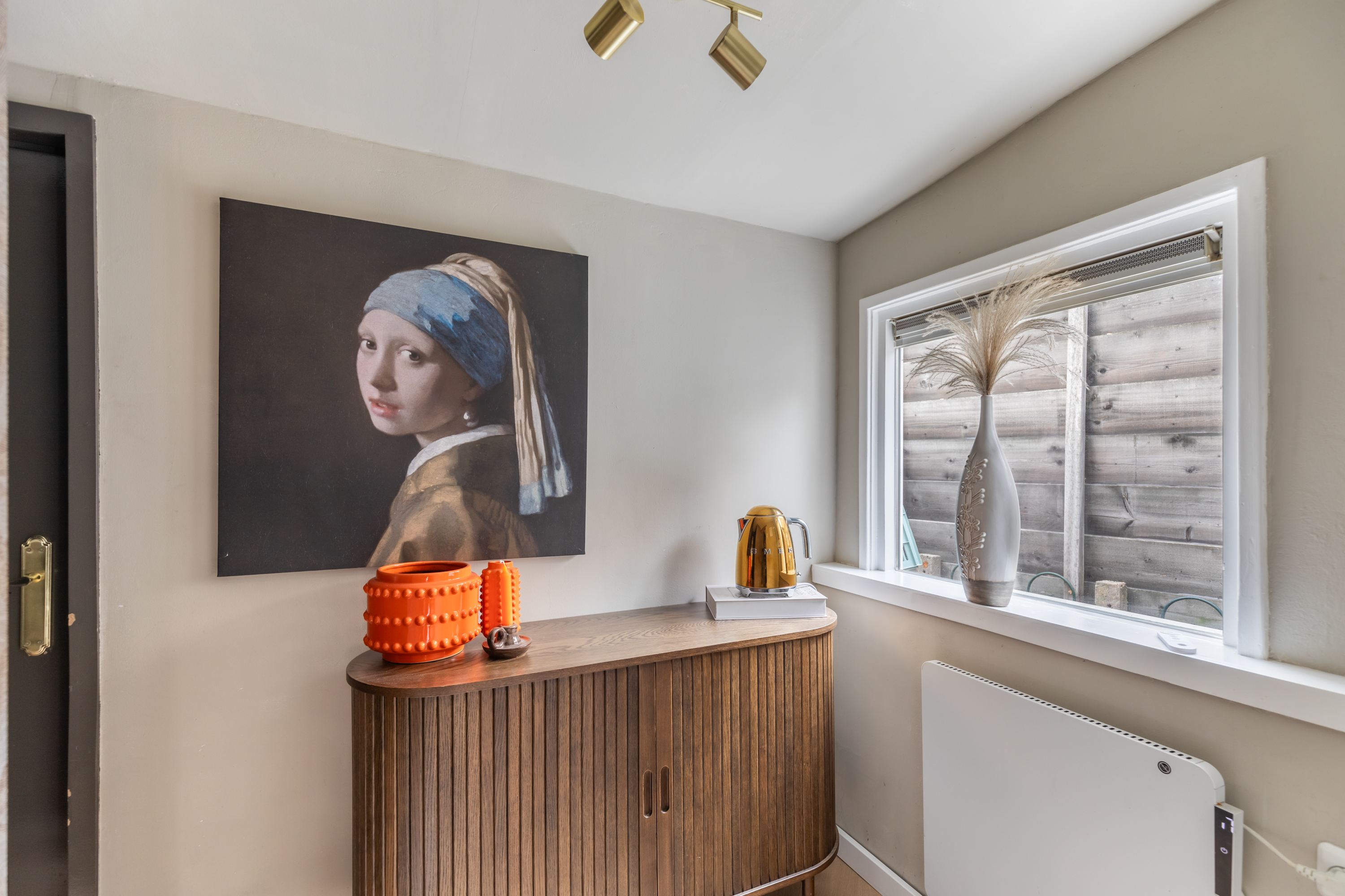 De entree hal/gang geeft toegang tot de woonkamer en de badkamer. De omvormer van de zonnepanelen is hier geplaatst.