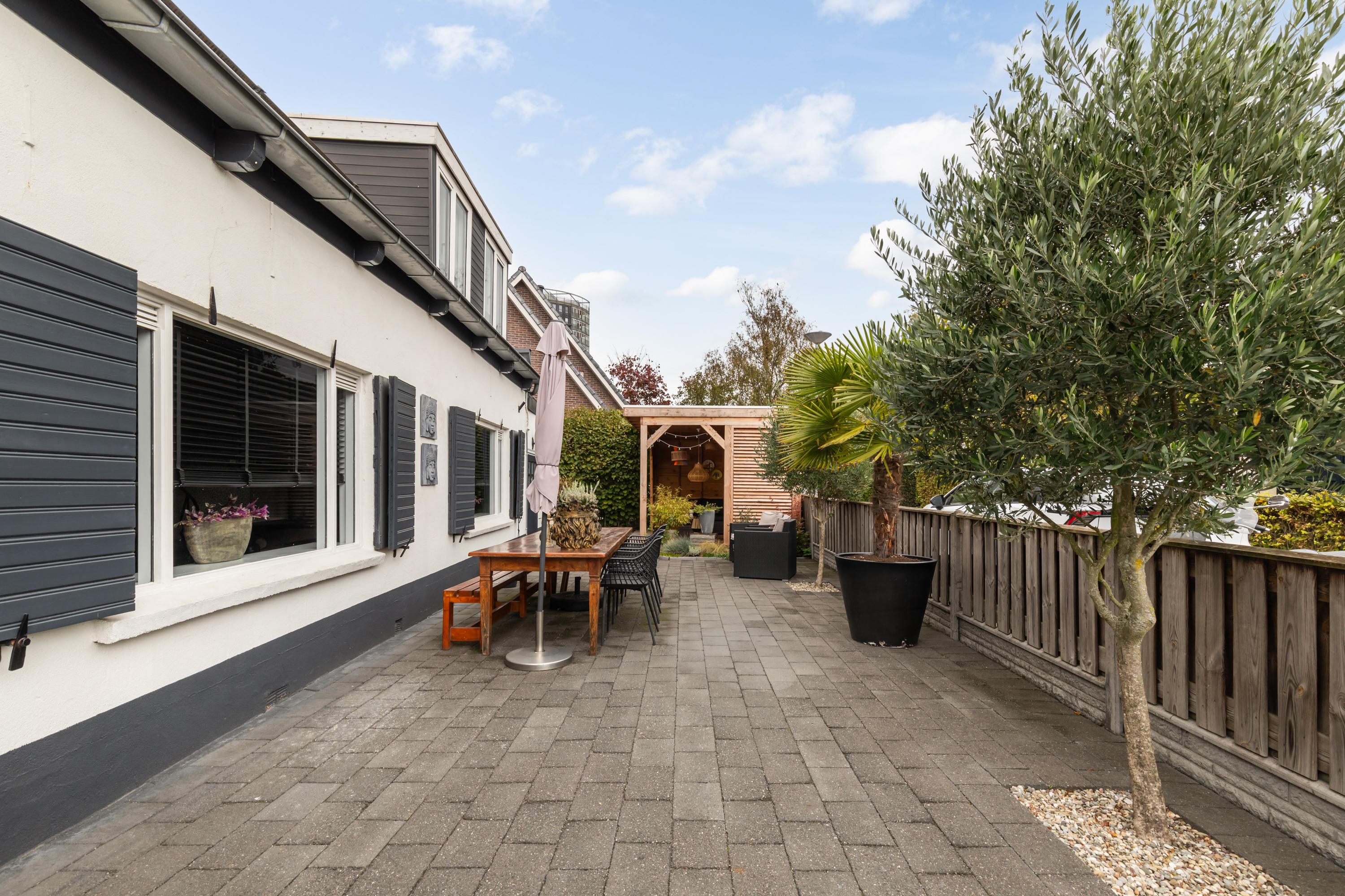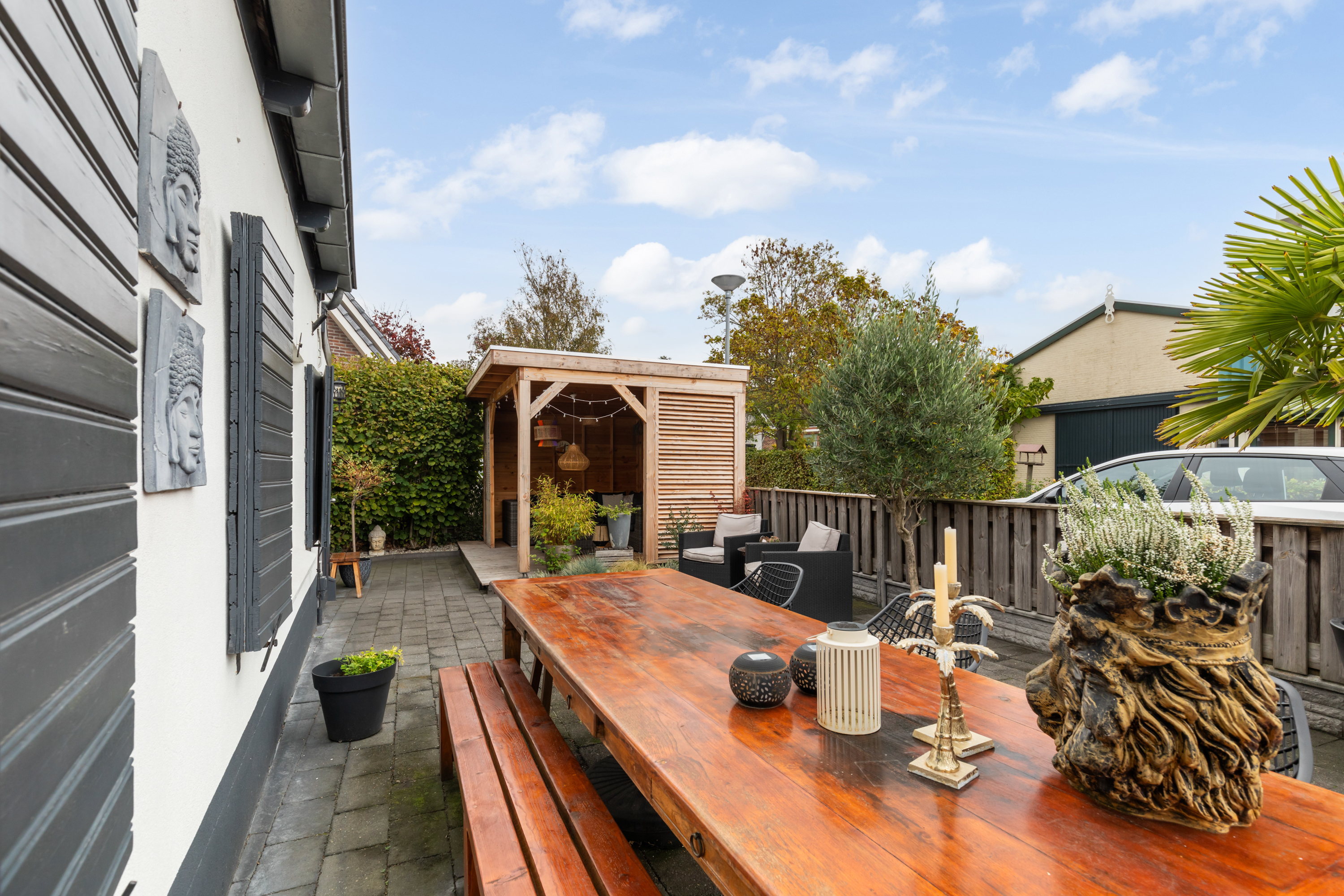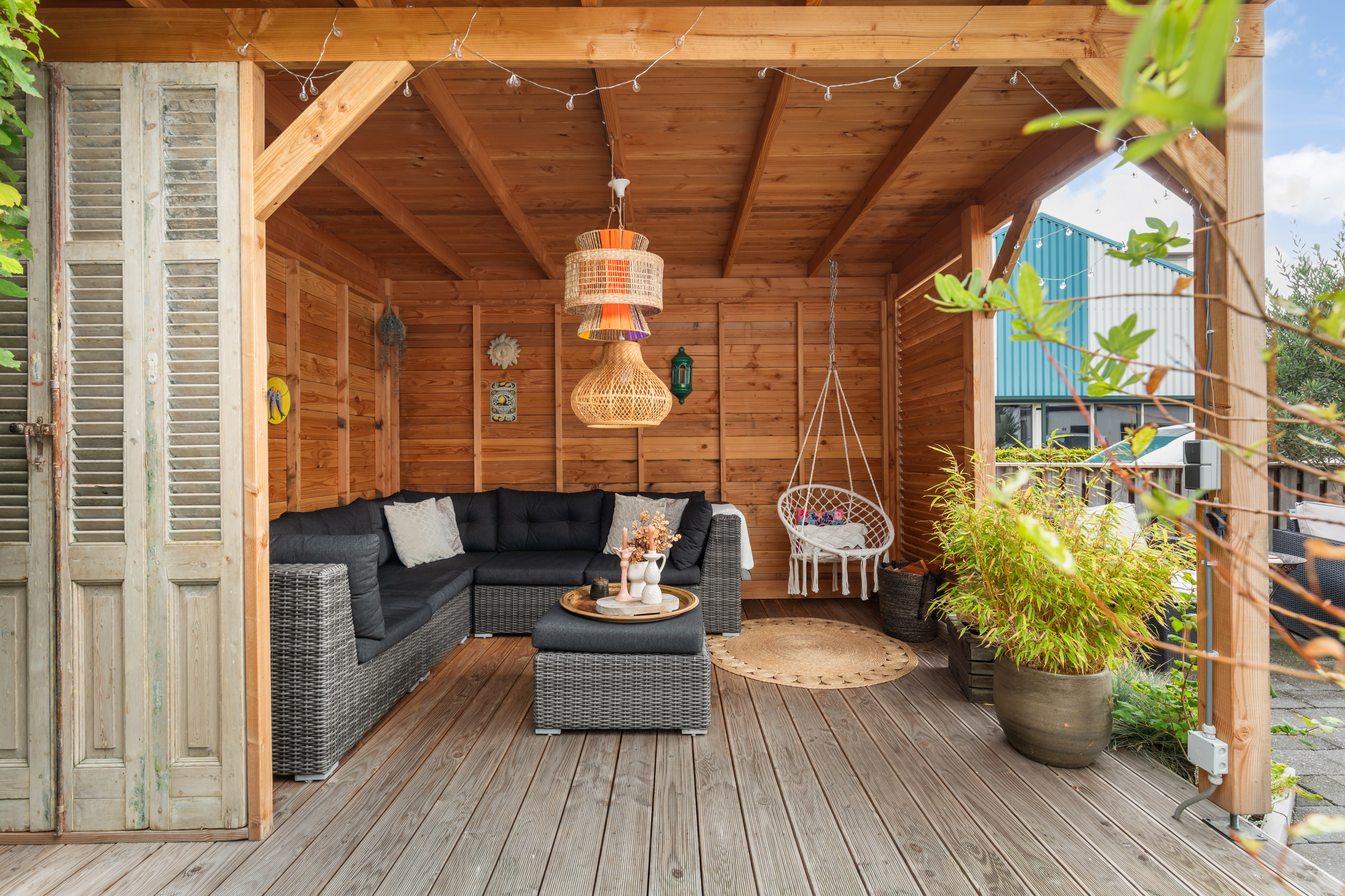 De overkapping aan de voorzijde is geplaatst in 2024. Een heerlijk plekje om te genieten van lange avonden!