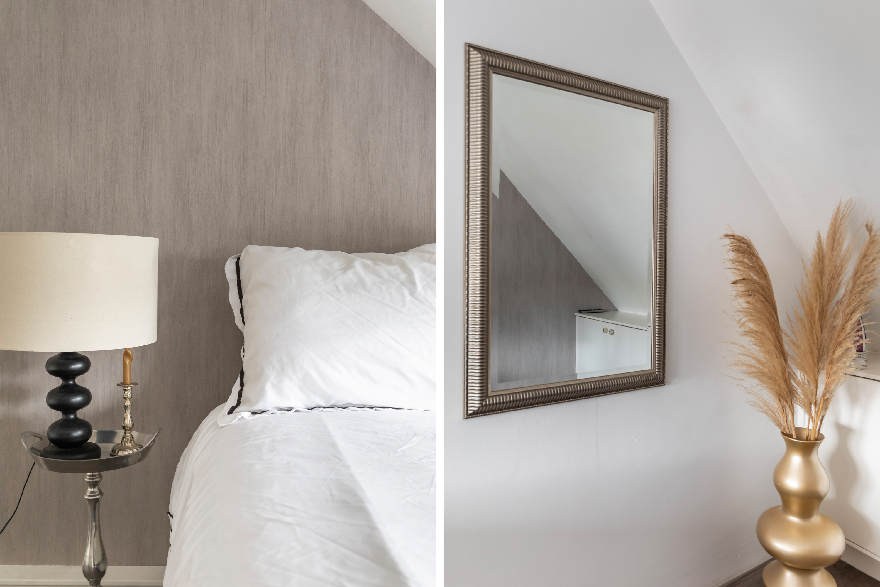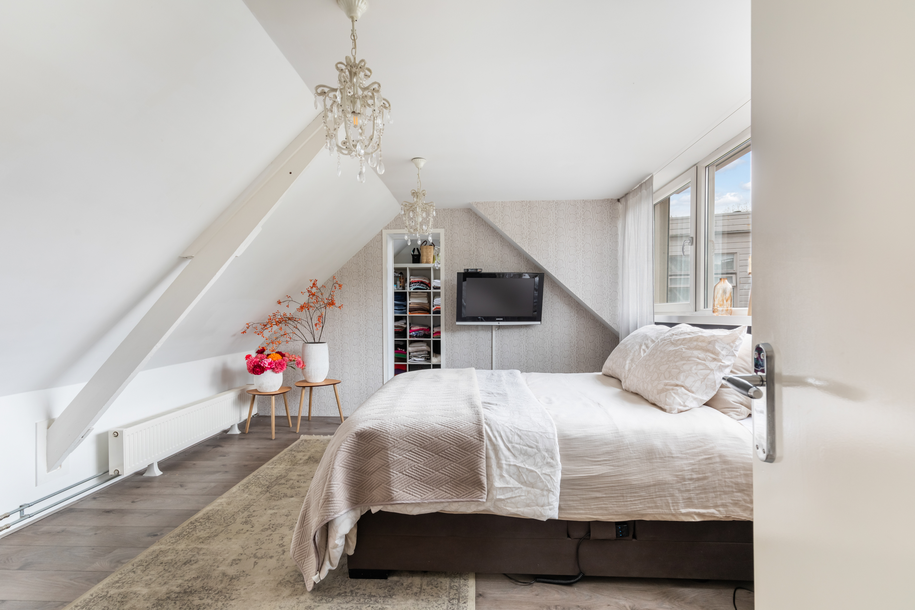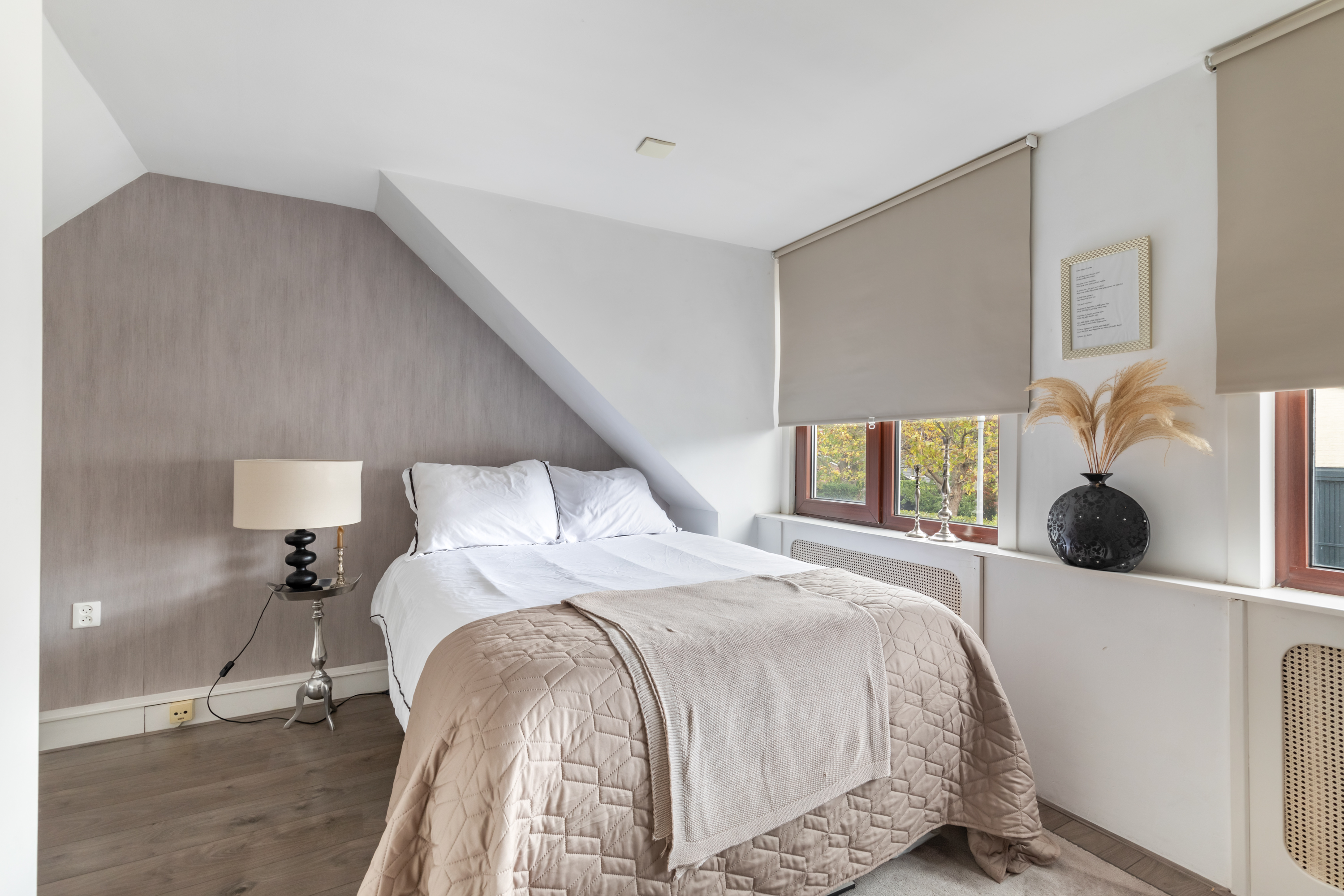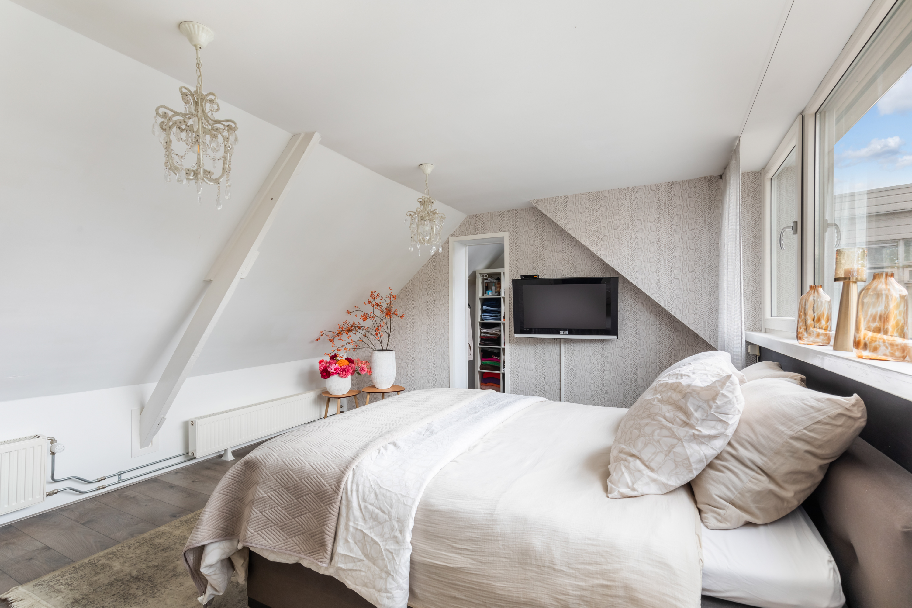 Slaapkamer 1, voorzien van een brede dakkapel aan de achterzijde (kunststof) met rolluik en airconditioning. Aansluitend walk-in closet met dakraam.