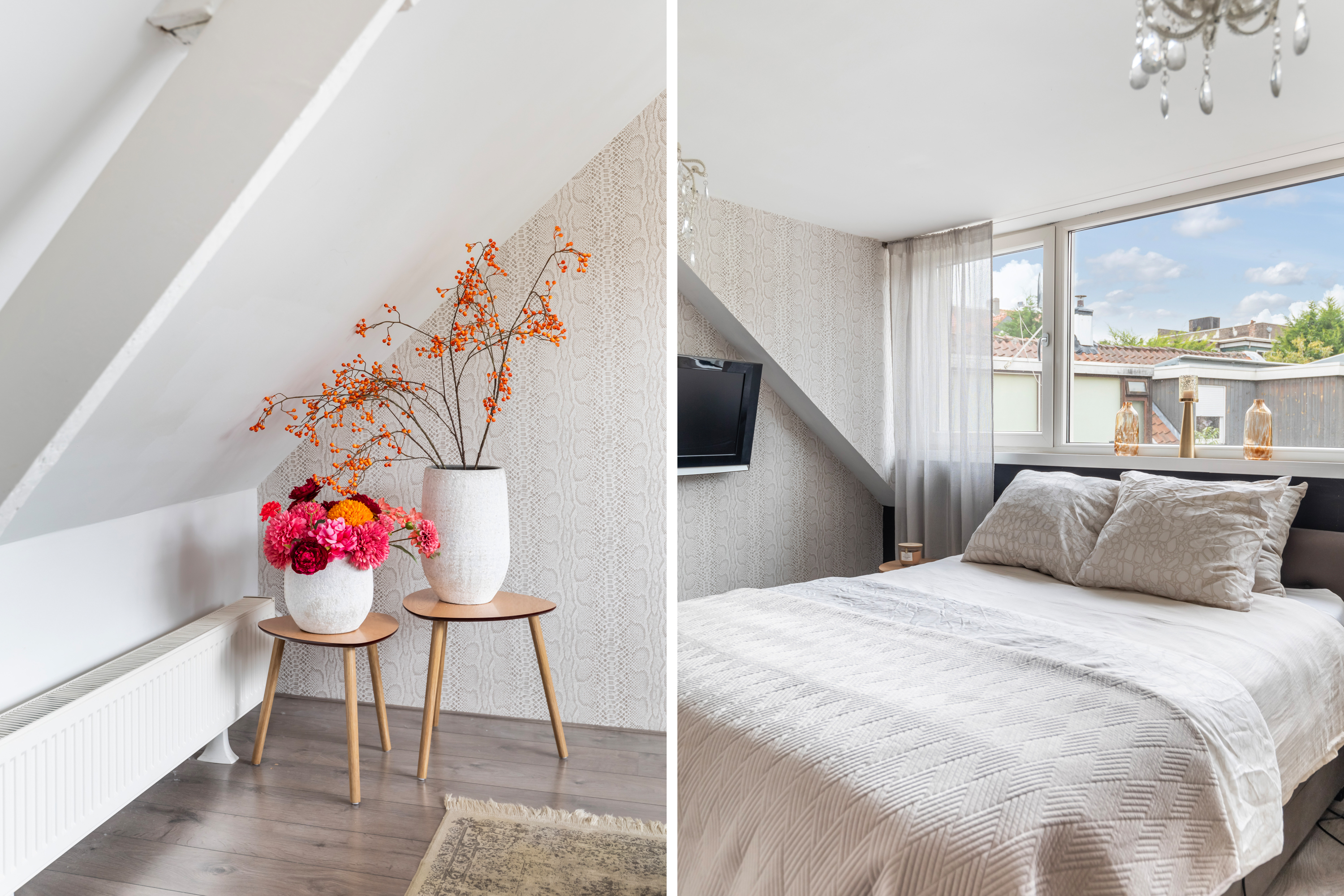 Slaapkamer 2, voorzien van een dakkapel aan de voorzijde en inbouwkast onder de schuine wand.