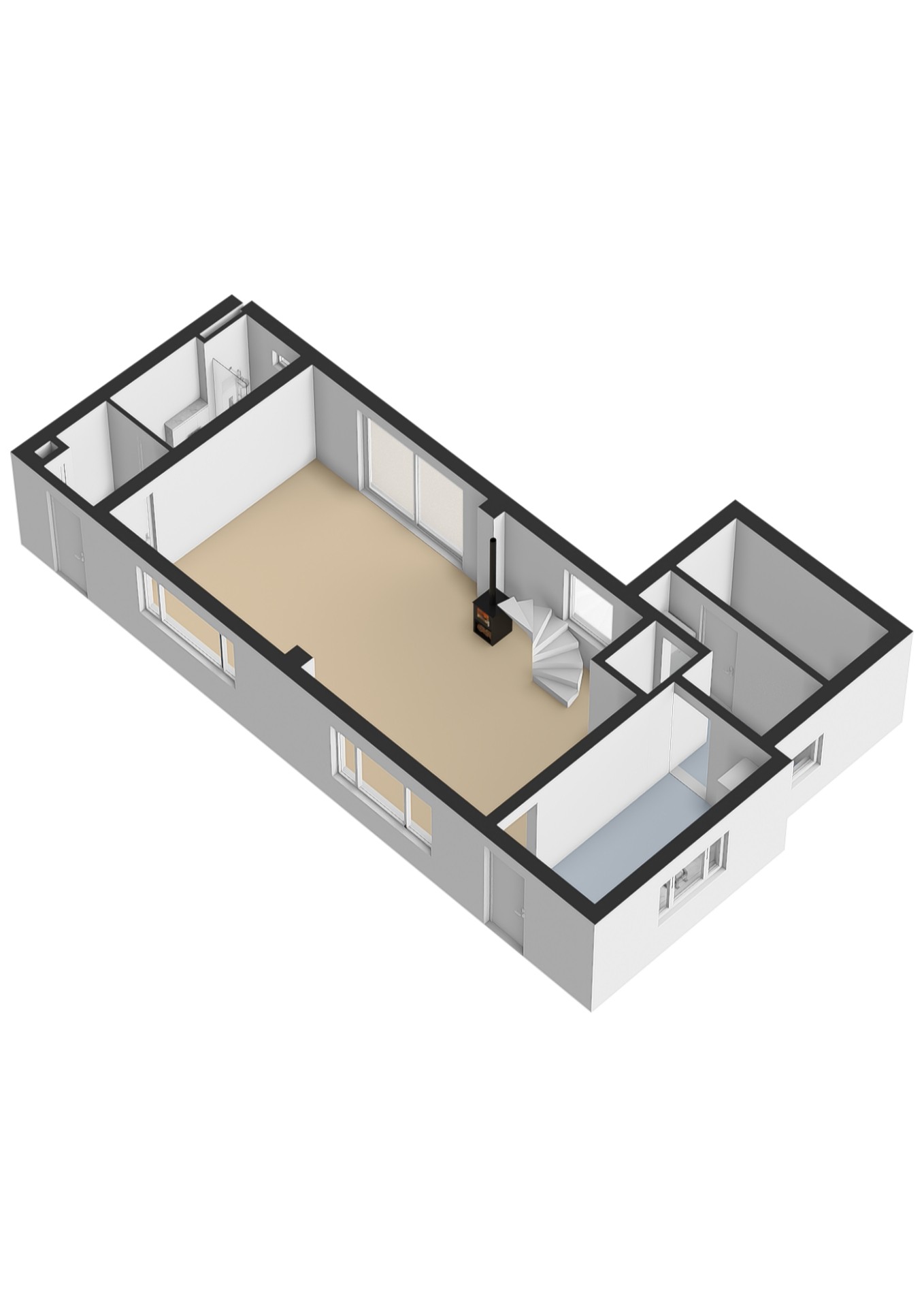 De begane grond is voorzien van een visgraat gelegde pvc vloer. De vloer is geïsoleerd.