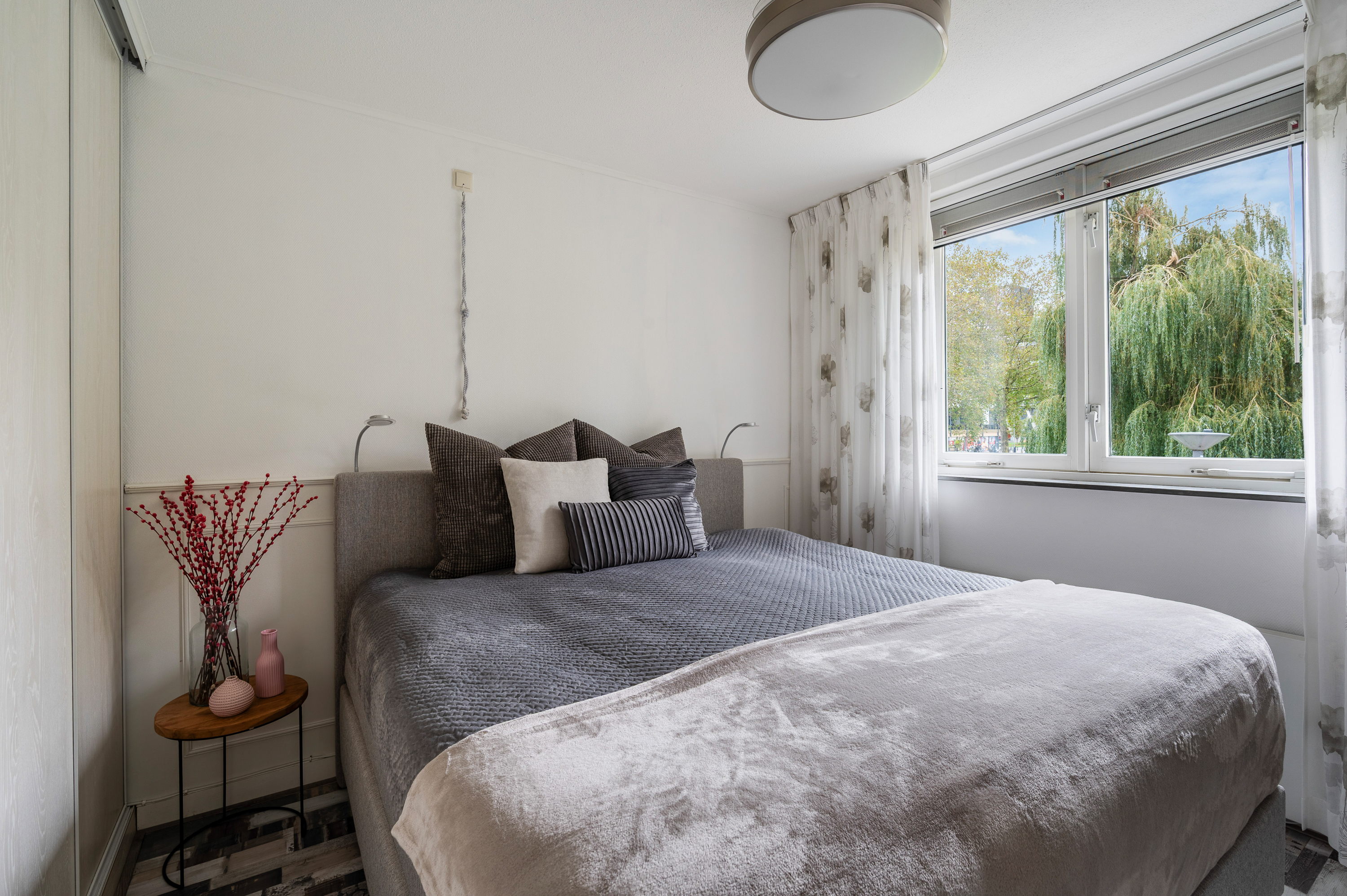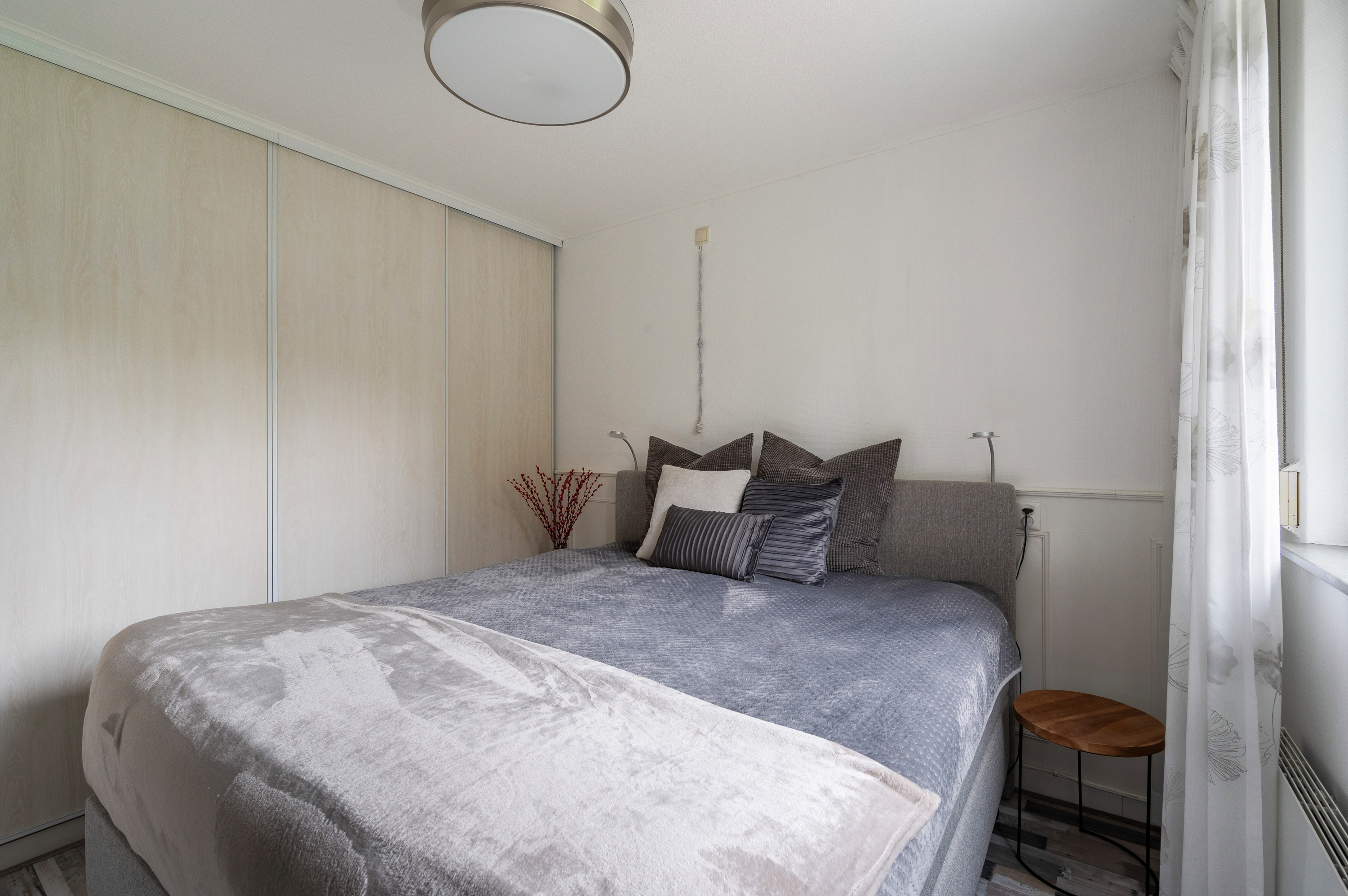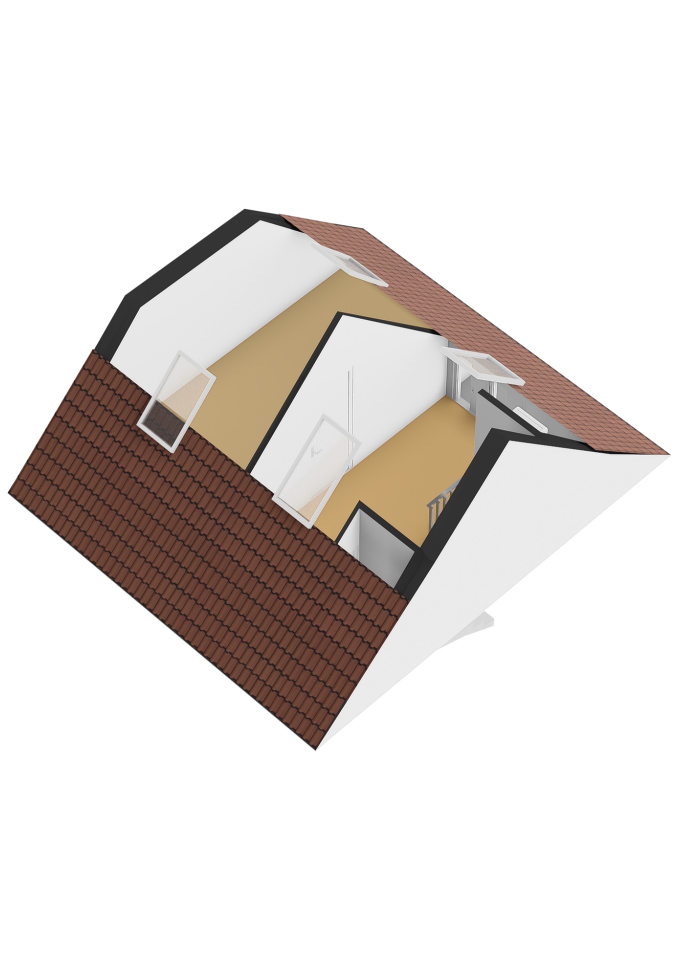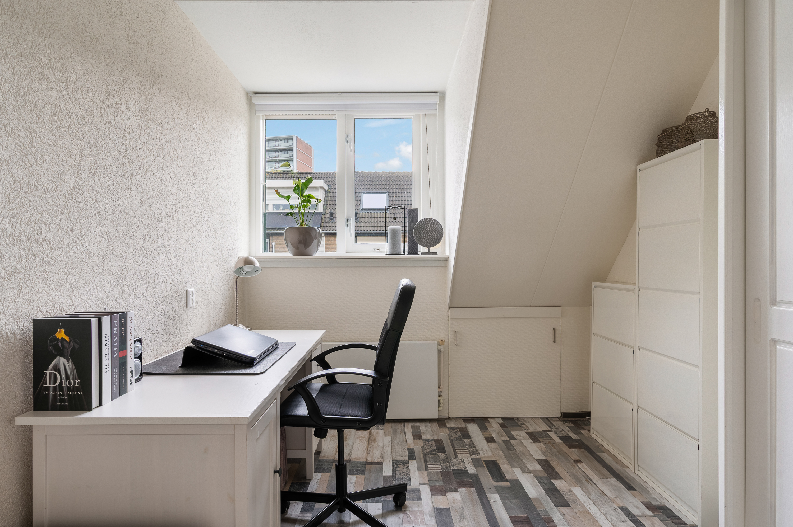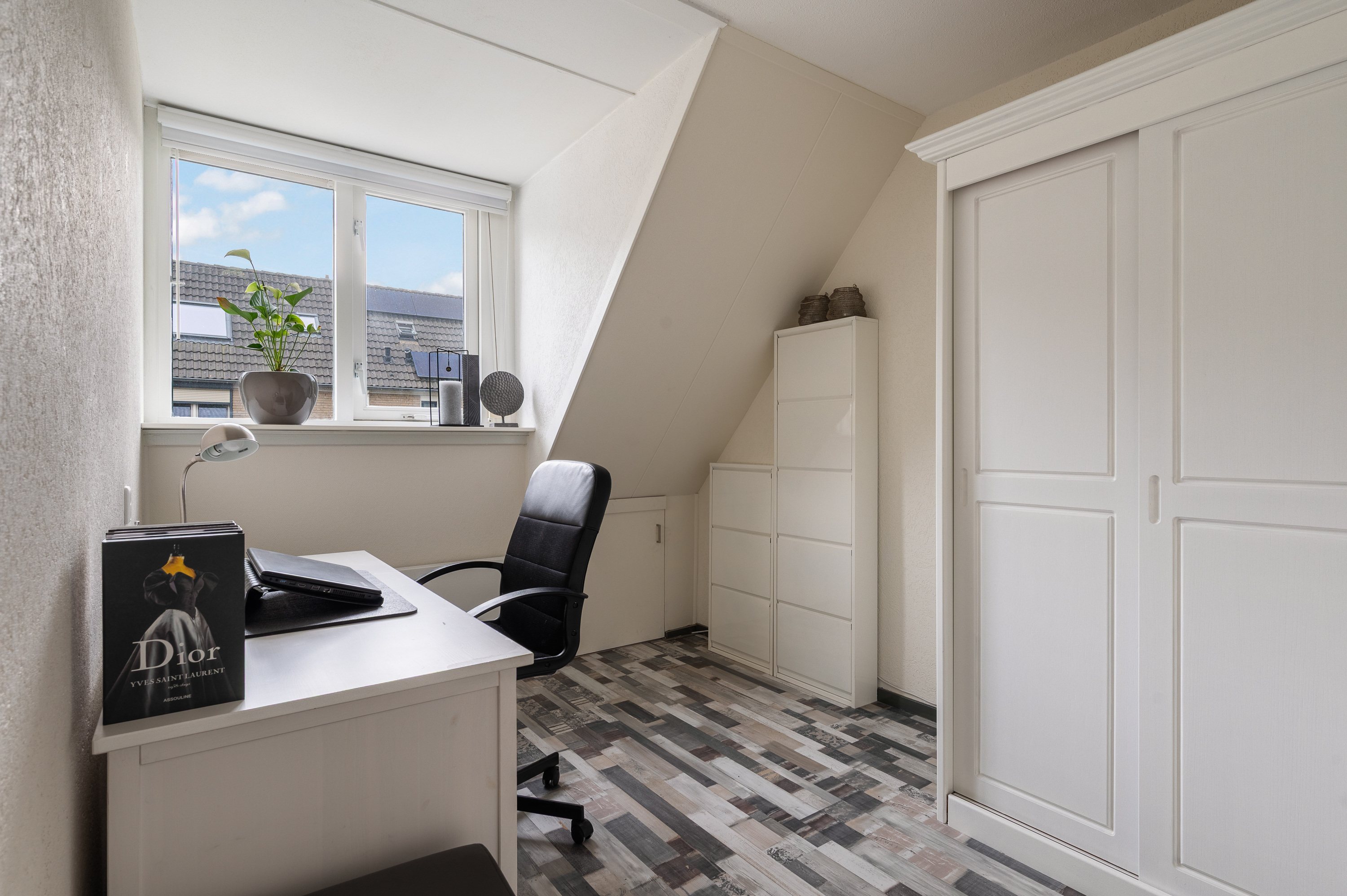 De vierde slaapkamer is aan de voor- en achterzijde voorzien van een groot dakraam, bergruimte achter knieschot. Bovenop de slaapkamer bevindt zich nog een puntje bergvliering.
