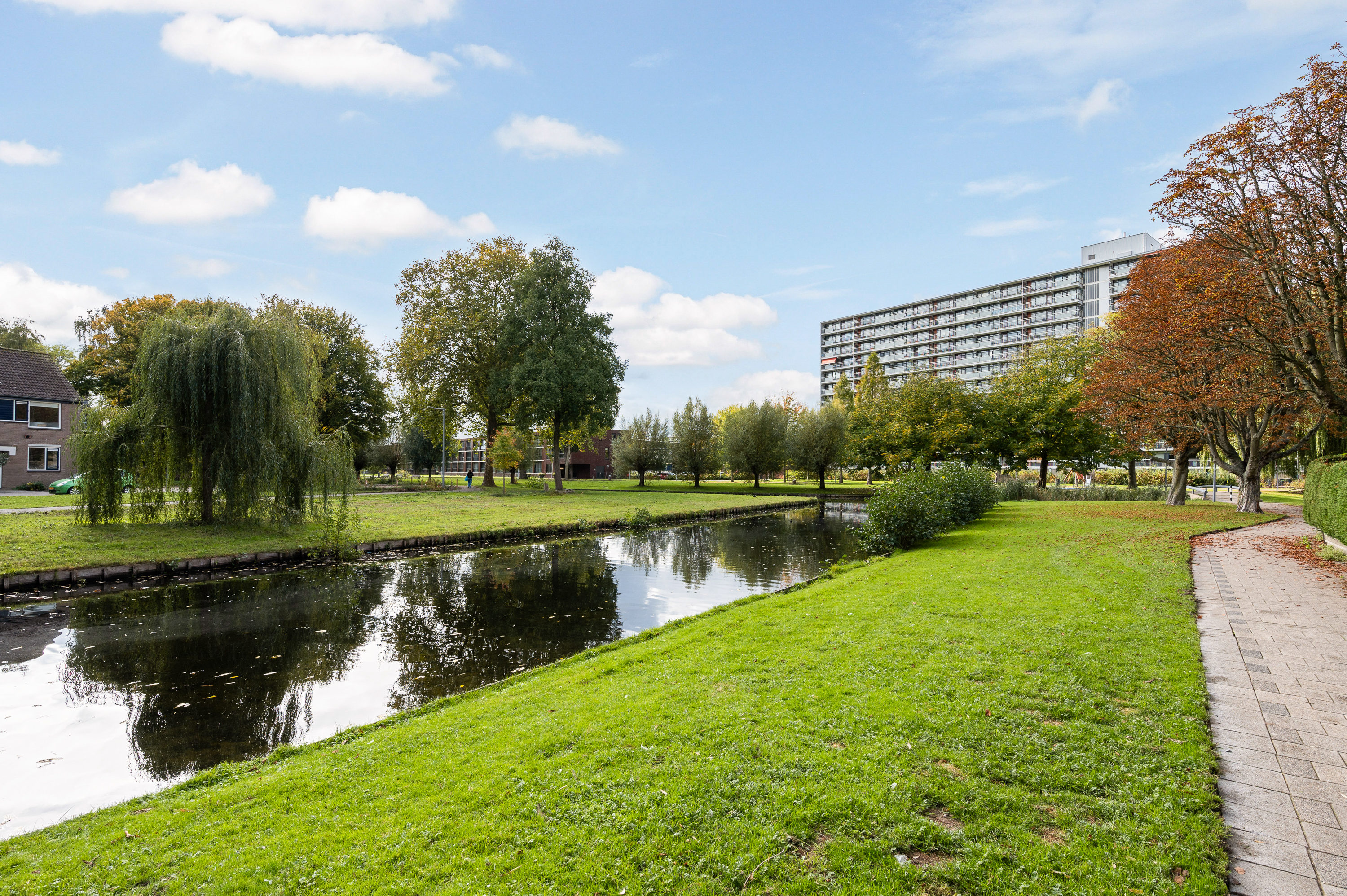 Gelegen aan autovrij pad met vrij uitzicht aan de voorzijde op korte afstand van winkelcentrum 'Keizerswaard'.