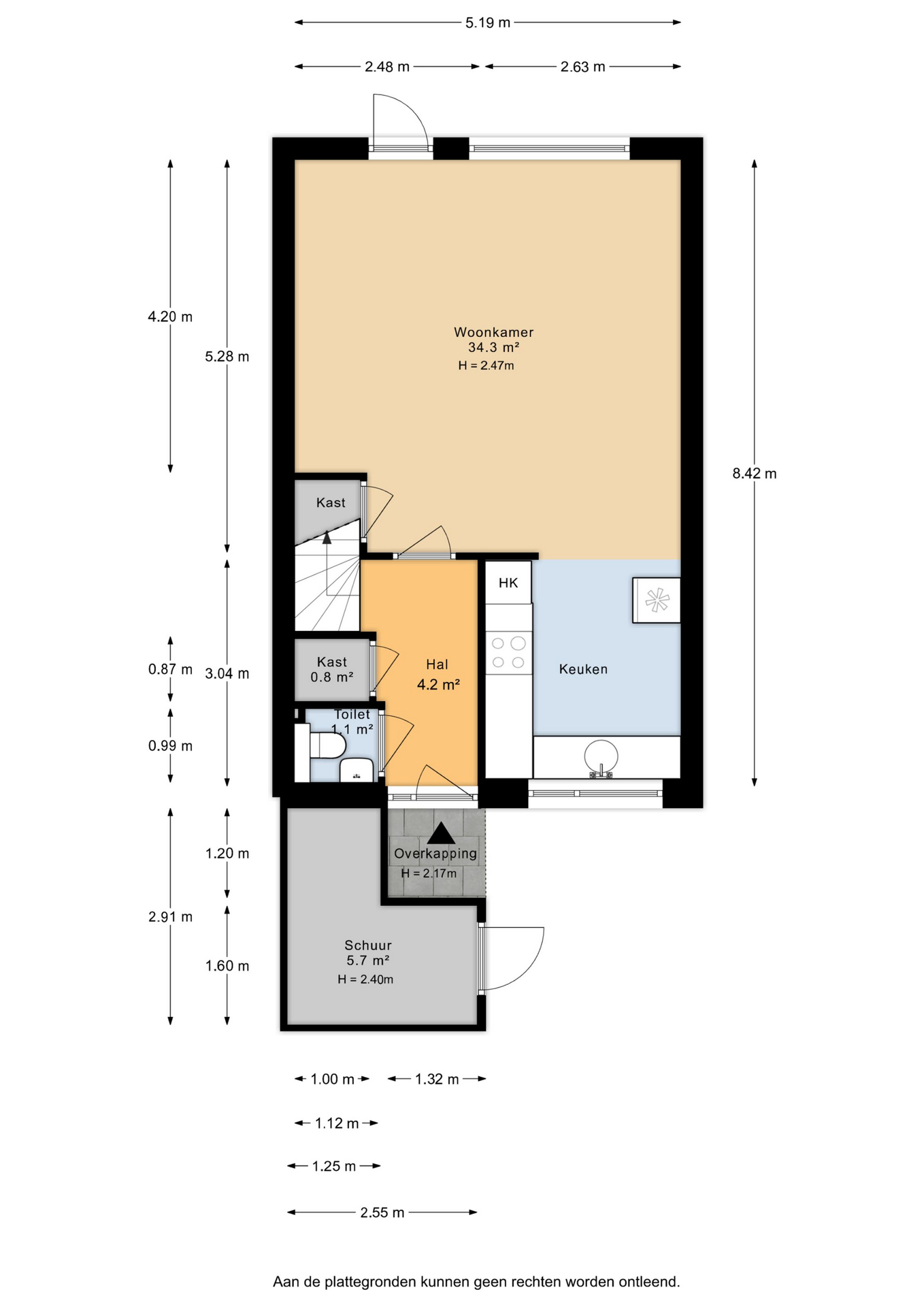 Berging: stenen berging aan de voorzijde, 5,7 m²