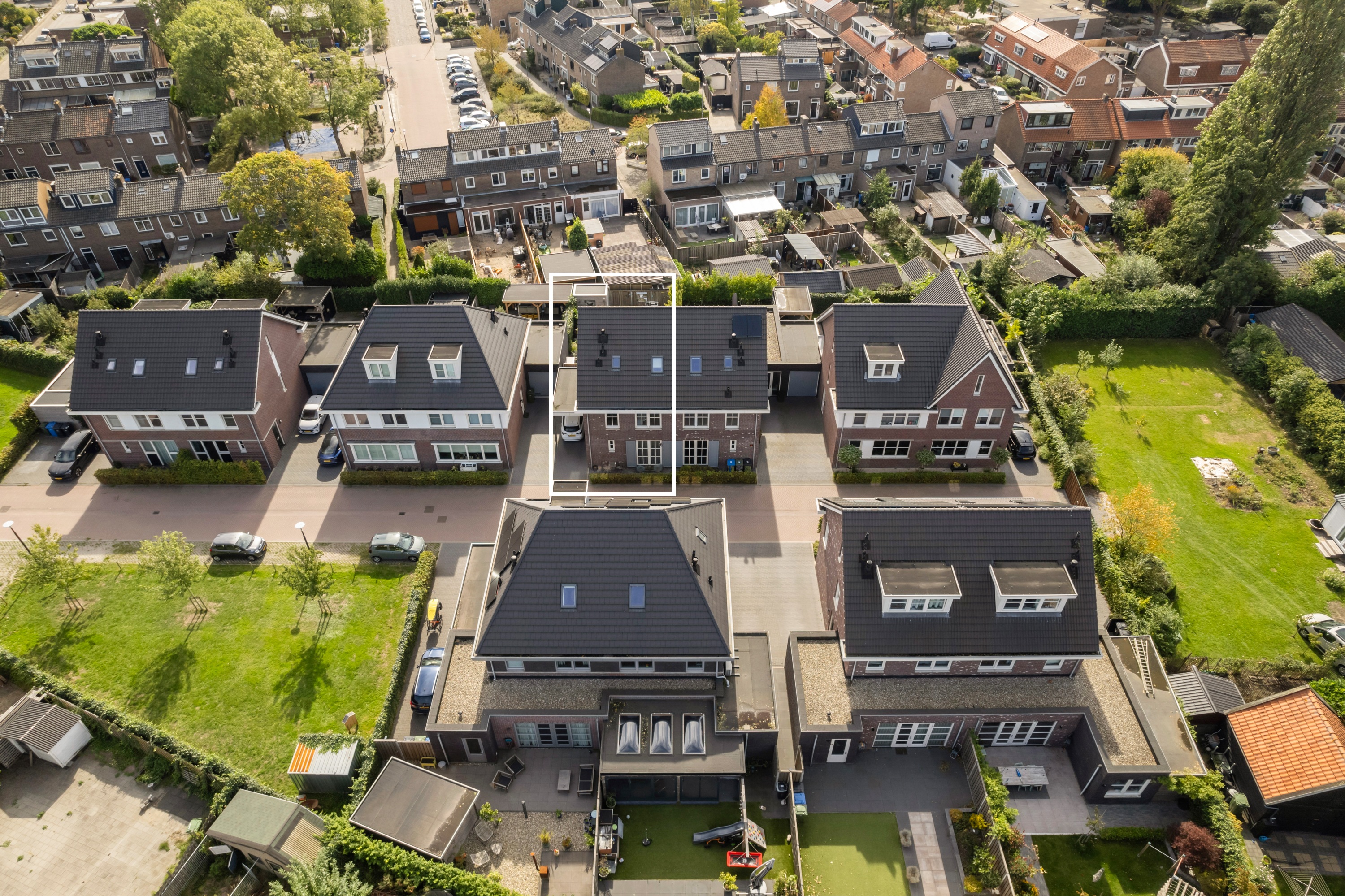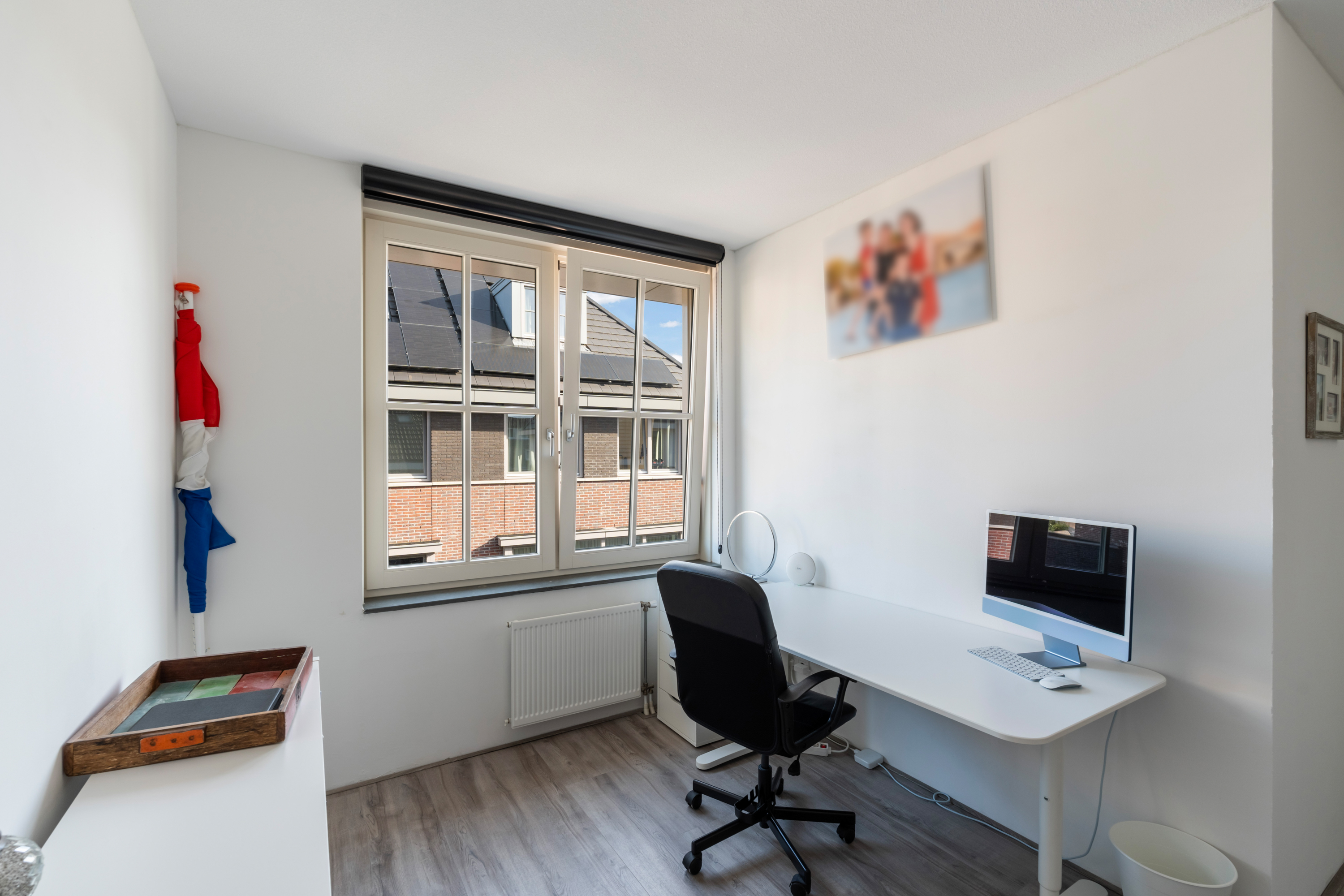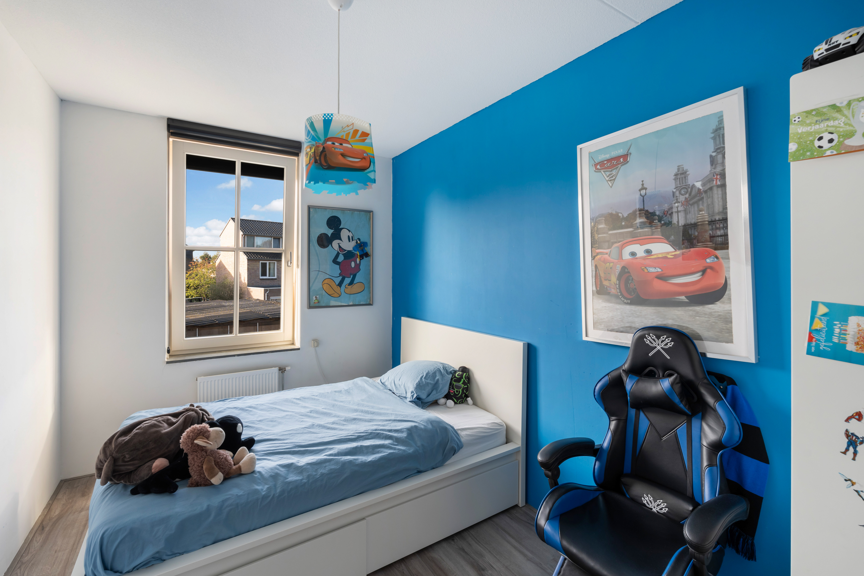 Slaapkamer 1, gelegen aan de achterzijde (10 m²). Slaapkamer 2, de masterbedroom gelegen aan de achterzijde van circa (21 m²). Slaapkamer 3, gelegen aan de voorzijde (13 m²). De slaapkamers aan de achterzijde zijn beiden voorzien van een elektrische rolluik. De overloop en slaapkamers zijn allen voorzien van een fraaie laminaatvloer en allemaal voorzien van stucwerk wanden en plafonds. De luxe geheel betegelde badkamer is gelegen aan de voorzijde van de woning (lichtinval middels te openen raam), voorzien van royale inloopdouche met regendouche, 2e toilet, wastafelmeubel met dubbele waskom en een design radiator.