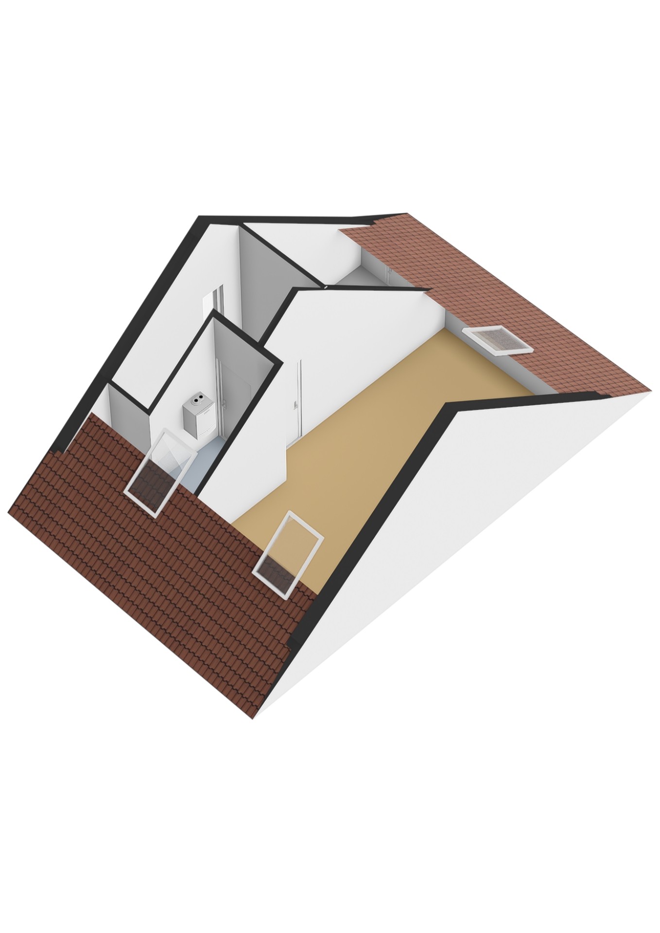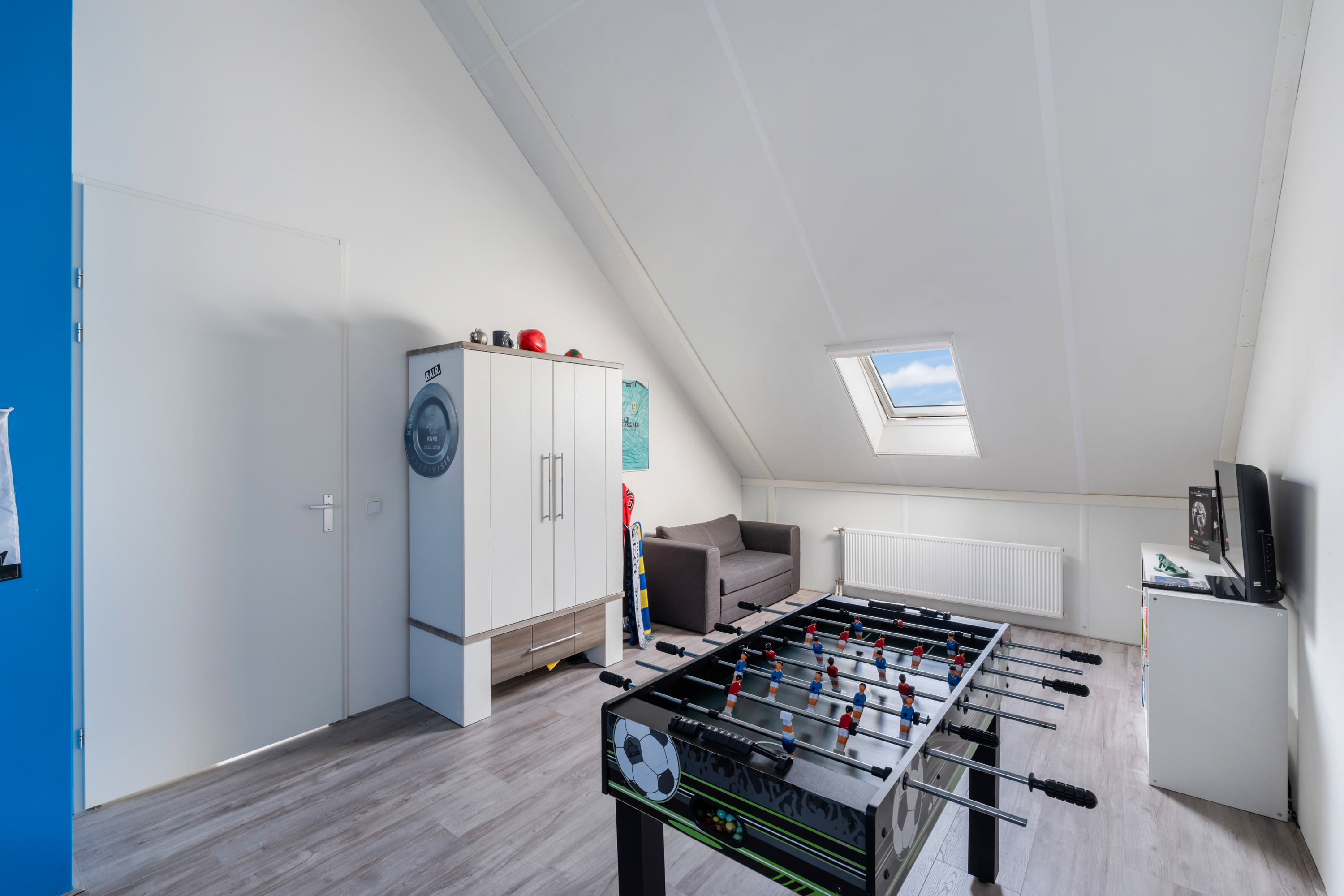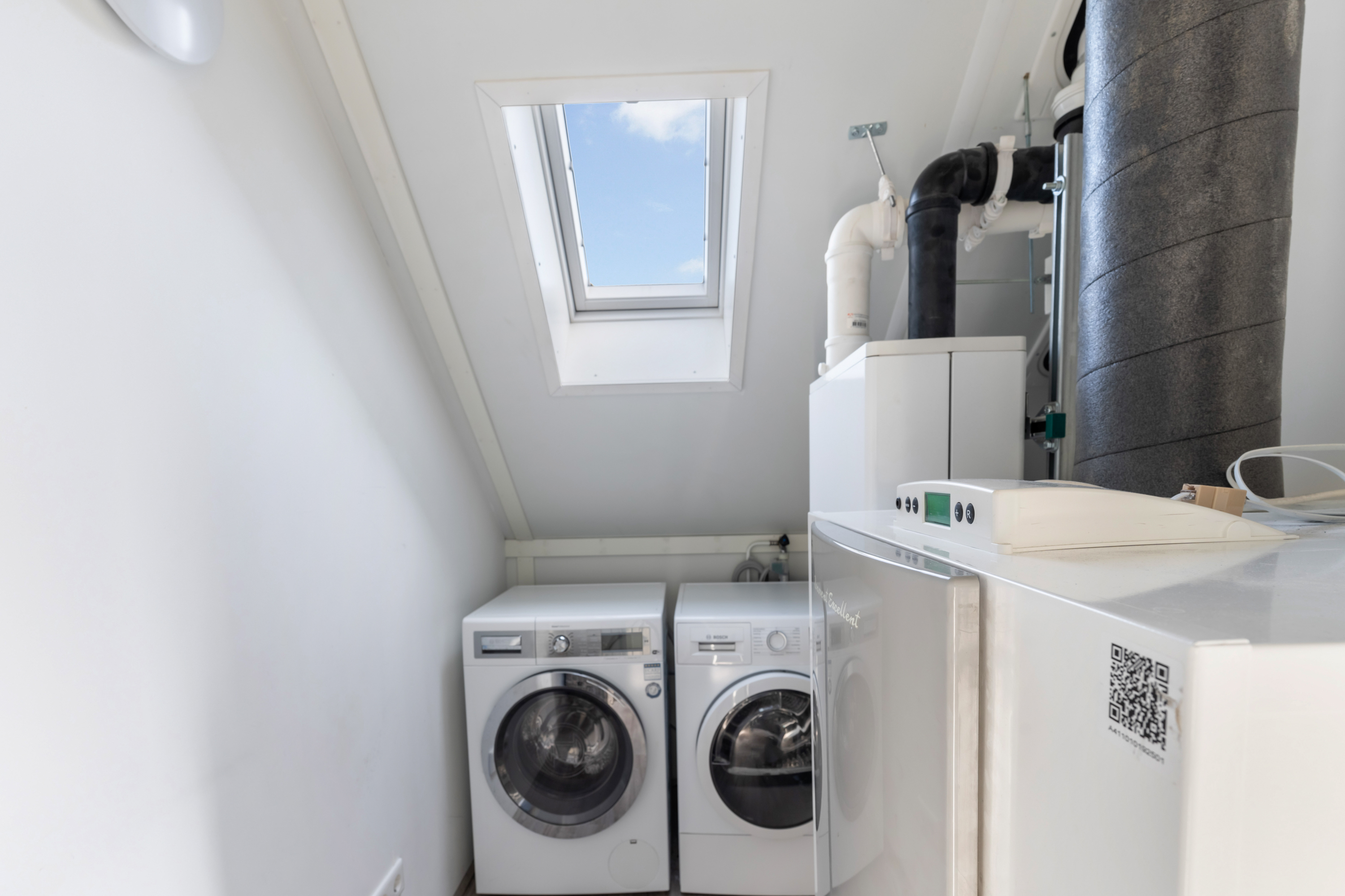Overloop met zijraam en aansluitend de wasruimte met daarin de opstelling “Intergas” combiketel (bouwjaar 2019) en de WTW-installatie (bouwjaar 2019), wasmachine/droger aansluiting en een “Velux” dakraam. Inpandige bergruimte en de vierde, ruime slaapkamer welke is voorzien van 2 Velux dakramen + horren. De gehele etagevloer is voorzien van een laminaatvloer.