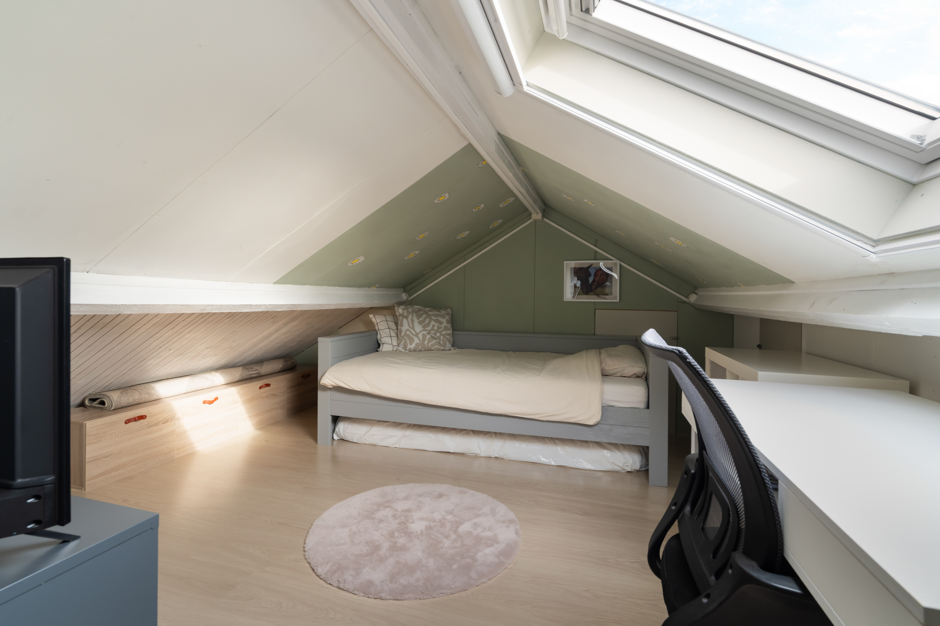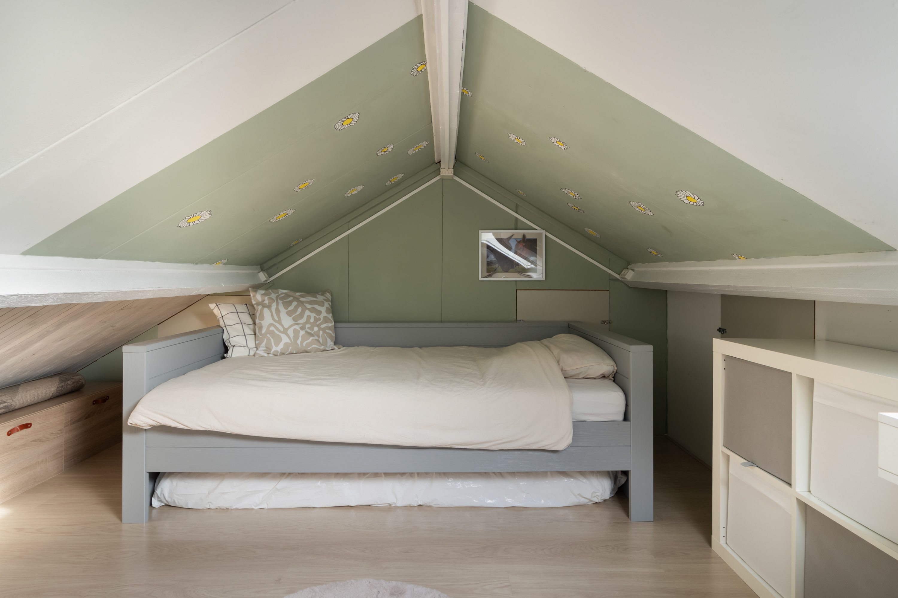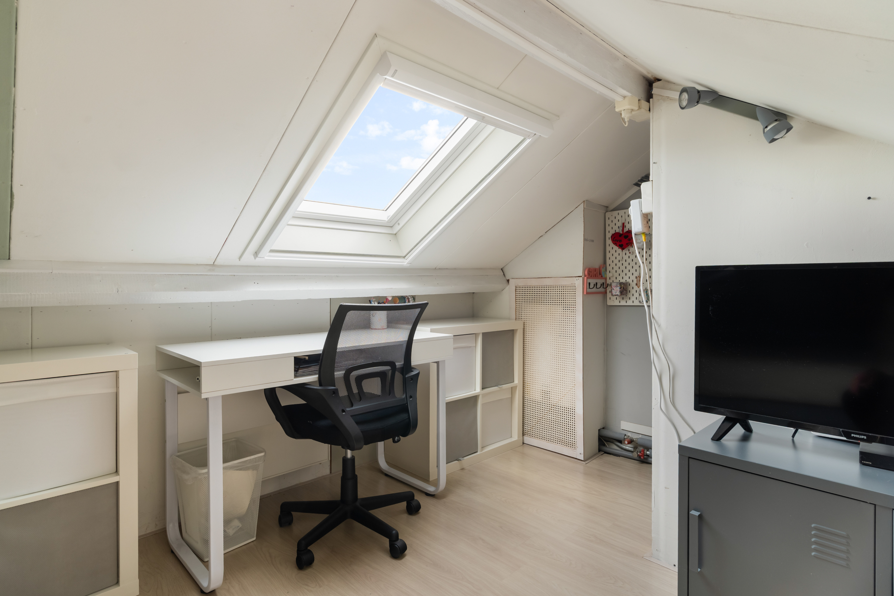 Te bereiken d.m.v. een vaste trap, bergzolder. Eventueel 3e slaapkamer van te maken met een nokhoogte van circa 170 cm. Voorzien van een Velux dakraam met verduisteringsgordijn en hor. Hier bevindt zich ook de cv-combiketel “Remeha” bj. 2018 en diverse bergruimte. Deze vloer is voorzien van een laminaatvloer.
